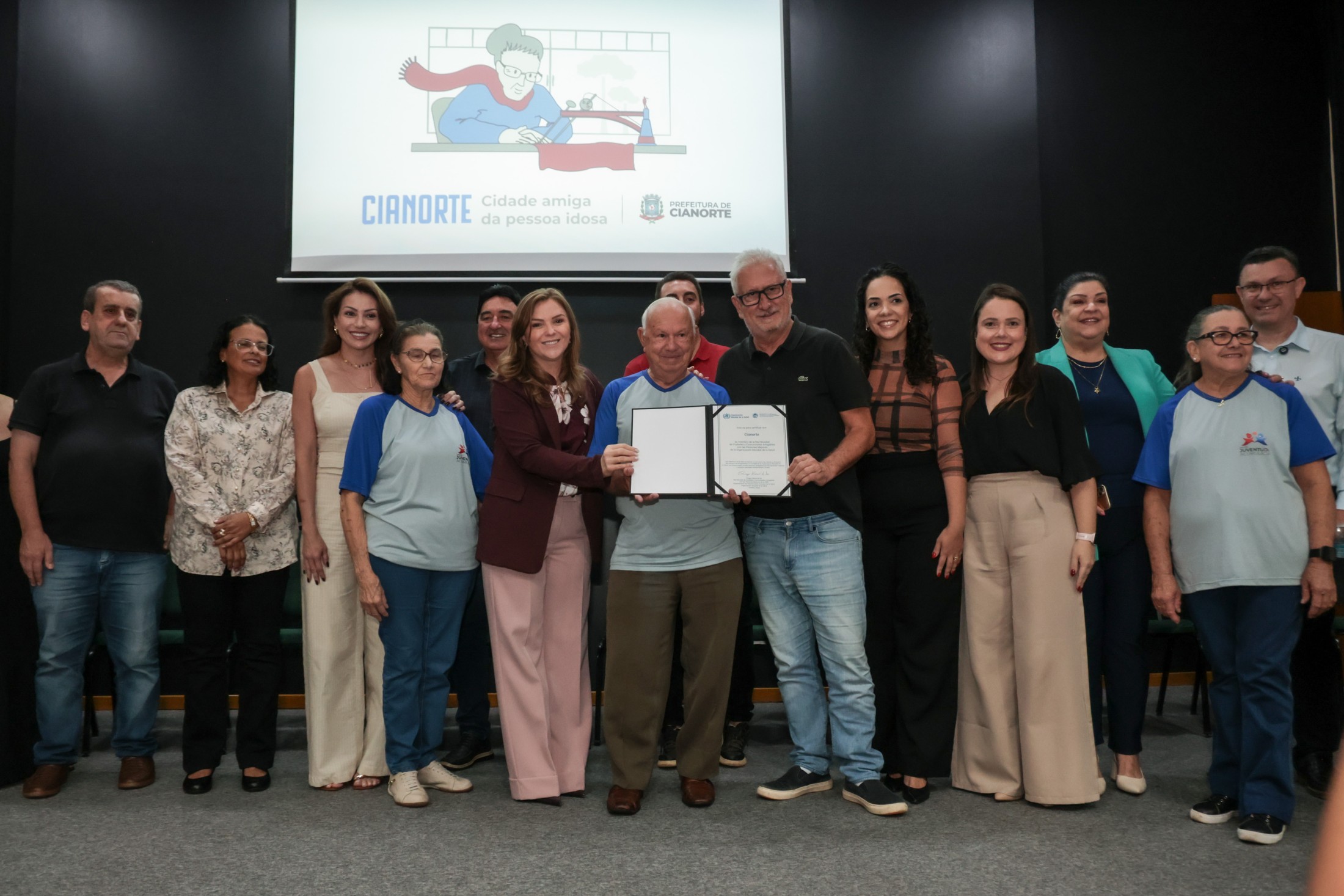 Em uma cerimônia solene, realizada na tarde dessa quinta-feira (13), Cianorte recebeu oficialmente a Certificação de Reconhecimento “Cidade Amiga da Pessoa Idosa”. O título, formalizado pelo Programa Paraná Amigo da Pessoa Idosa, chancela o compromisso do município com o envelhecimento digno, participativo e saudável, alinhando-se à Rede Global de Cidades Amigas das Pessoas Idosas da Organização Mundial da Saúde (OMS).