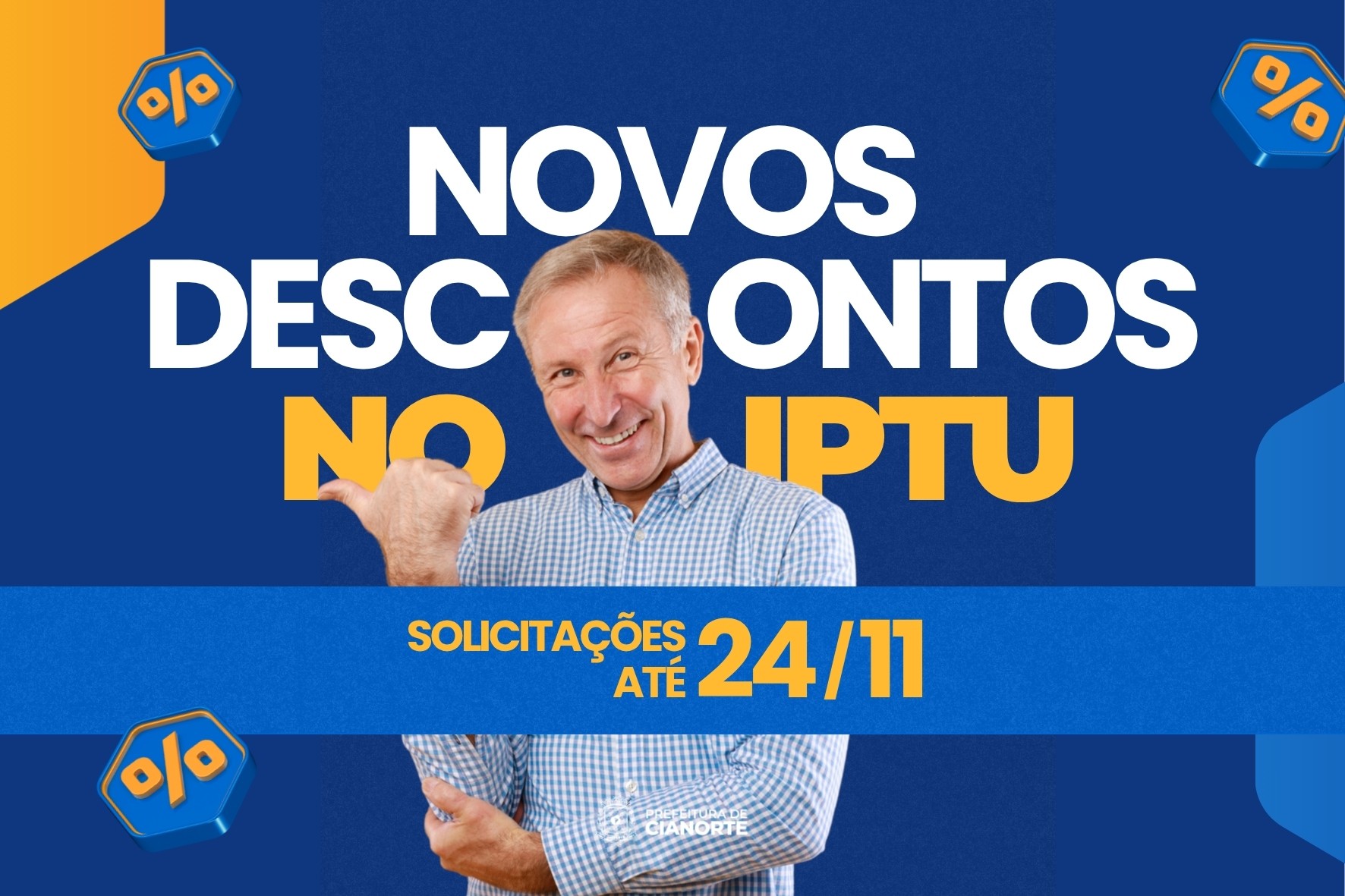 A Prefeitura de Cianorte lembra aos contribuintes que o prazo para solicitar o desconto no Imposto Predial e Territorial Urbano (IPTU) encerra-se na segunda-feira, dia 24. O benefício é destinado a proprietários que possuem apenas um imóvel com valor venal de até R$ 210 mil e que atendam a uma das seguintes condições: tenham mais de 65 anos ou que sejam aposentados, viúvos, impossibilitados de exercer atividade econômica por doença grave, pessoas com deficiência (PcD) ou, ainda, que sejam pais ou responsáveis por pessoas com Transtorno do Espectro Autista.