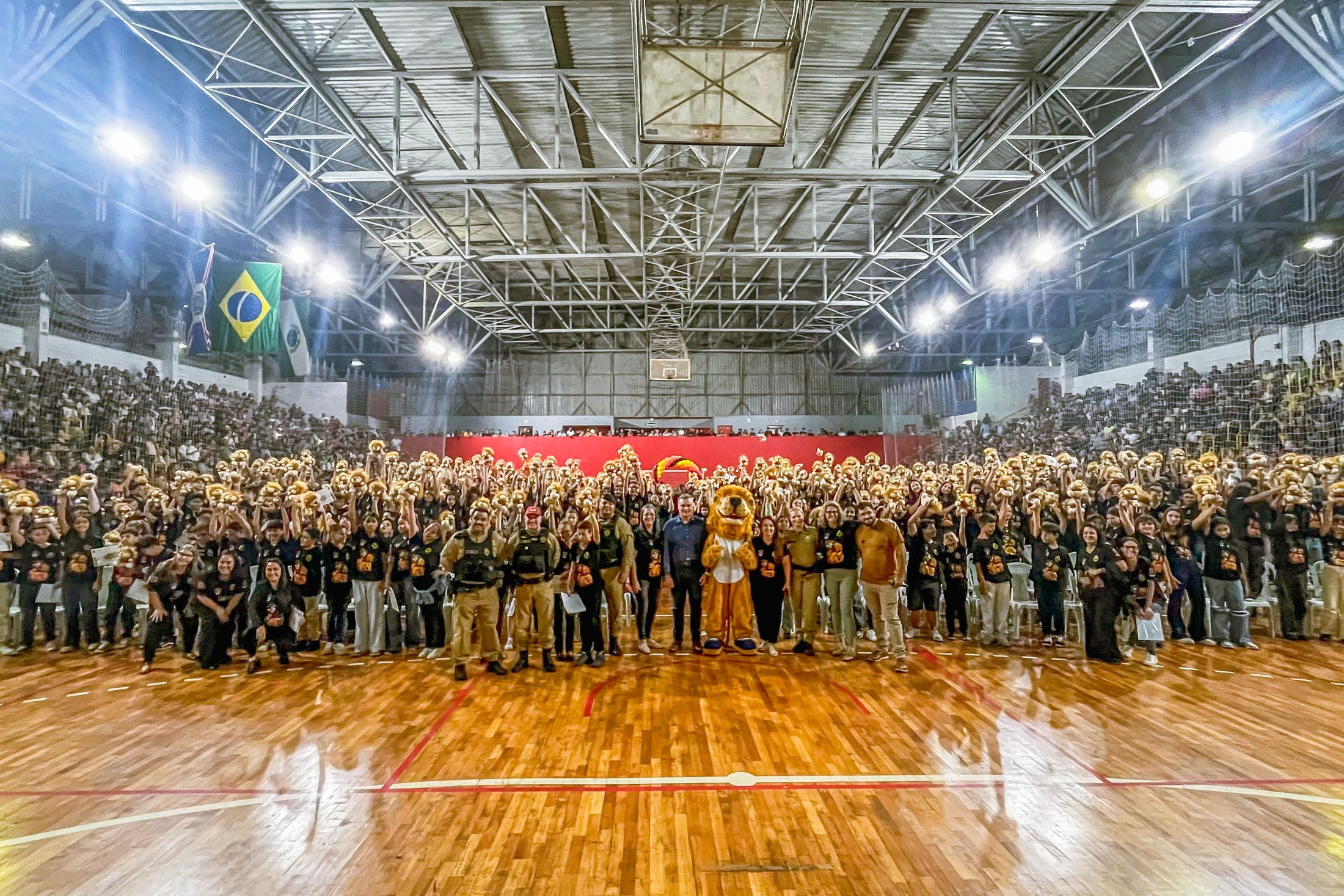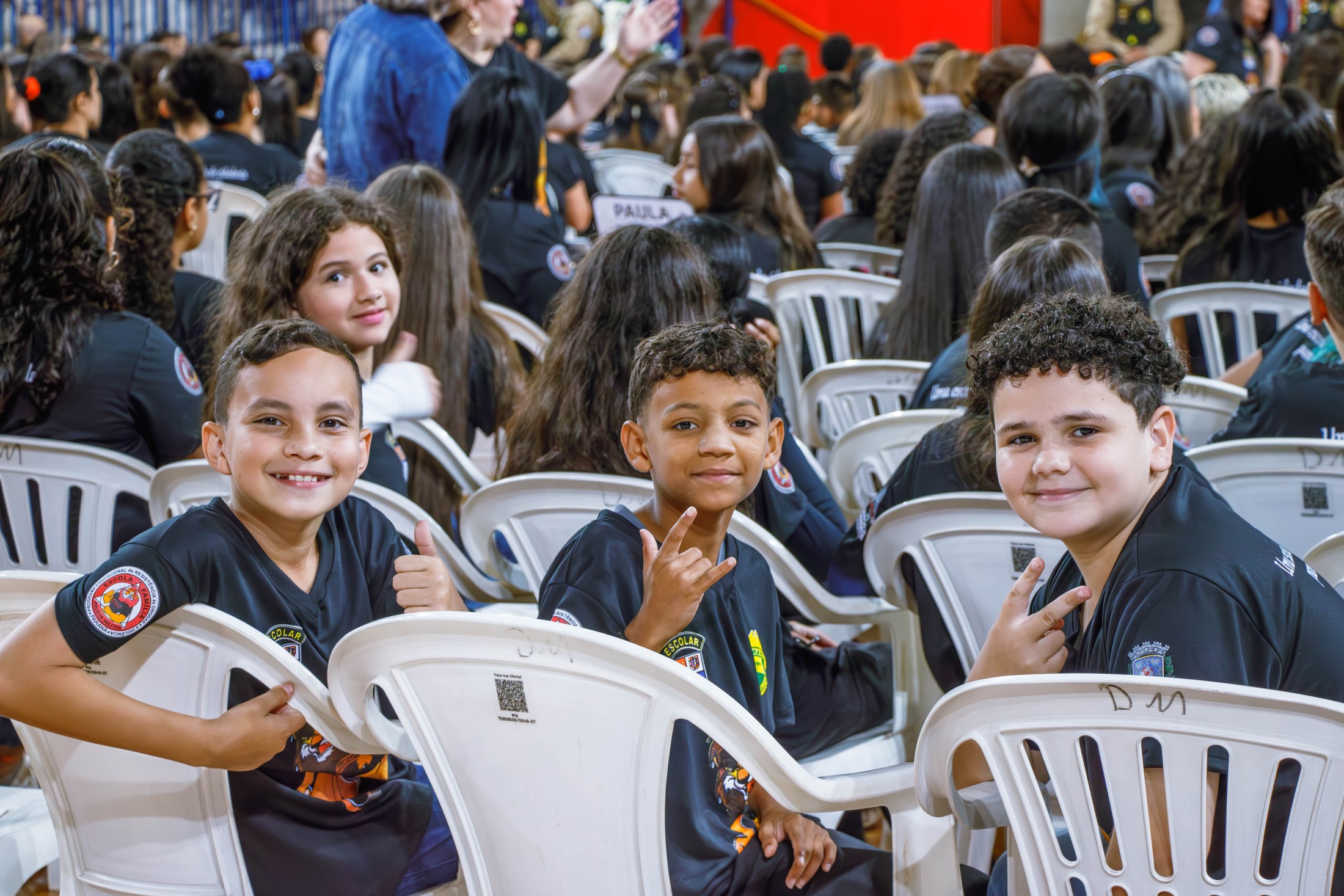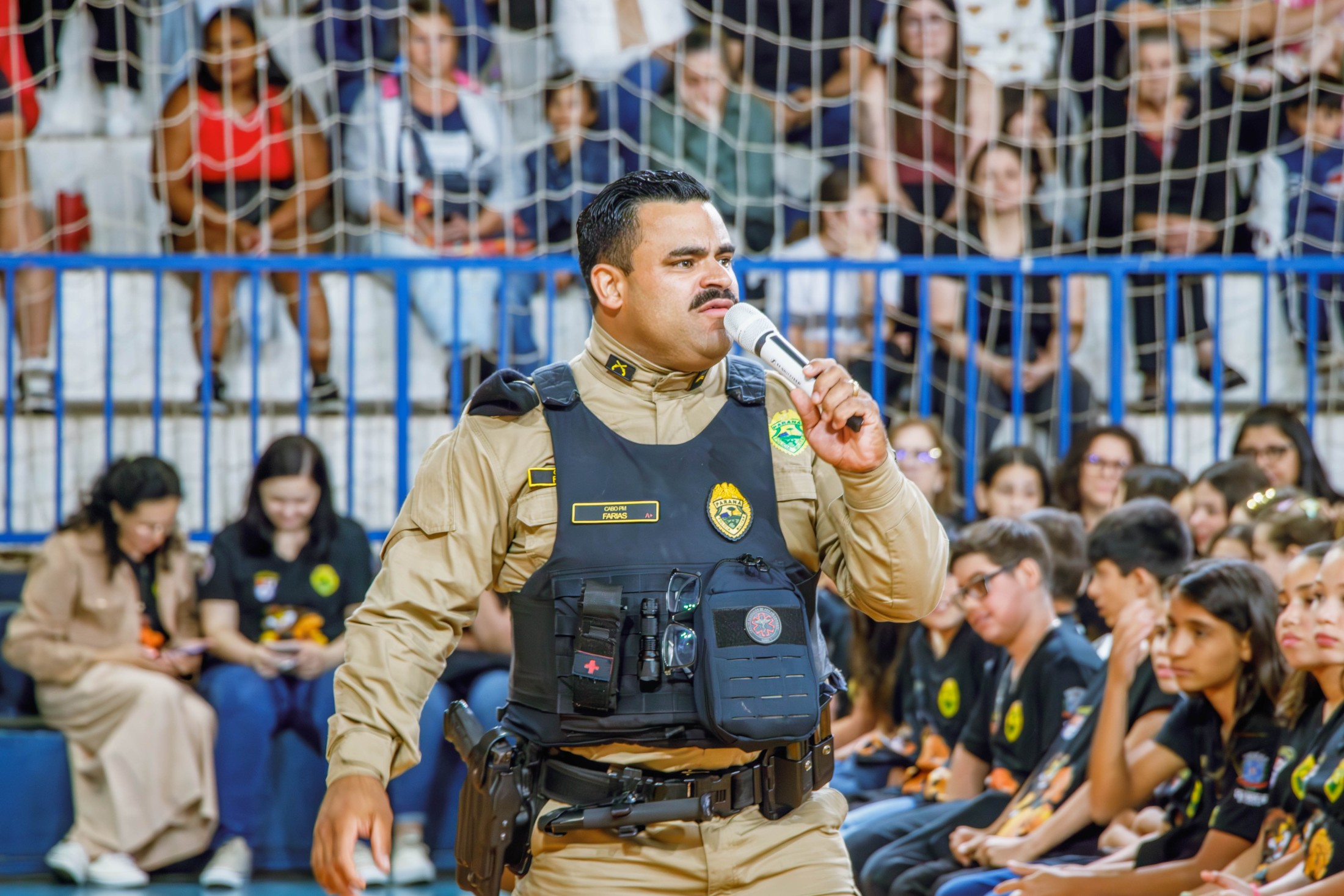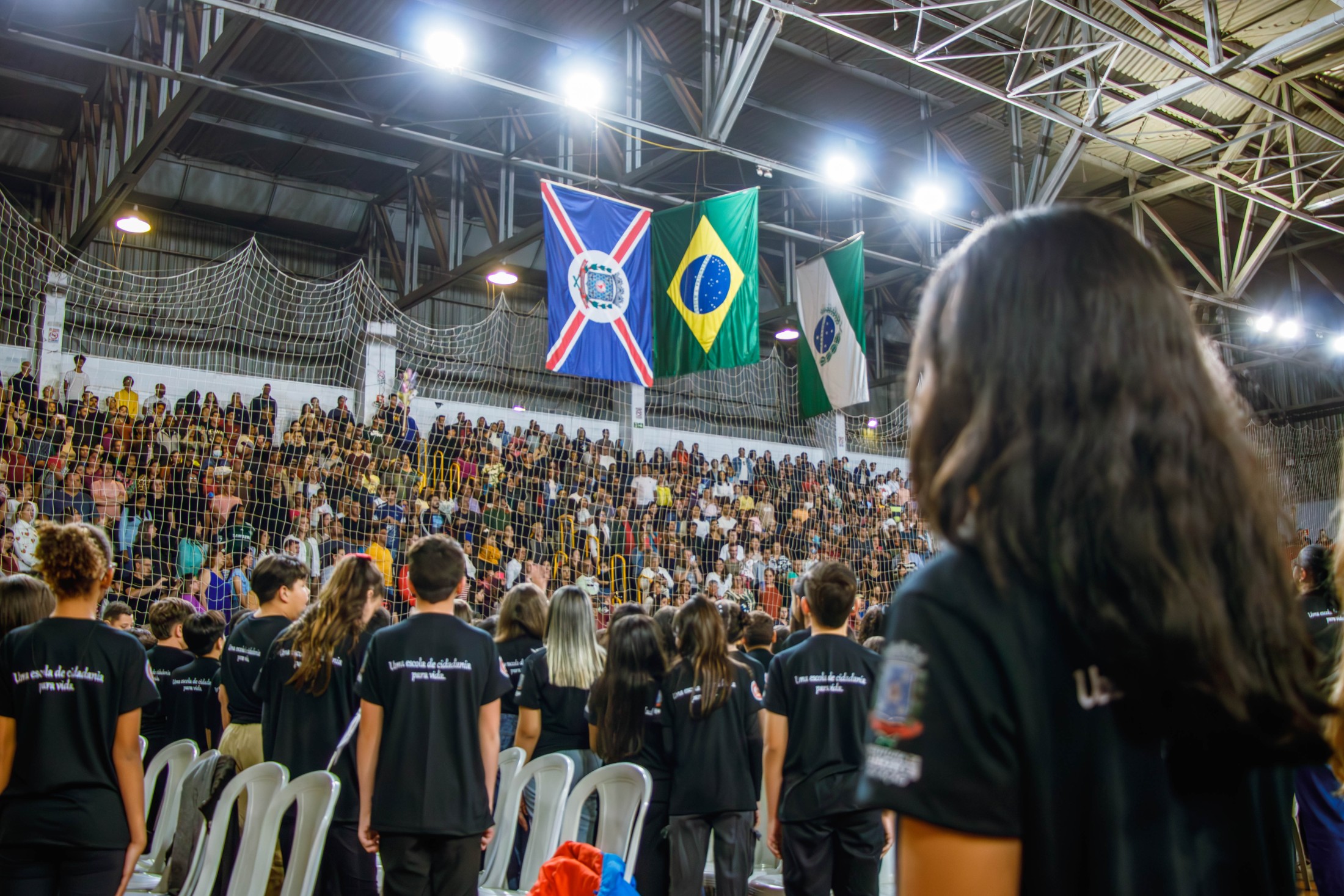 Emoção e alegria marcaram a solenidade de formatura do Programa Educacional de Resistência às Drogas e à Violência – Proerd, realizada na noite dessa terça-feira (18), no Ginásio de Esportes Tancredo Neves (Tancredão). O evento reuniu mais de 3 mil pessoas, entre autoridades, militares, profissionais da educação, familiares e mais de 900 estudantes do 5º ano do Ensino Fundamental, das 15 escolas da rede municipal de ensino, participantes do programa.
