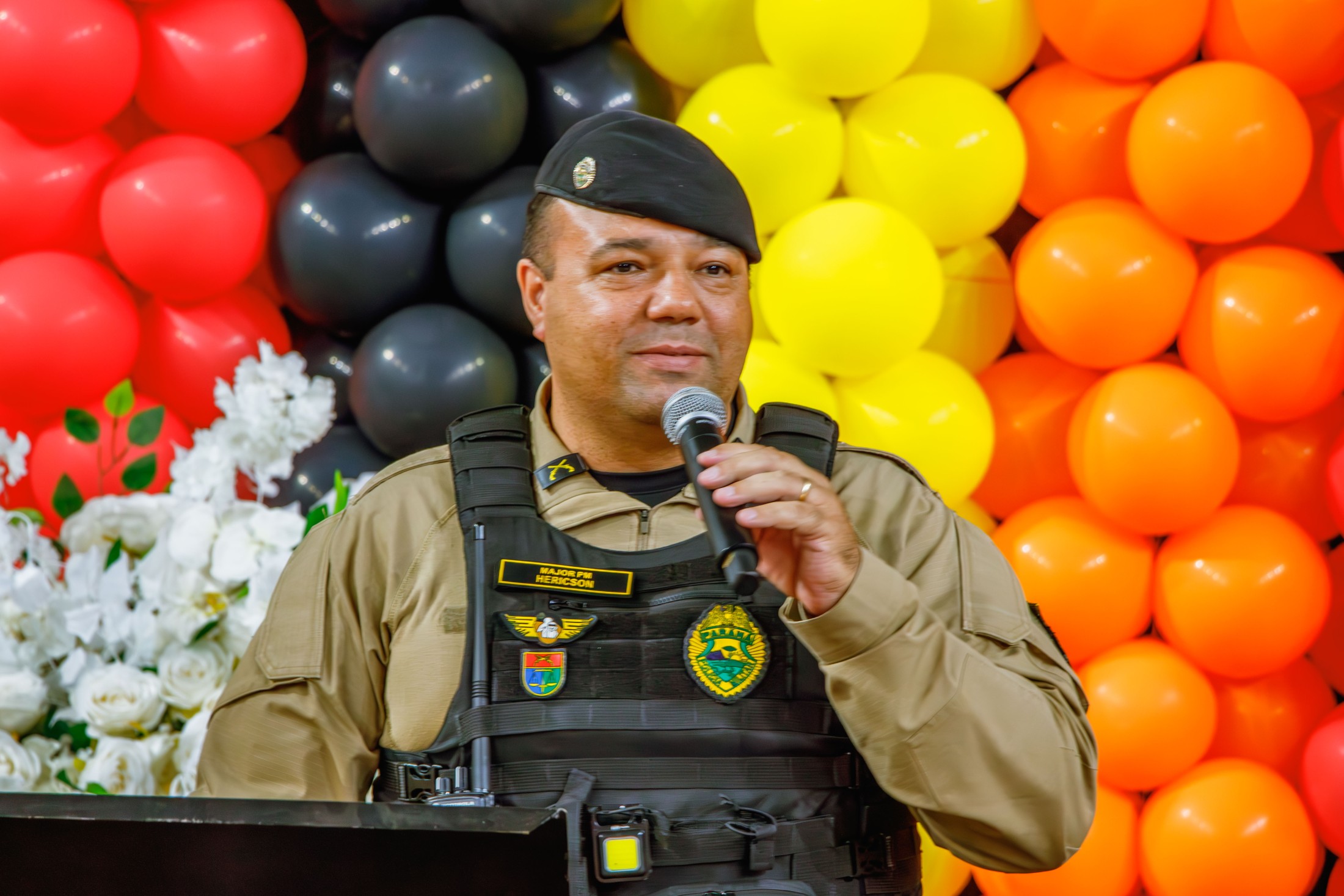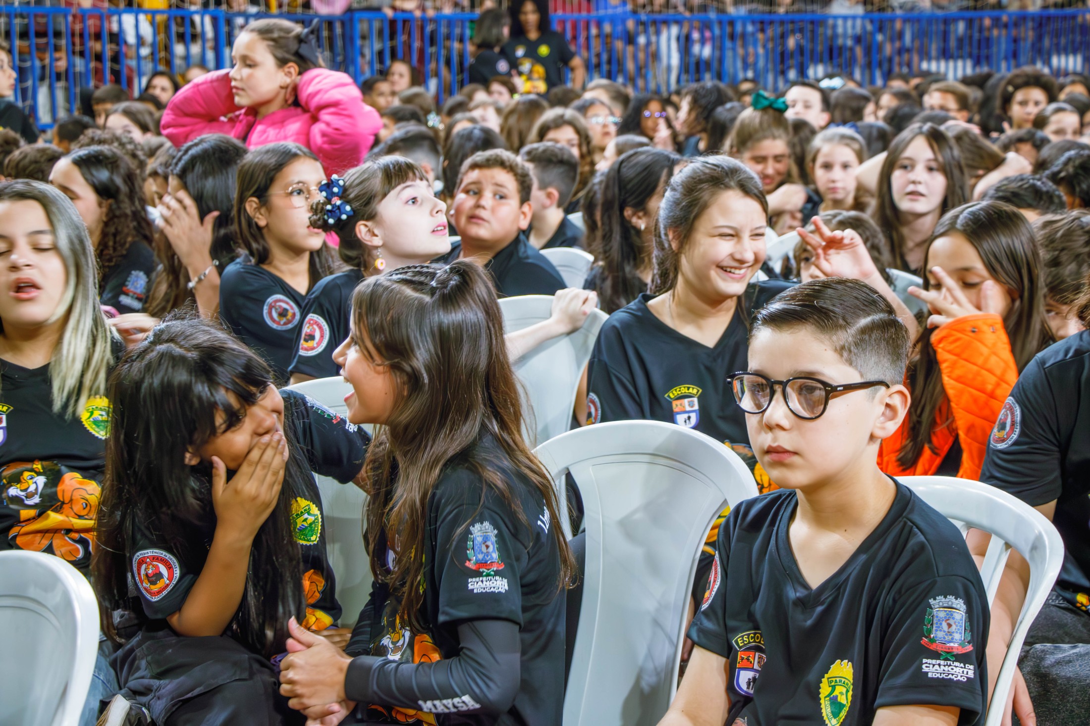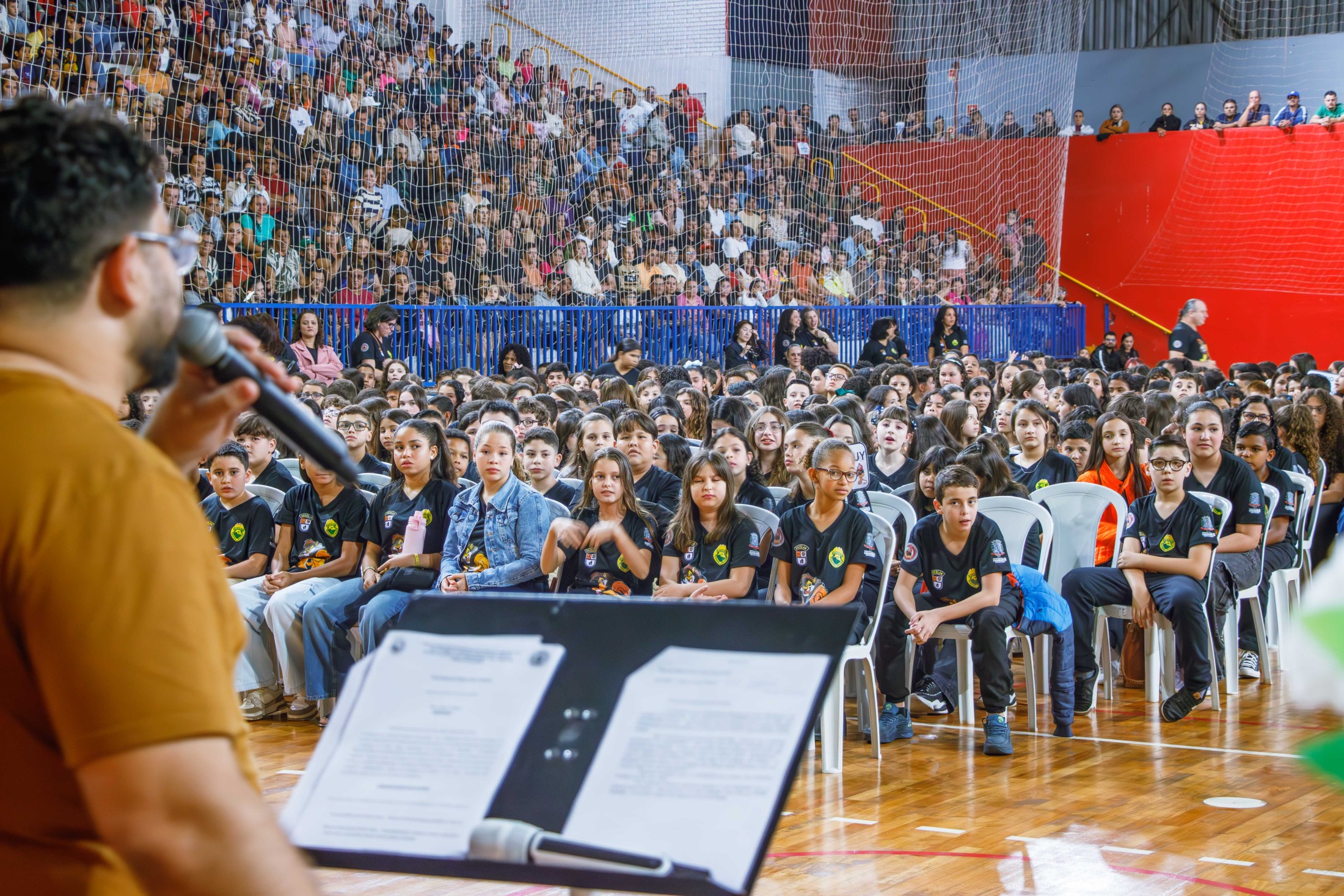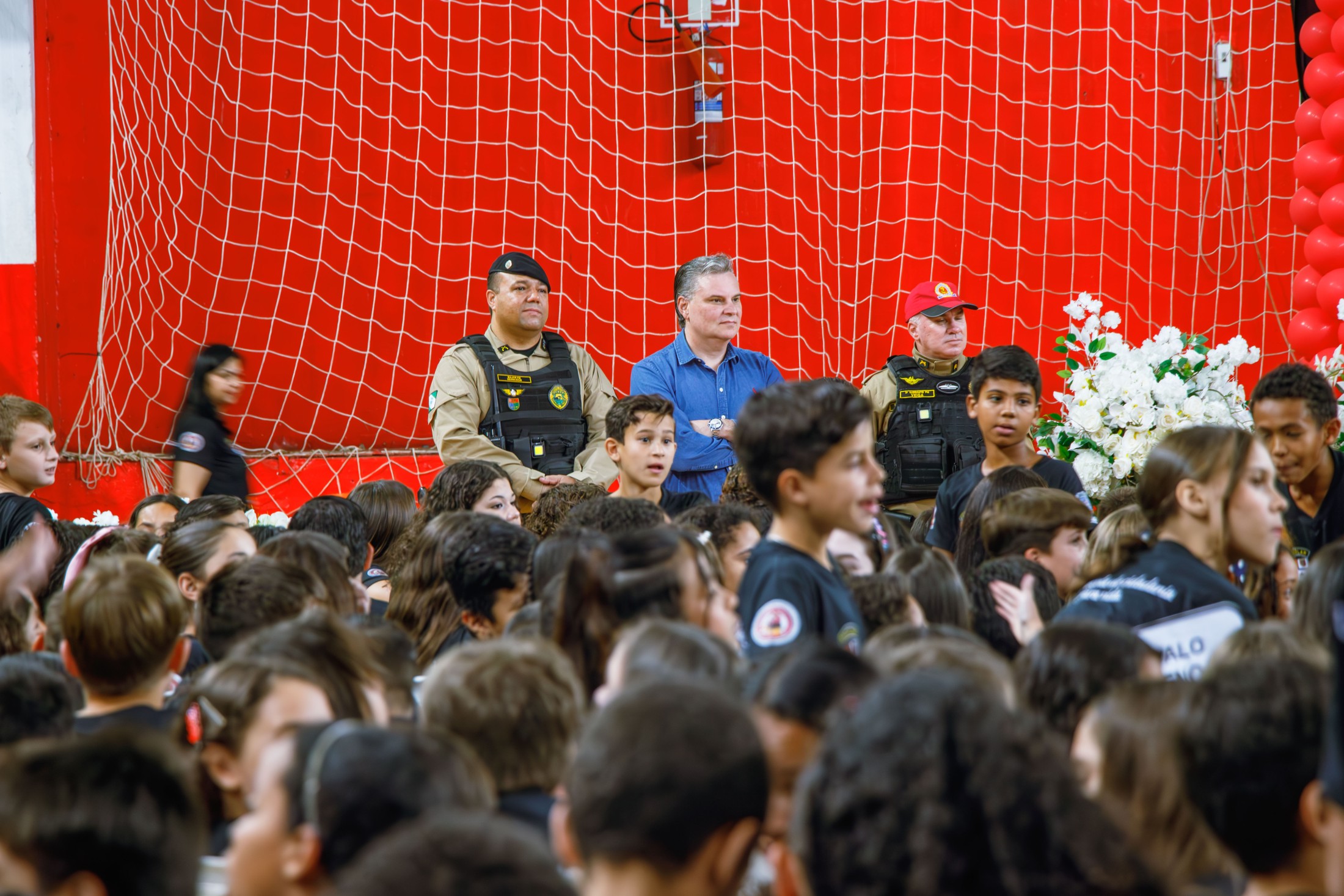 Emoção e alegria marcaram a solenidade de formatura do Programa Educacional de Resistência às Drogas e à Violência – Proerd, realizada na noite dessa terça-feira (18), no Ginásio de Esportes Tancredo Neves (Tancredão). O evento reuniu mais de 3 mil pessoas, entre autoridades, militares, profissionais da educação, familiares e mais de 900 estudantes do 5º ano do Ensino Fundamental, das 15 escolas da rede municipal de ensino, participantes do programa.