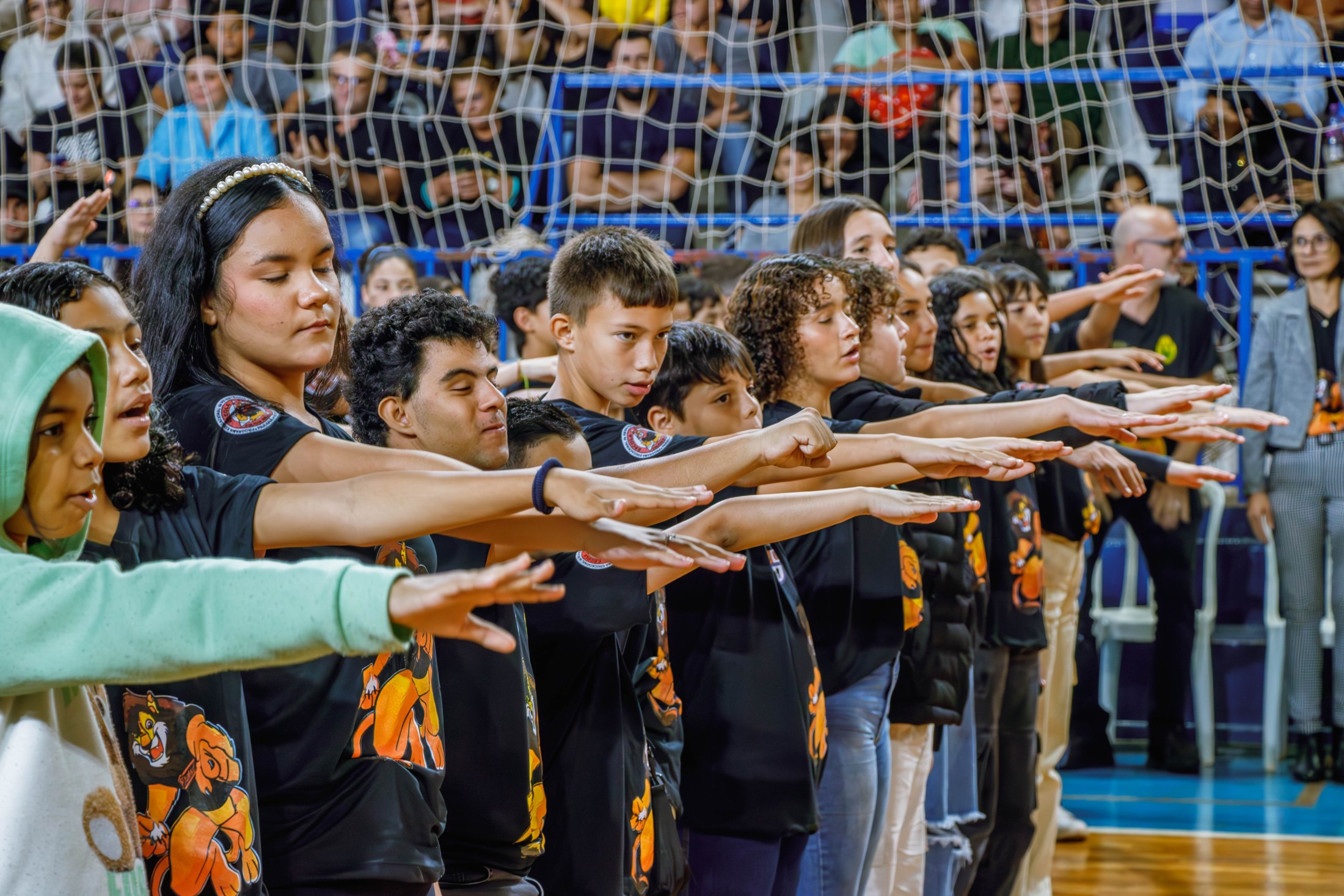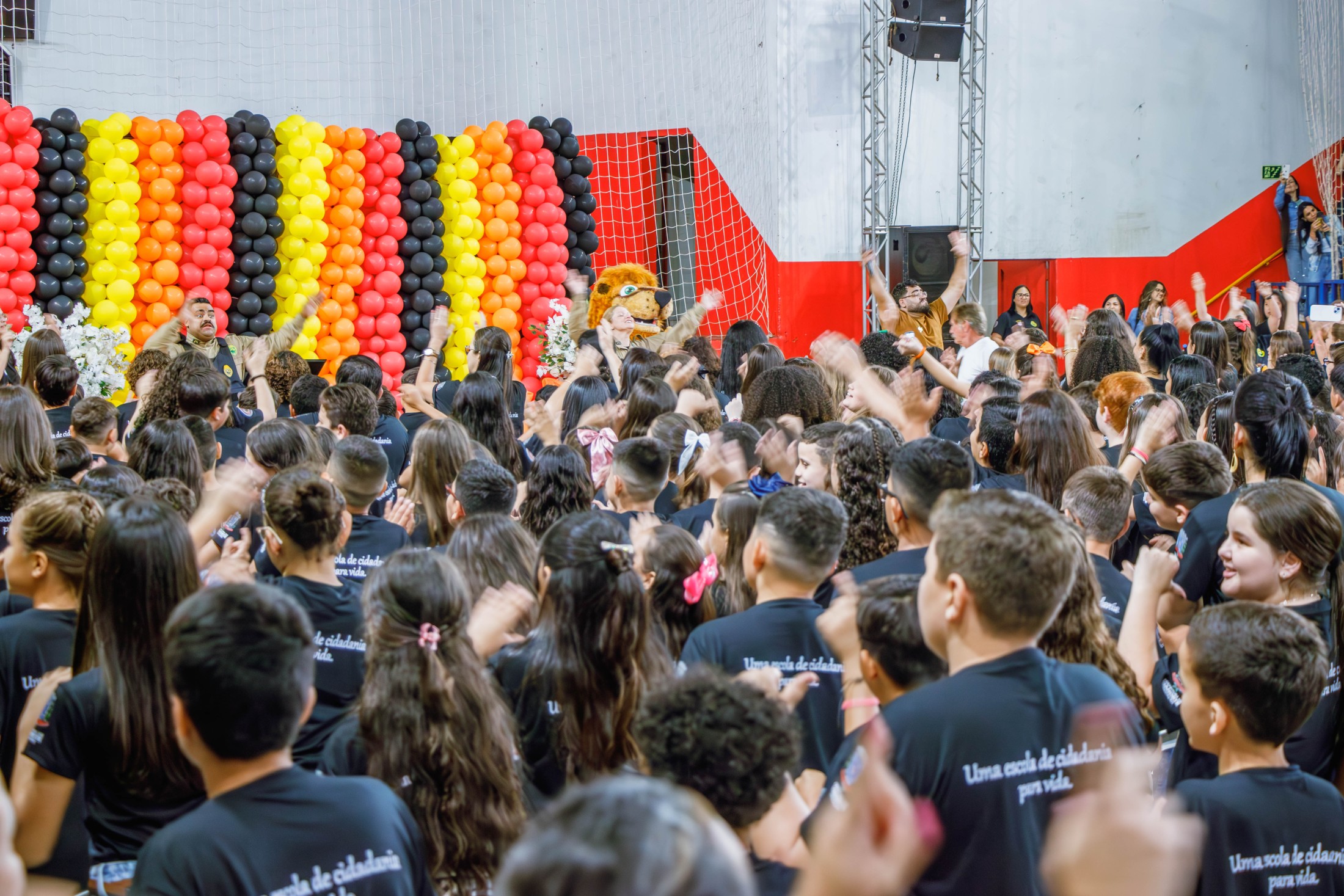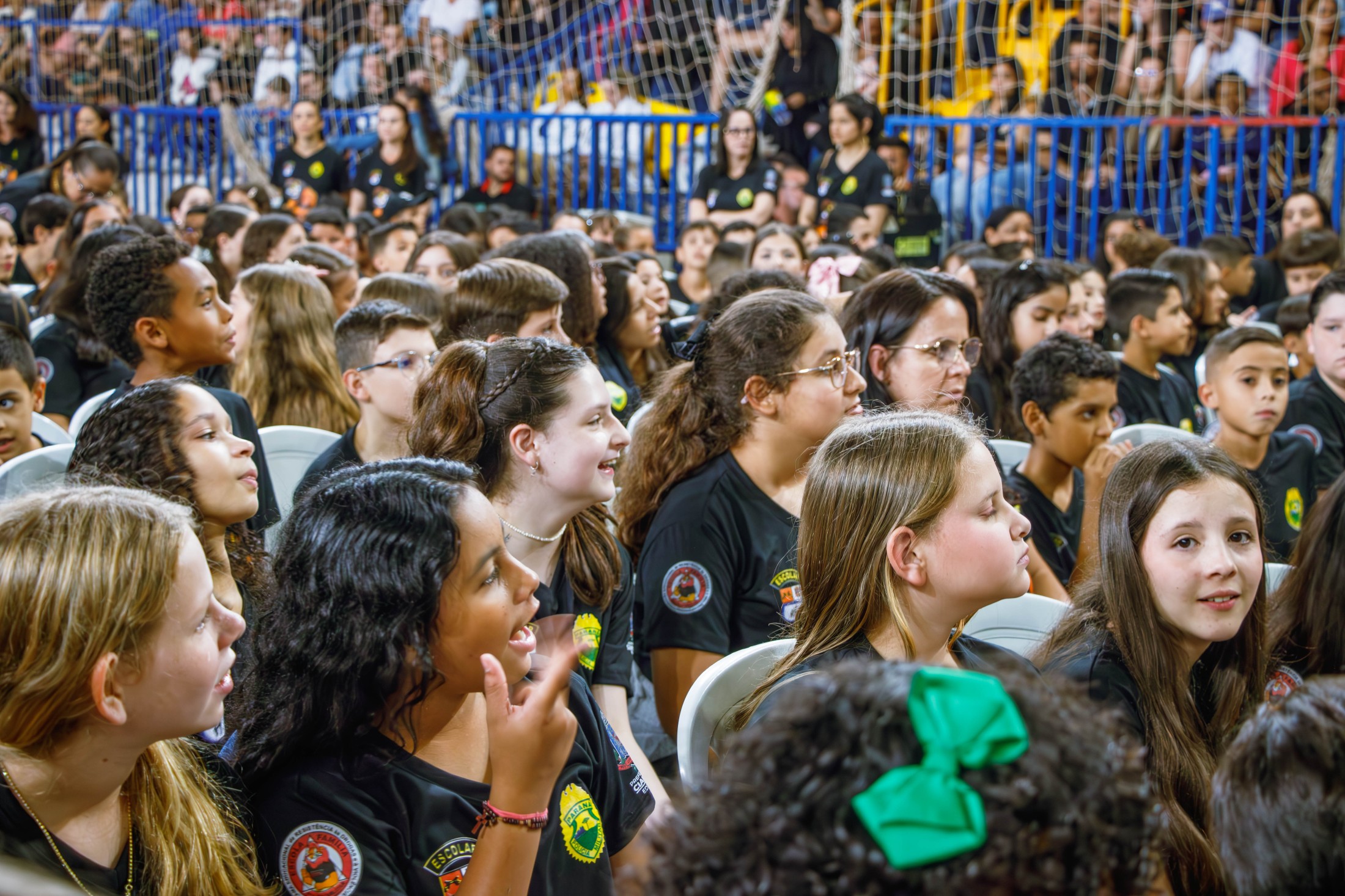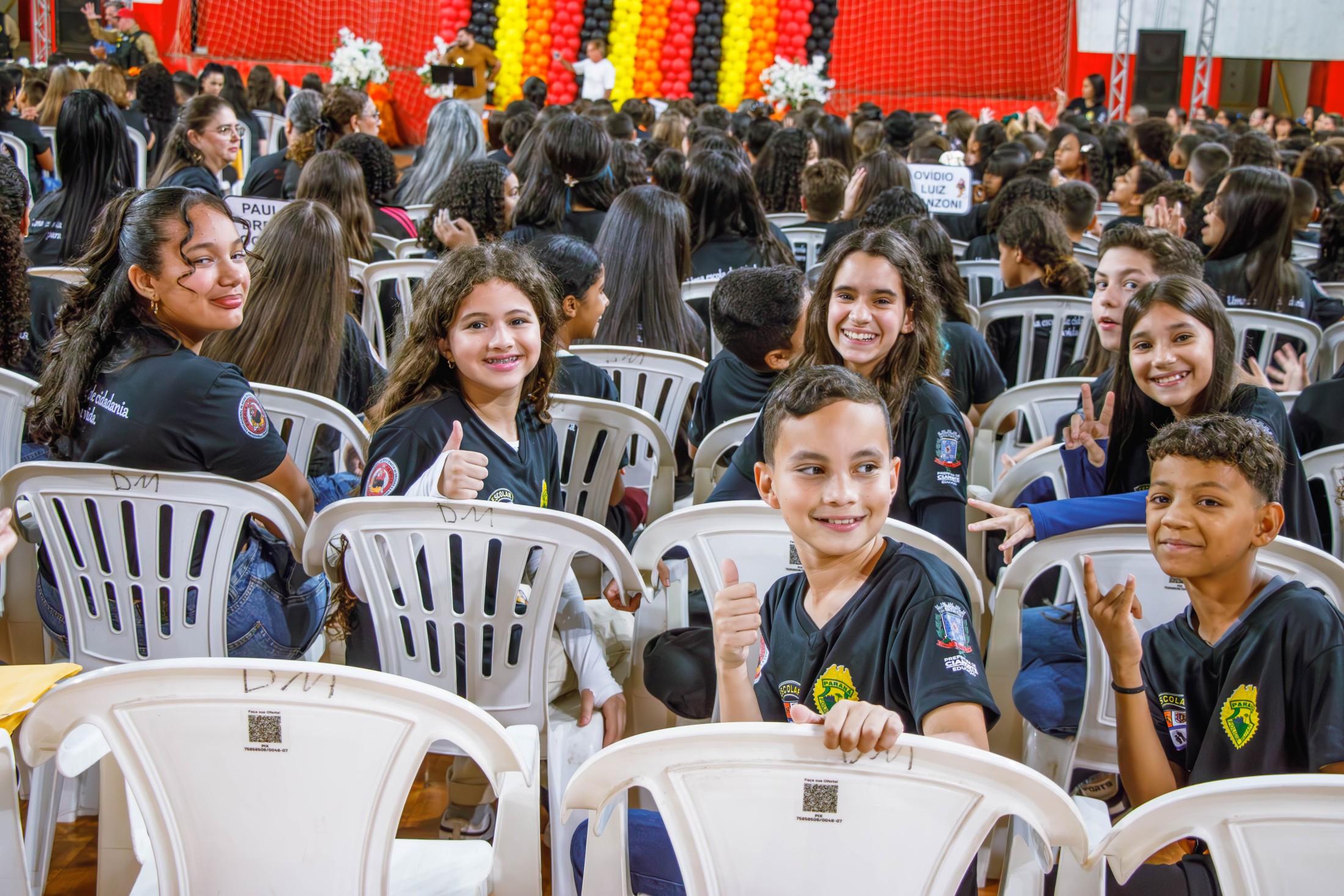 Emoção e alegria marcaram a solenidade de formatura do Programa Educacional de Resistência às Drogas e à Violência – Proerd, realizada na noite dessa terça-feira (18), no Ginásio de Esportes Tancredo Neves (Tancredão). O evento reuniu mais de 3 mil pessoas, entre autoridades, militares, profissionais da educação, familiares e mais de 900 estudantes do 5º ano do Ensino Fundamental, das 15 escolas da rede municipal de ensino, participantes do programa.