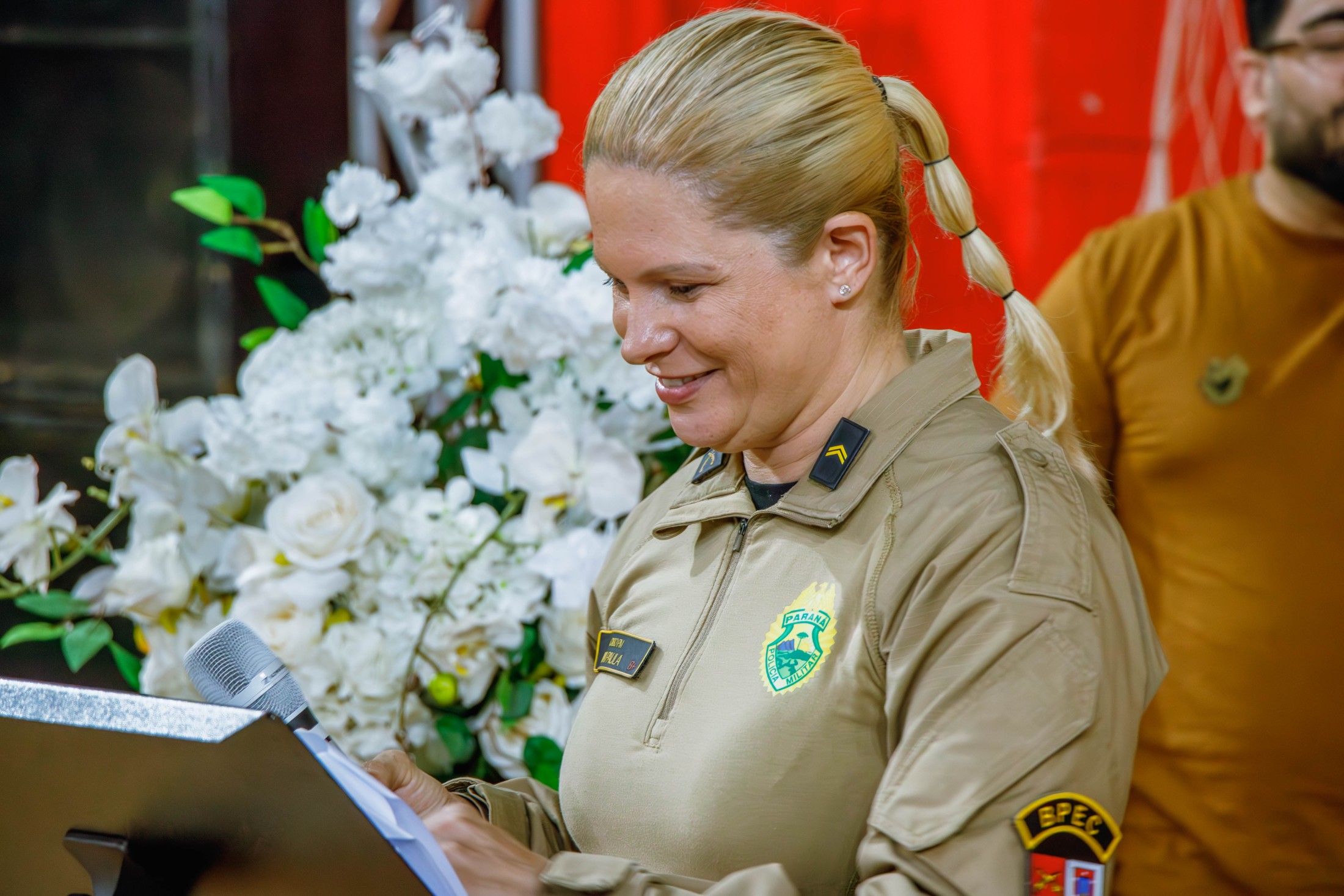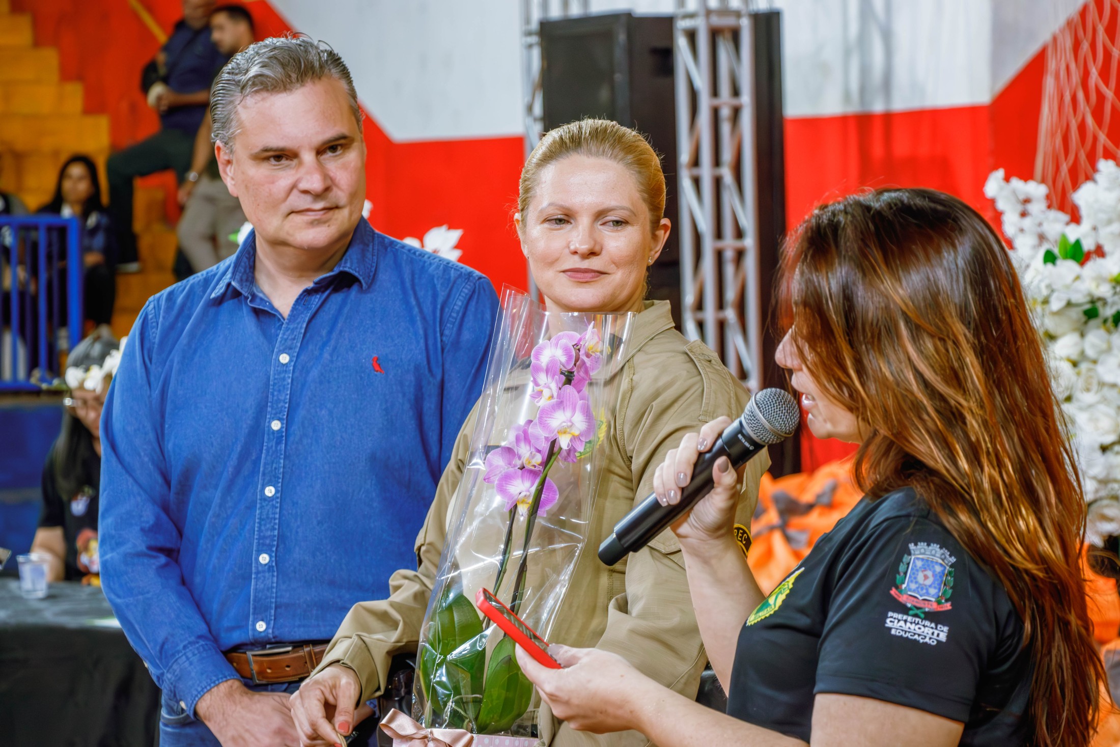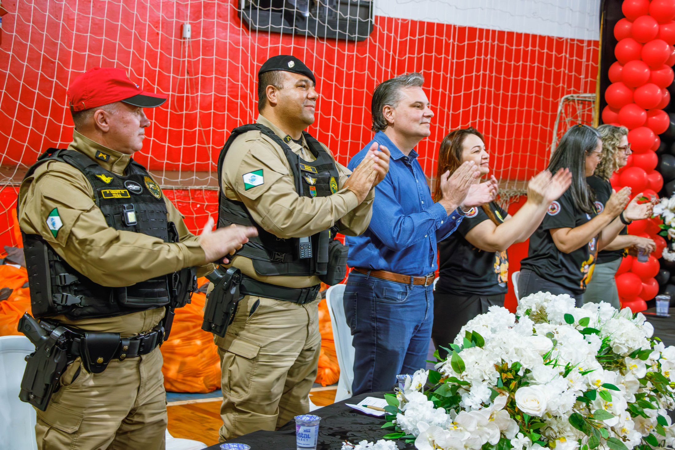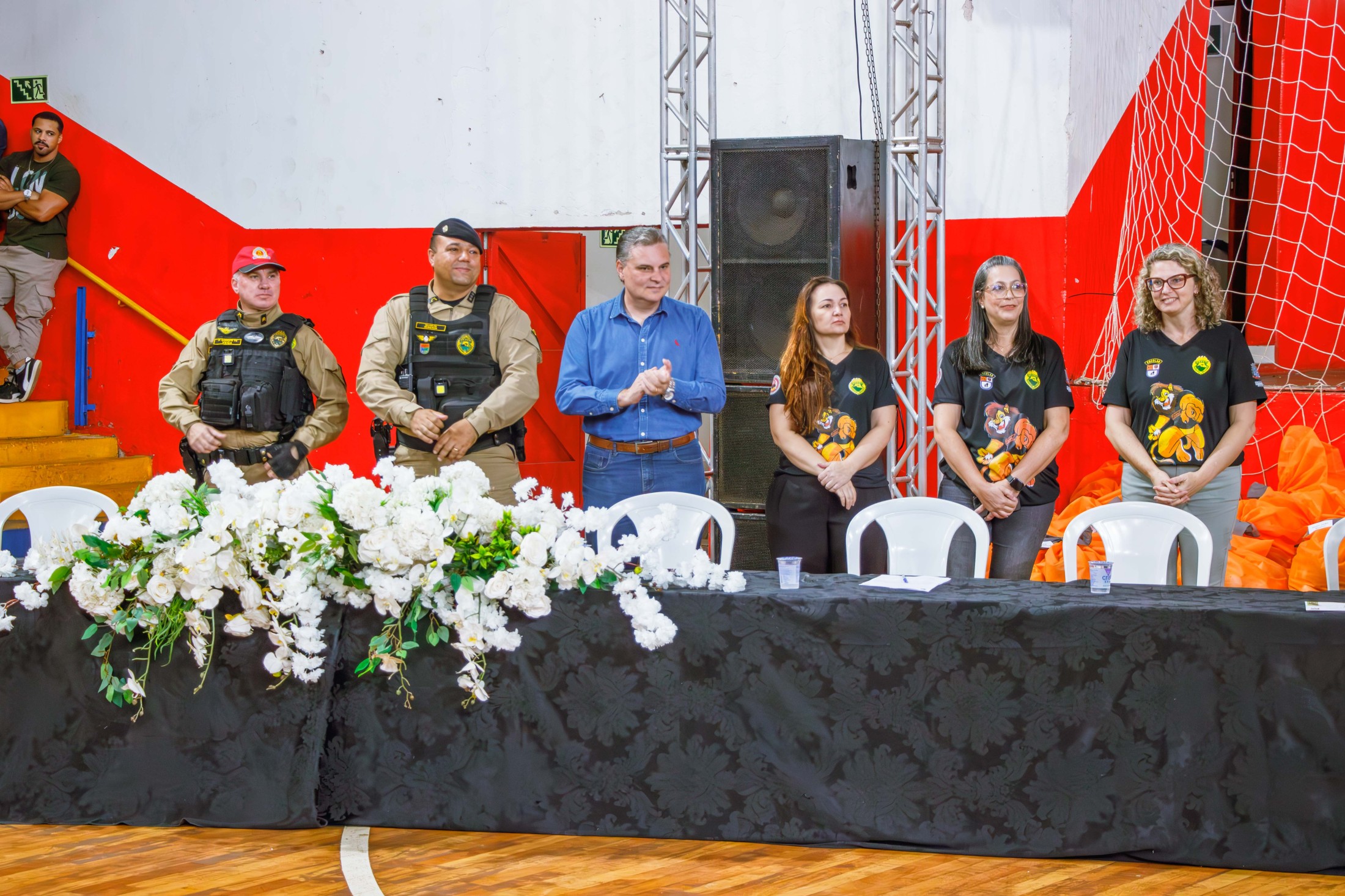 A solenidade contou, ainda, com a presença do representante da Polícia Rodoviária, 3º Sargento Veiga; representando a Patrulha Escolar Comunitária, Cabo Farias; da diretora geral da Secretaria Municipal de Educação, Shirley Scomparin Ponciano da Silva; e da diretora de Planejamento Estratégico e Políticas Públicas, Juliana Turetti Romeiro Peruci. O mestre de cerimônias foi o ex-policial, Rhay Farias Cruz.
