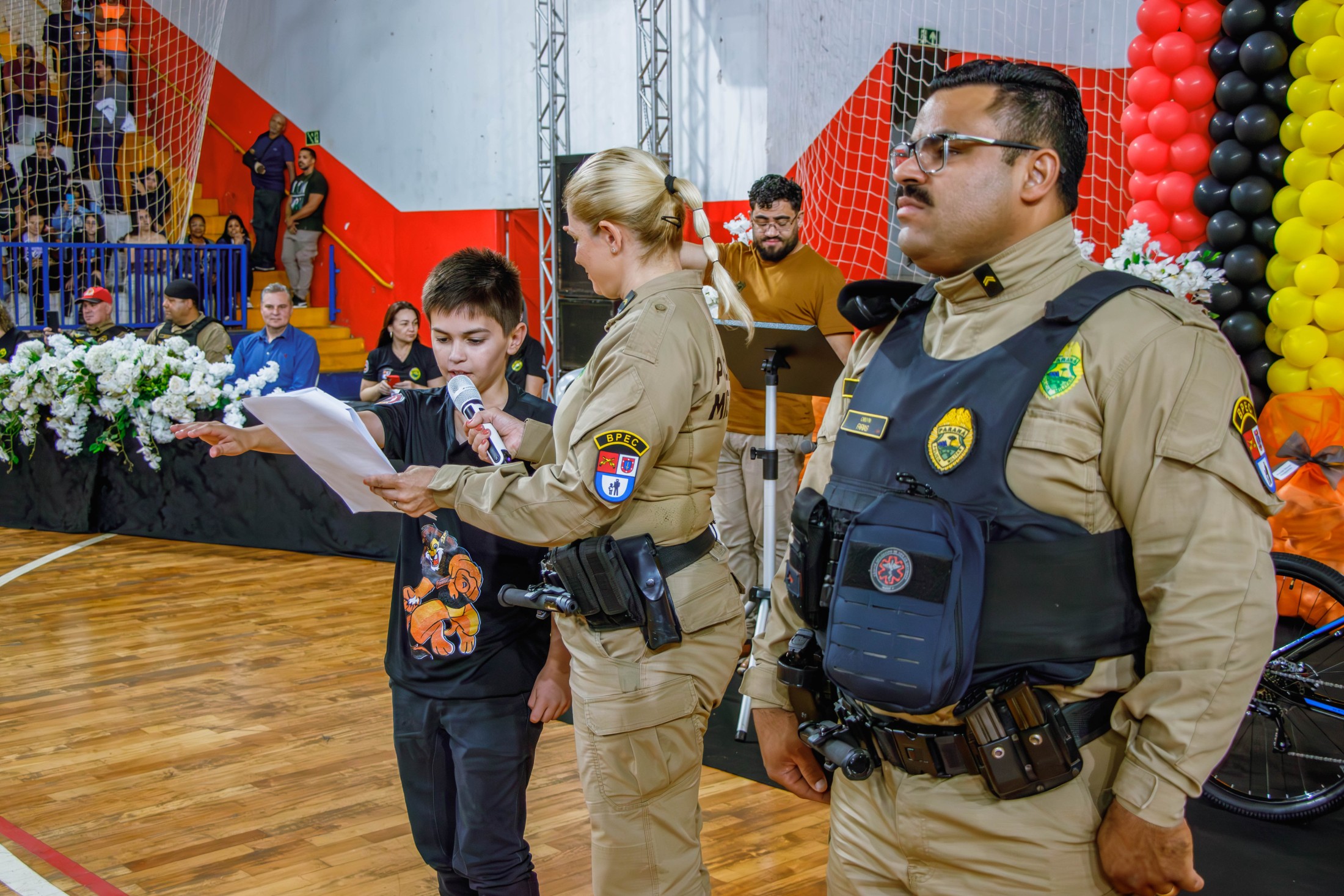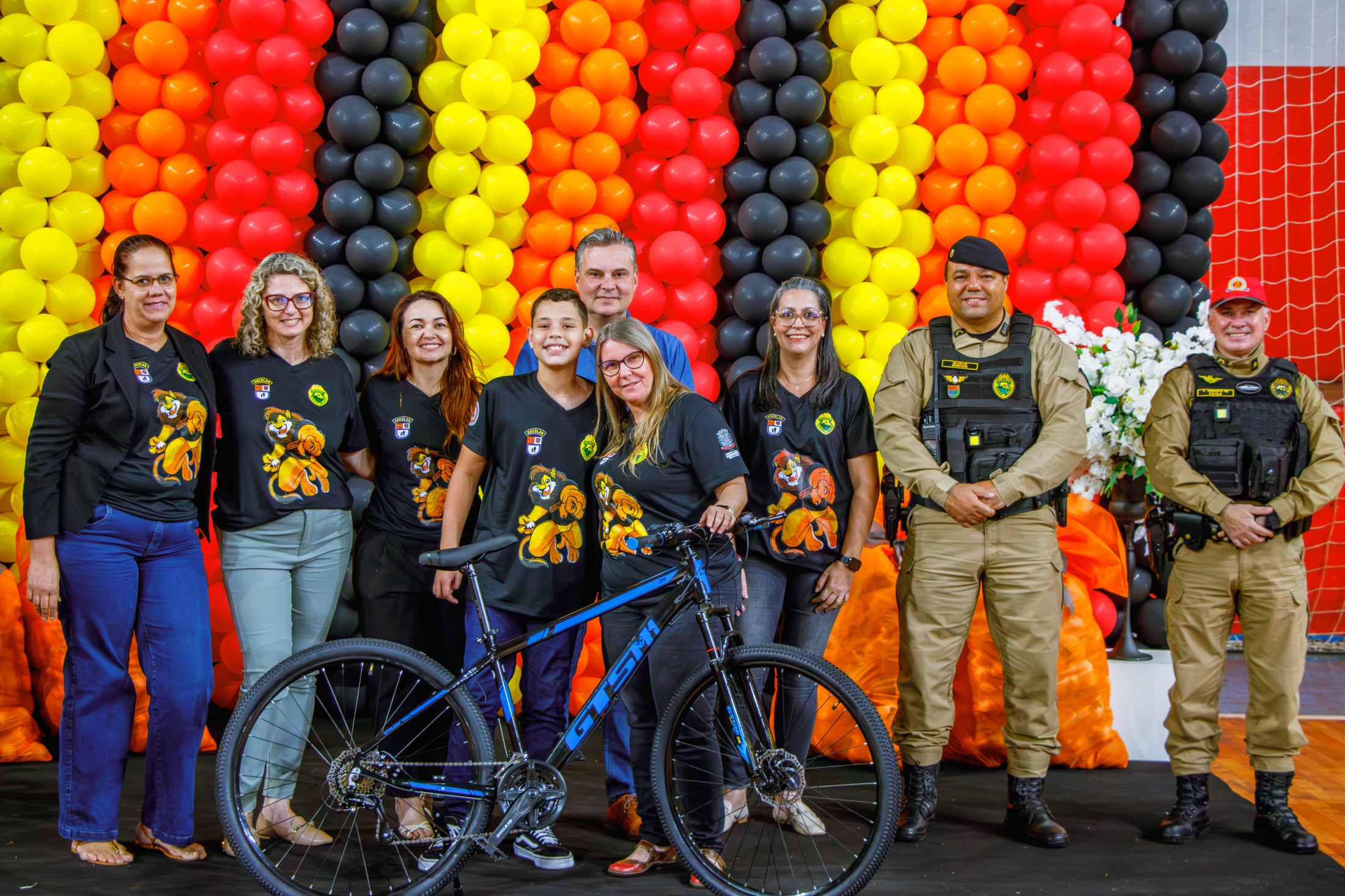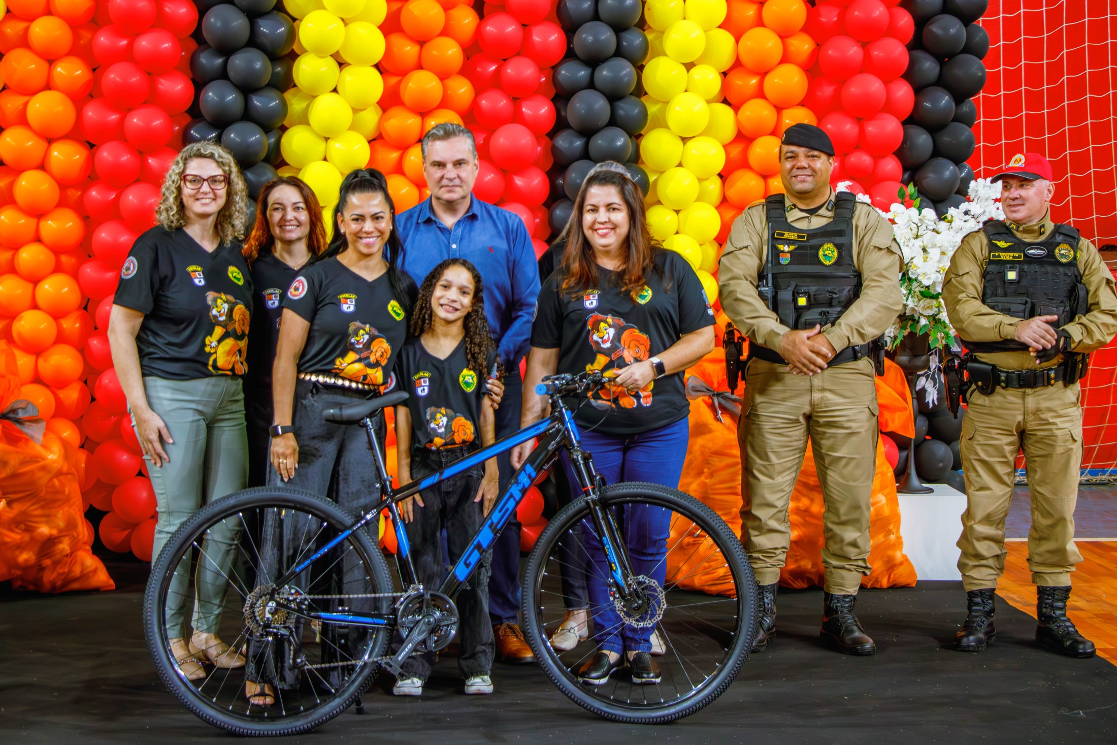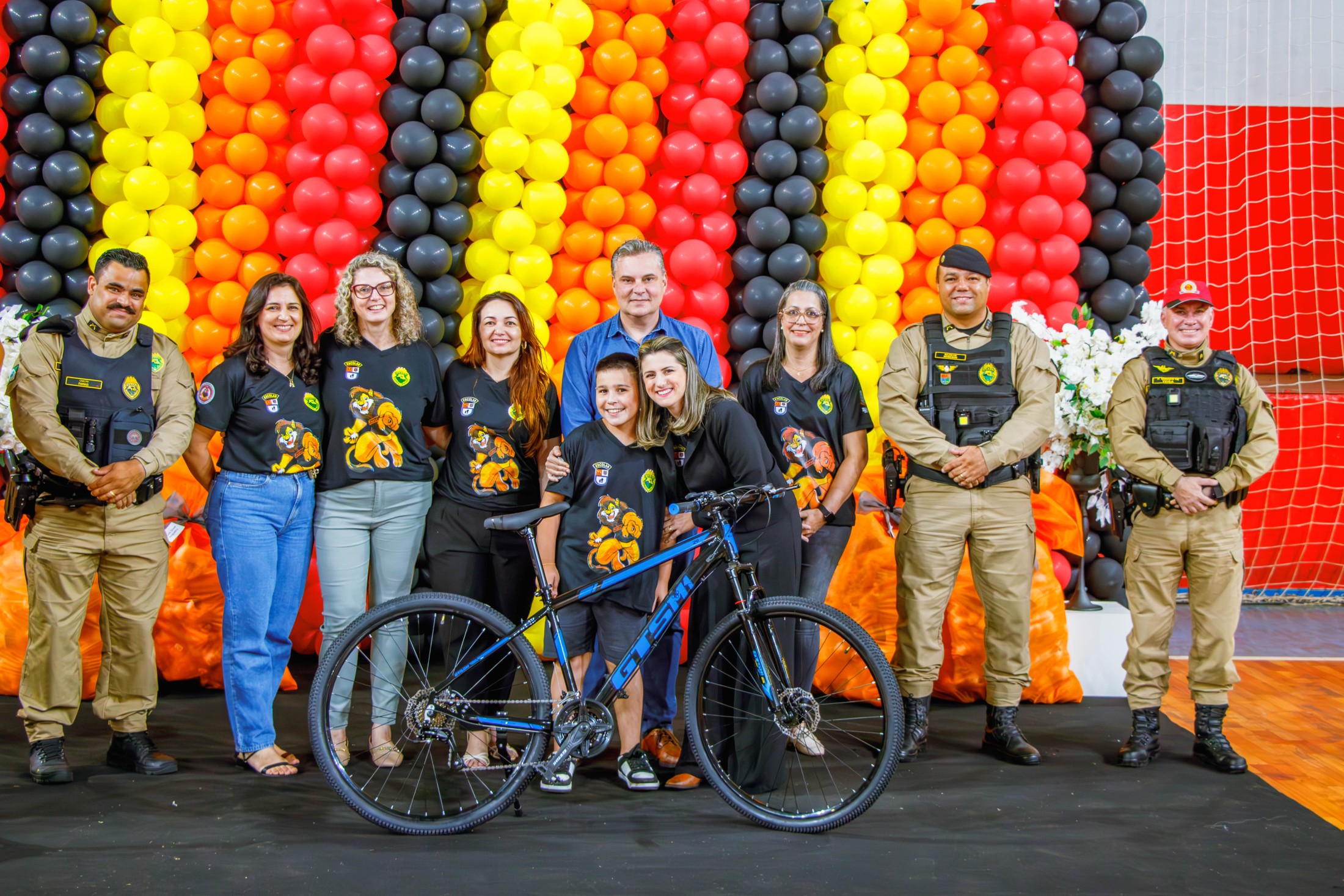 Na oportunidade, os autores das melhores redações sobre o combate às drogas de cada escola receberam uma bicicleta. Todos os formandos também foram presenteados com uma pelúcia do leão Daren, mascote do programa. “O que os instrutores do Proerd ensinam em sala de aula precisa do reforço e apoio das famílias. Educar as crianças e adolescentes para serem capazes de fazer boas escolhas, de forma segura e responsável, é um esforço coletivo. Juntos, polícia, escola e família, podemos fazer a diferença”, afirmou o comandante da 5ª Companhia Independente da Polícia Militar, Major Hericson.