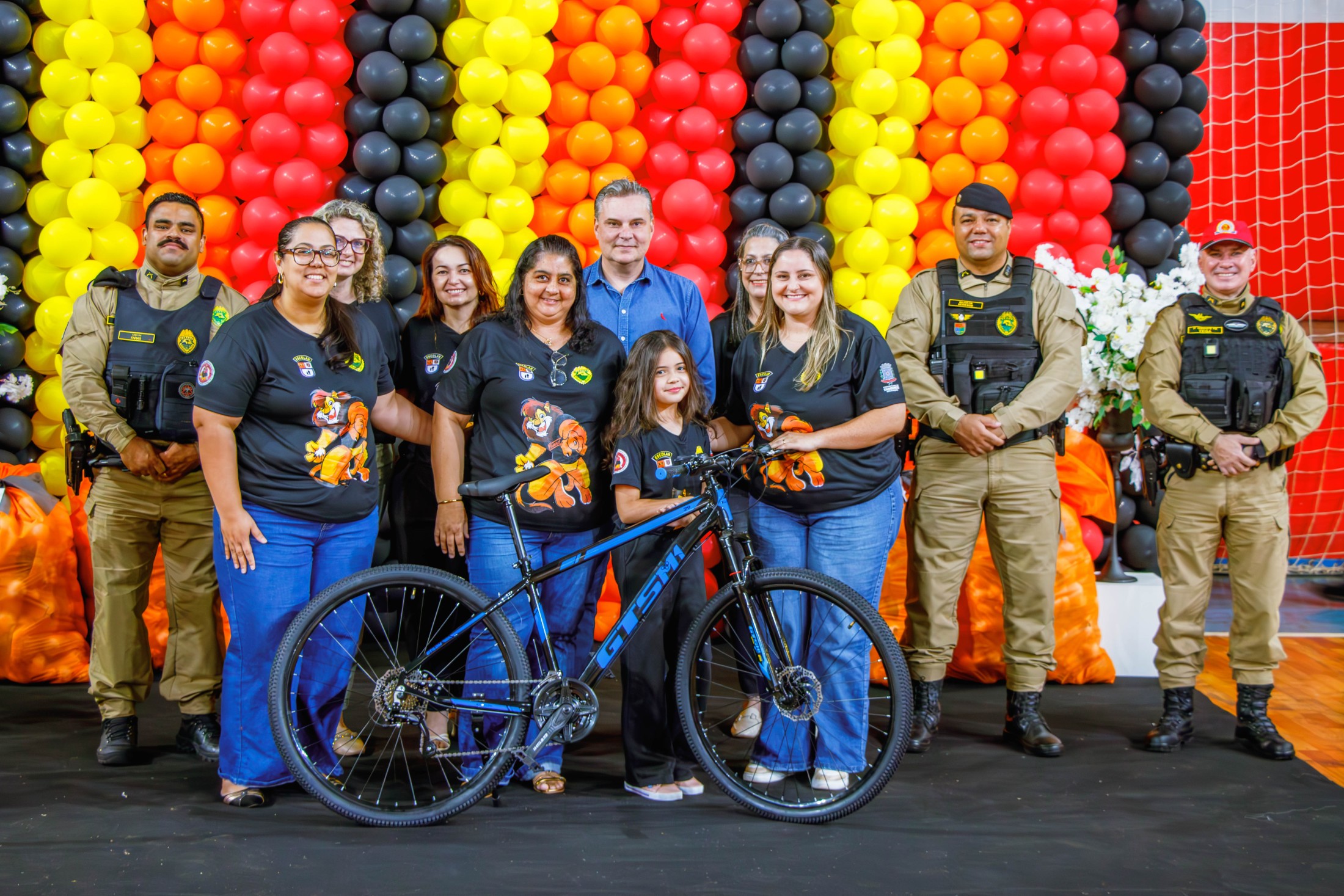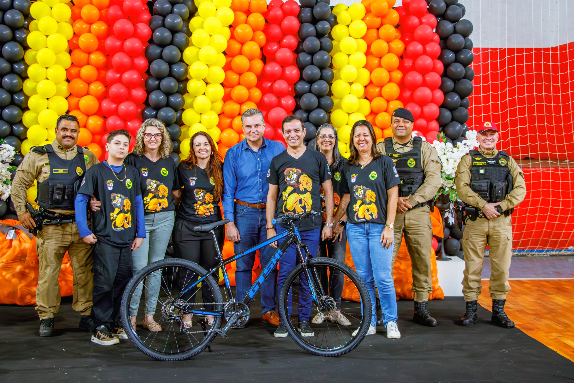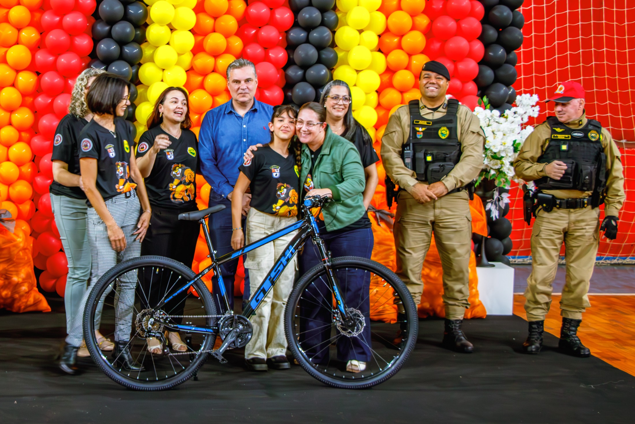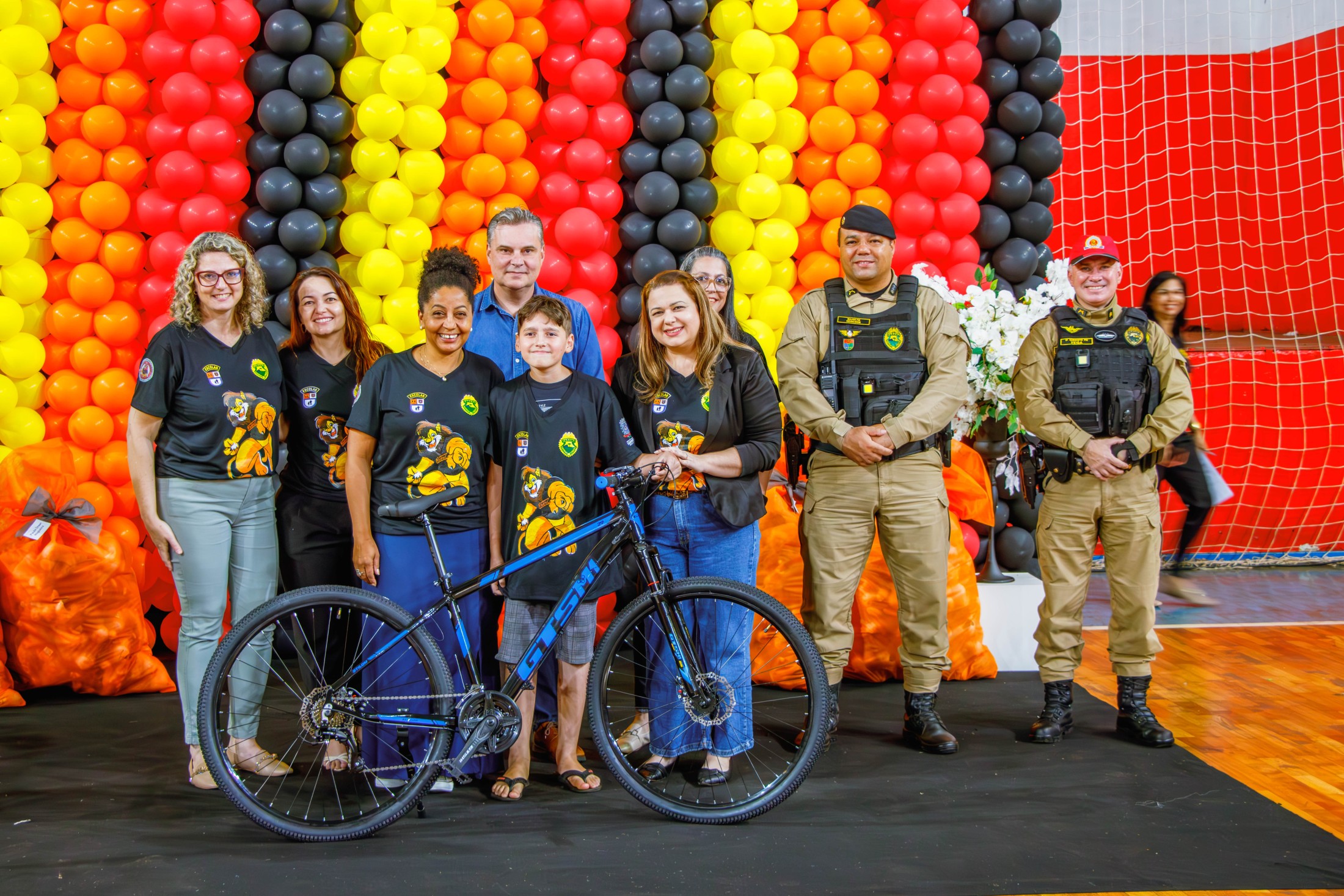 Na oportunidade, os autores das melhores redações sobre o combate às drogas de cada escola receberam uma bicicleta. Todos os formandos também foram presenteados com uma pelúcia do leão Daren, mascote do programa. “O que os instrutores do Proerd ensinam em sala de aula precisa do reforço e apoio das famílias. Educar as crianças e adolescentes para serem capazes de fazer boas escolhas, de forma segura e responsável, é um esforço coletivo. Juntos, polícia, escola e família, podemos fazer a diferença”, afirmou o comandante da 5ª Companhia Independente da Polícia Militar, Major Hericson.