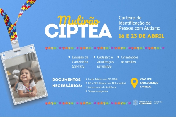 Município promove mutirão para emissão da Carteira de Identificação do Autista