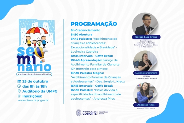 Abertas as inscrições para o Seminário Municipal de Acolhimento Familiar
