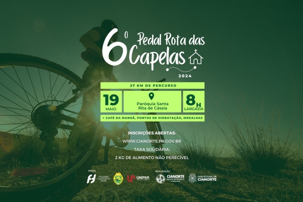 Inscrições para o 6º Pedal Rota das Capelas abrem nesta sexta-feira