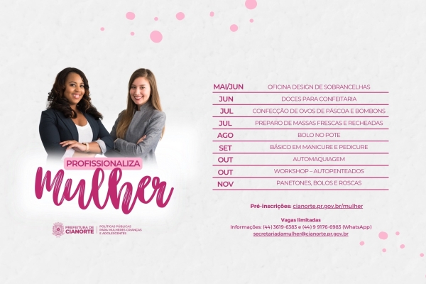 Secretaria da Mulher abre pré-inscrições para nove cursos profissionalizantes