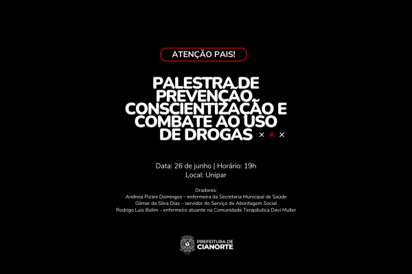 Inscrições abertas para palestra de prevenção, conscientização e combate ao uso de drogas