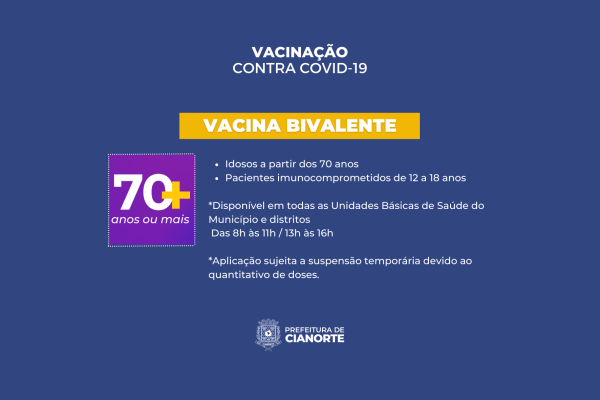 Cianorte amplia vacinação bivalente contra Covid-19 a partir de segunda-feira