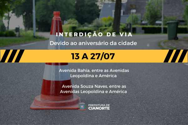 Trechos das Avenidas Bahia e Souza Naves têm trânsito interditado até 27 de julho