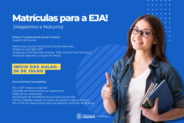 Estão abertas matrículas para a Educação de Jovens e Adultos (EJA)