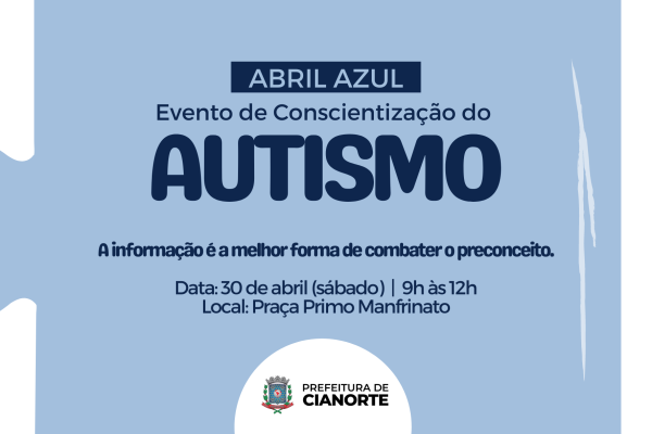 Evento de conscientização sobre o Autismo acontece neste sábado (30)
