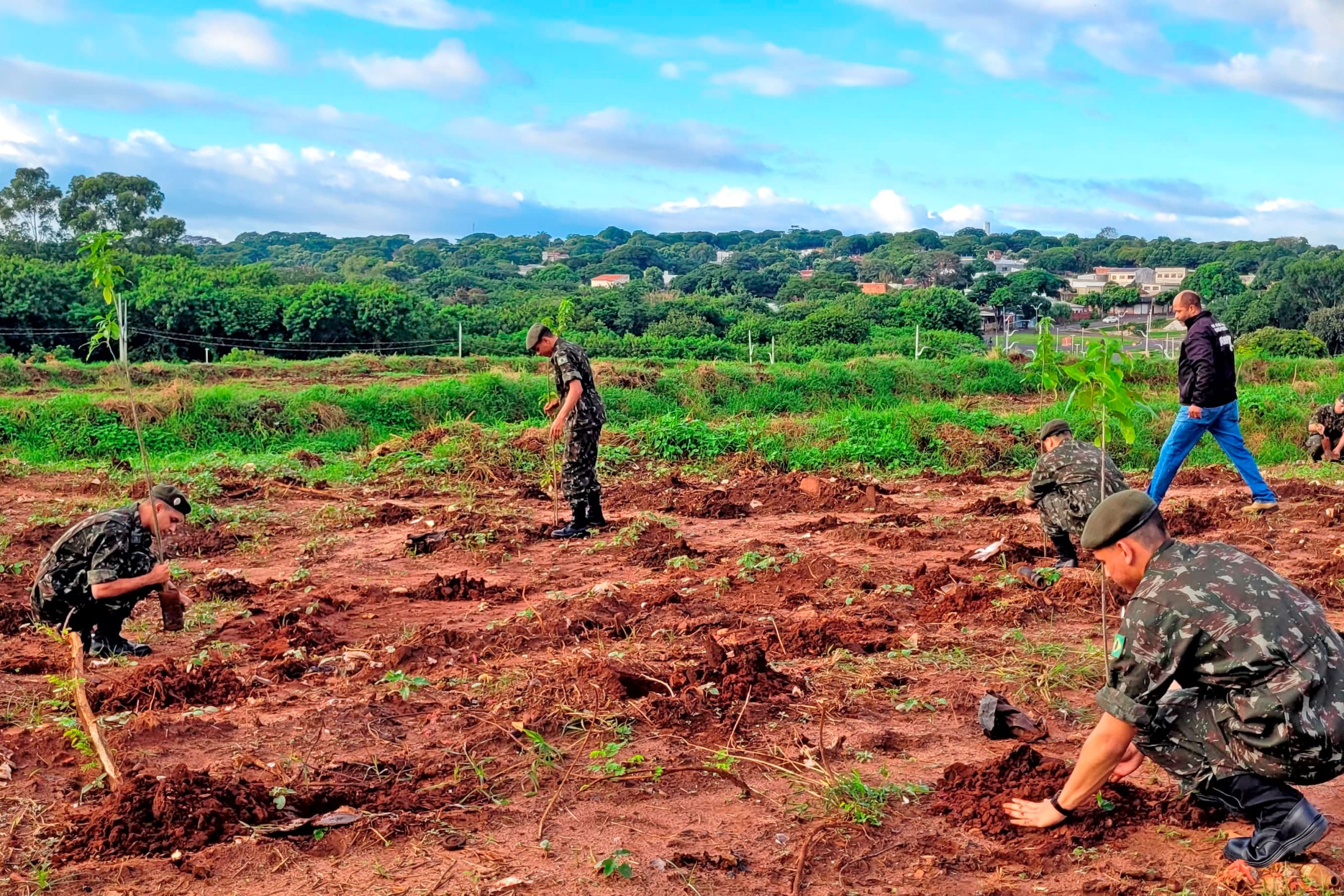 Em uma demonstração de civismo e responsabilidade com o ecossistema, o Tiro de Guerra TG-05/011 de Cianorte realizou, no último sábado (26), uma significativa ação de recuperação ambiental, em parceria com a Secretaria Municipal de Meio Ambiente e Bem-Estar Animal. Os atiradores plantaram 500 mudas de espécies nativas, em uma área localizada na Rua Kitibe Mizuta, próximo ao Ginásio Poliesportivo João Vilella, popularmente conhecido como João Bola.