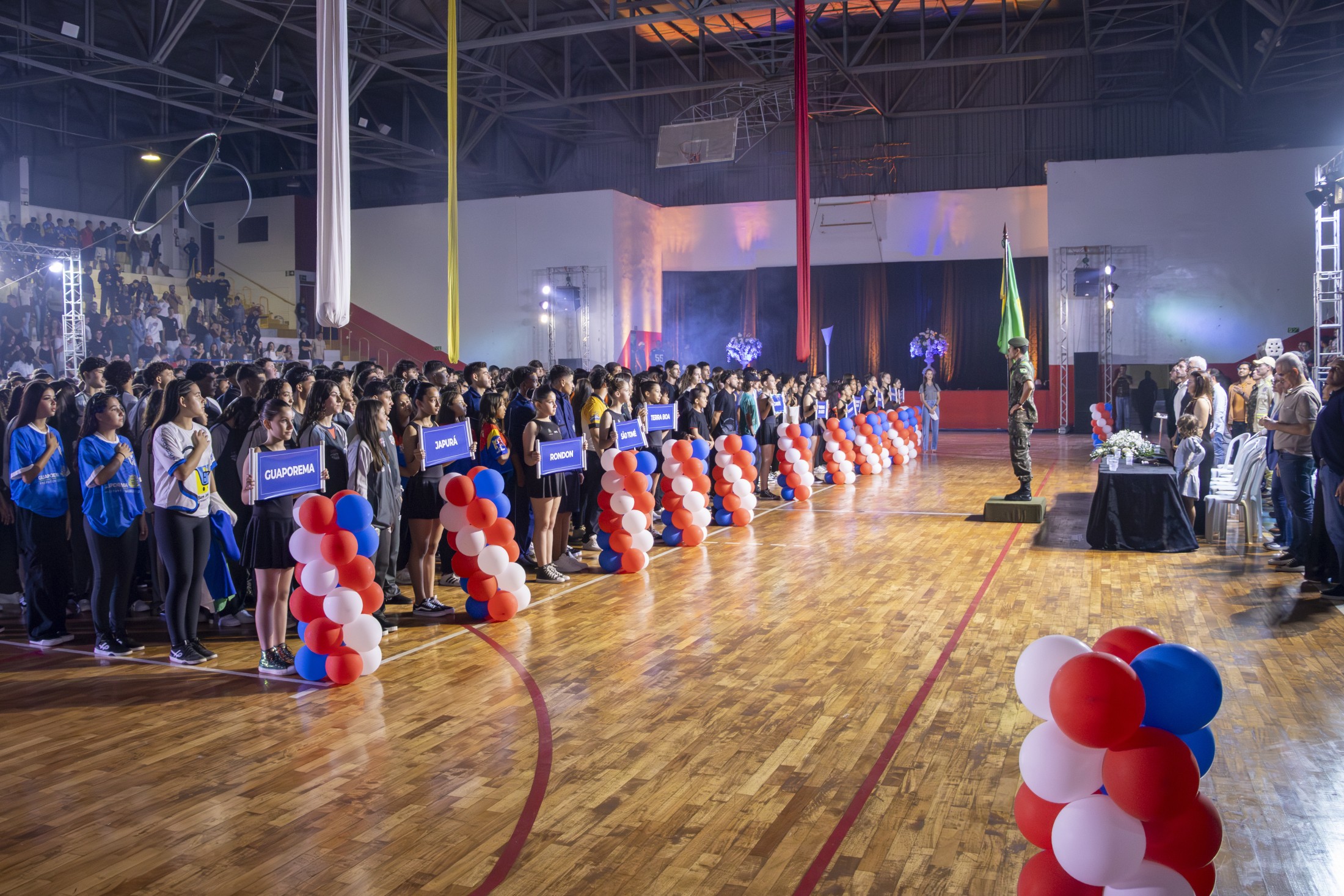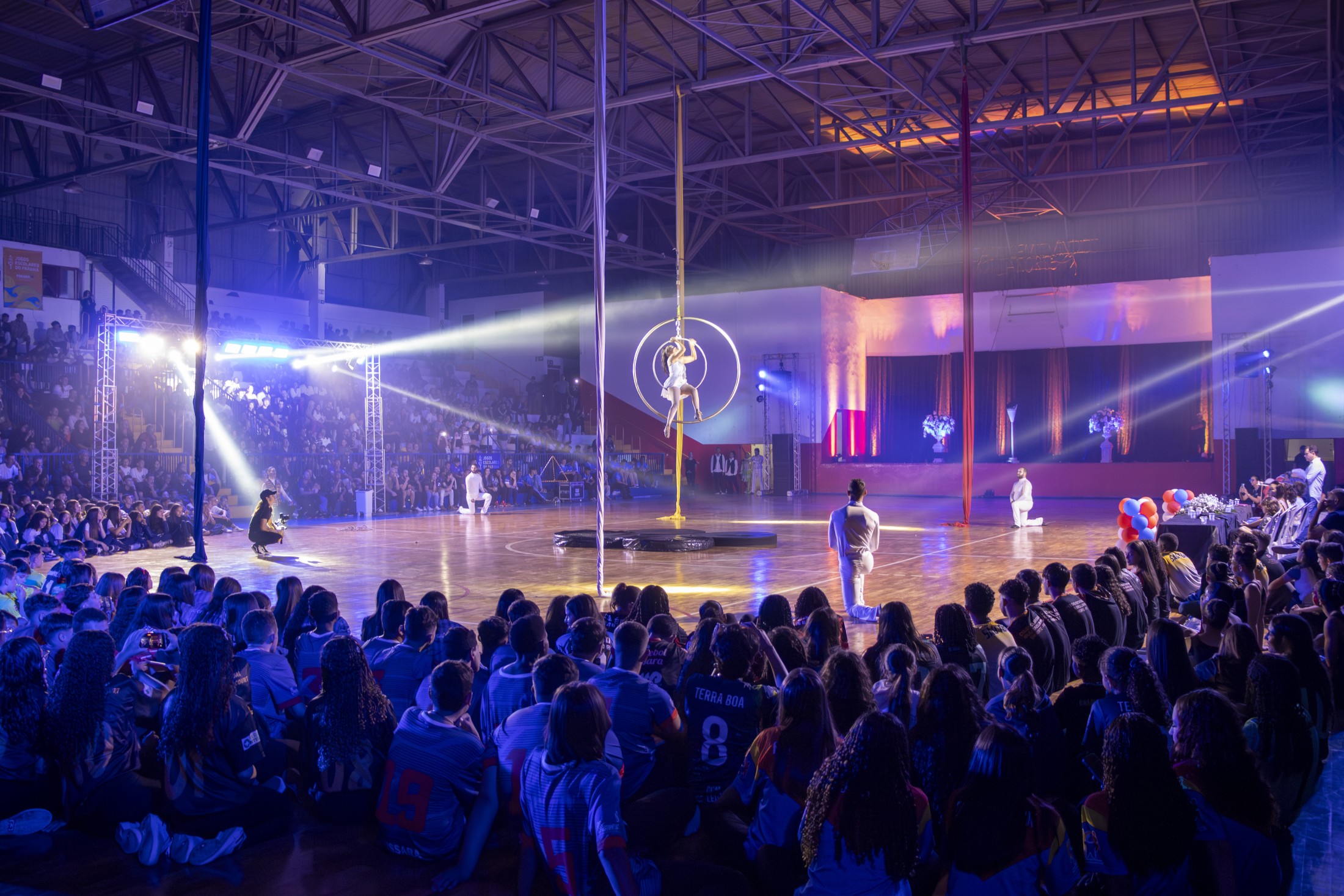 O evento de abertura foi abrilhantado por uma apresentação especial do grupo “Cirqueridum – Circo e Artes”, de Maringá, que encantou o público com números circenses e performances artísticas. Durante a solenidade, o prefeito de Cianorte, Marco Franzato, destacou a importância do evento para a cidade e para o esporte escolar. “Receber a etapa dos Jogos Escolares é mais do que um evento esportivo: é celebrar a juventude, a união e os sonhos de centenas de estudantes/atletas que aqui estão representando, com orgulho, suas escolas, cidades e comunidades”, afirmou Franzato, acompanhado da 1ª Dama, Valdete.