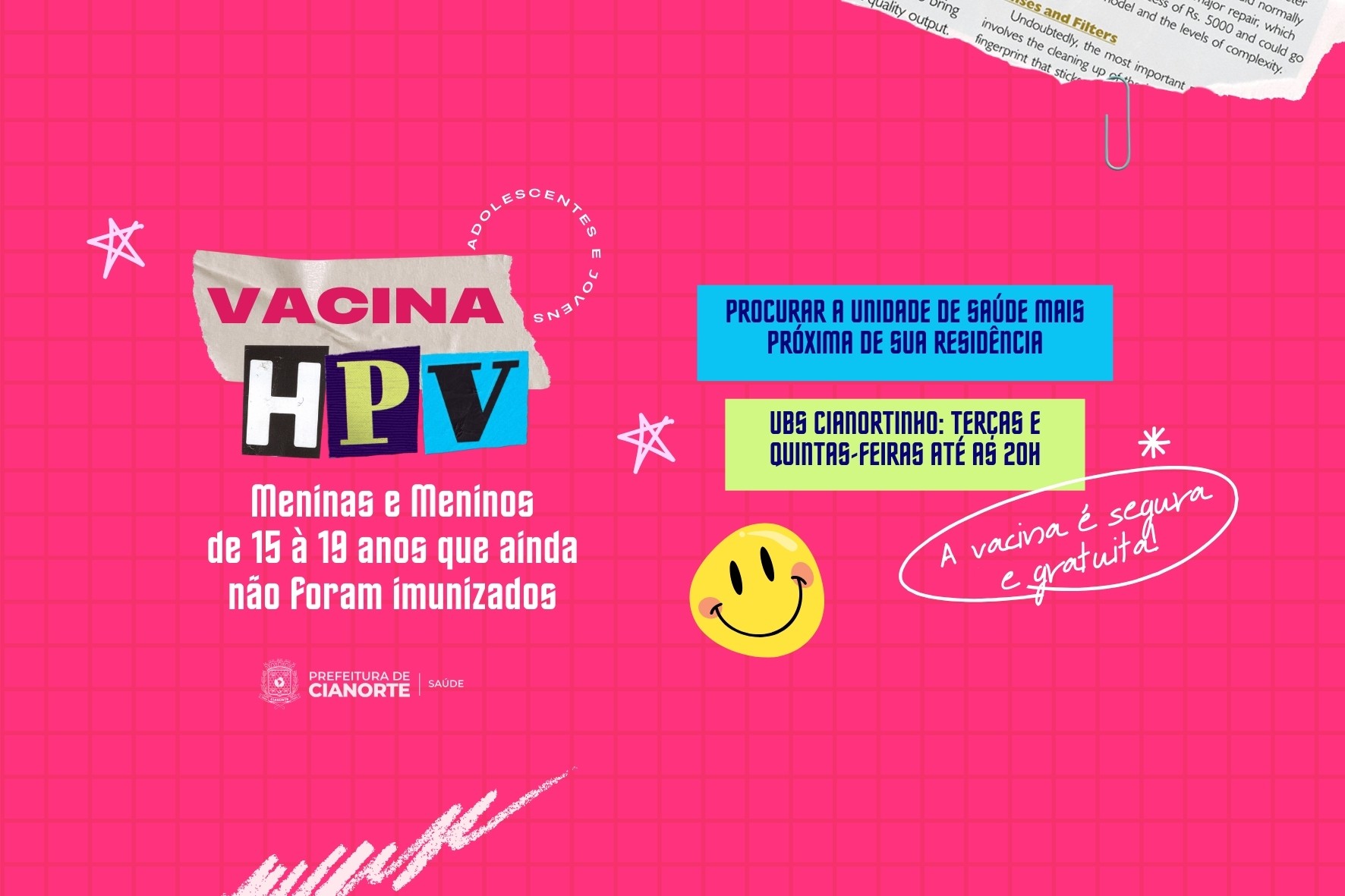 A vacinação contra o HPV é fundamental na prevenção de diversos tipos de câncer, incluindo os de colo do útero, vulva, pênis, ânus e orofaringe. As doses estão disponíveis gratuitamente no Sistema Único de Saúde (SUS) para meninos e meninas. Para facilitar o acesso, a Sala de Vacinas da UBS Cianortinho mantém um horário estendido, funcionando até as 20h às terças e quintas-feiras.