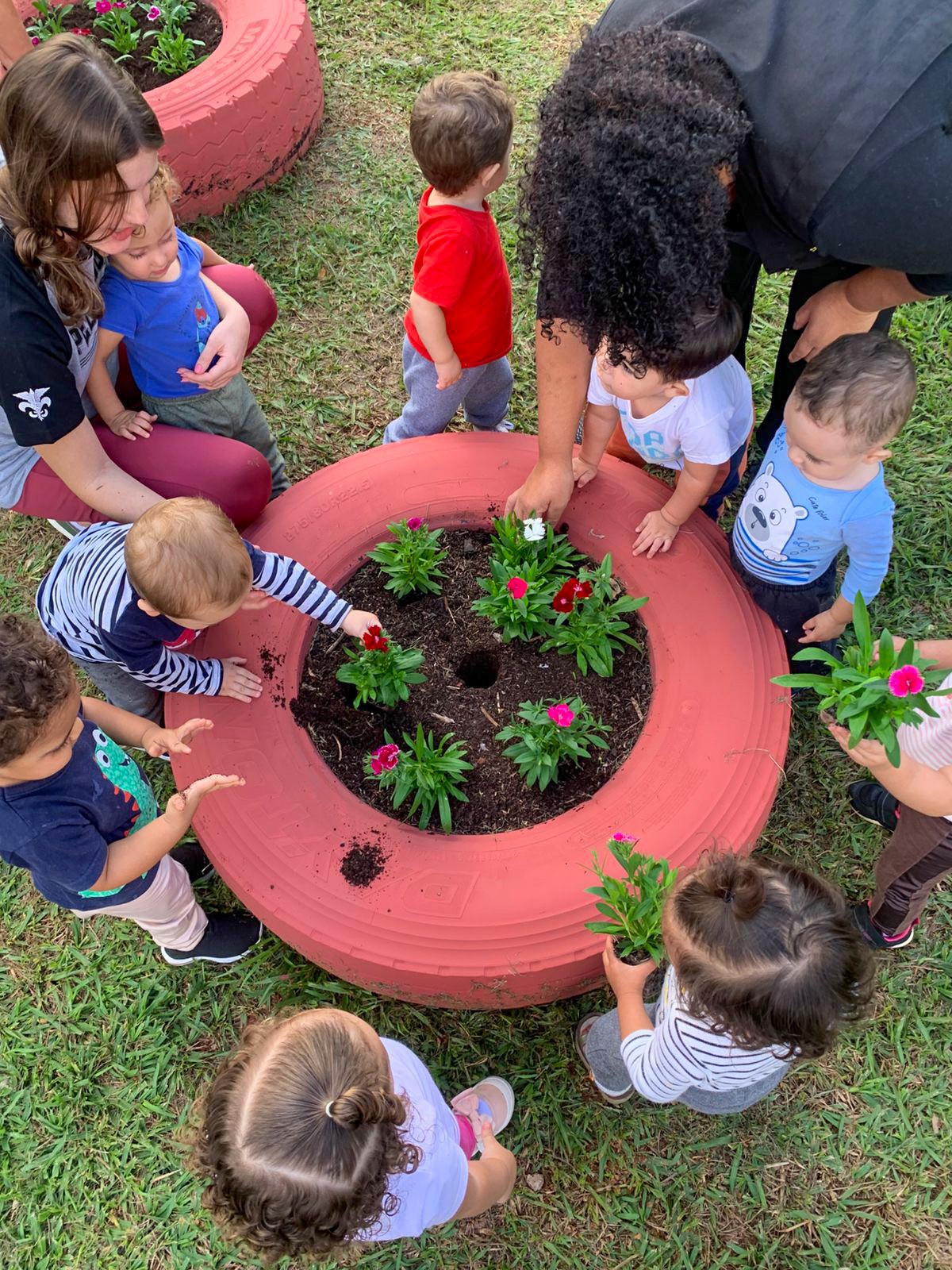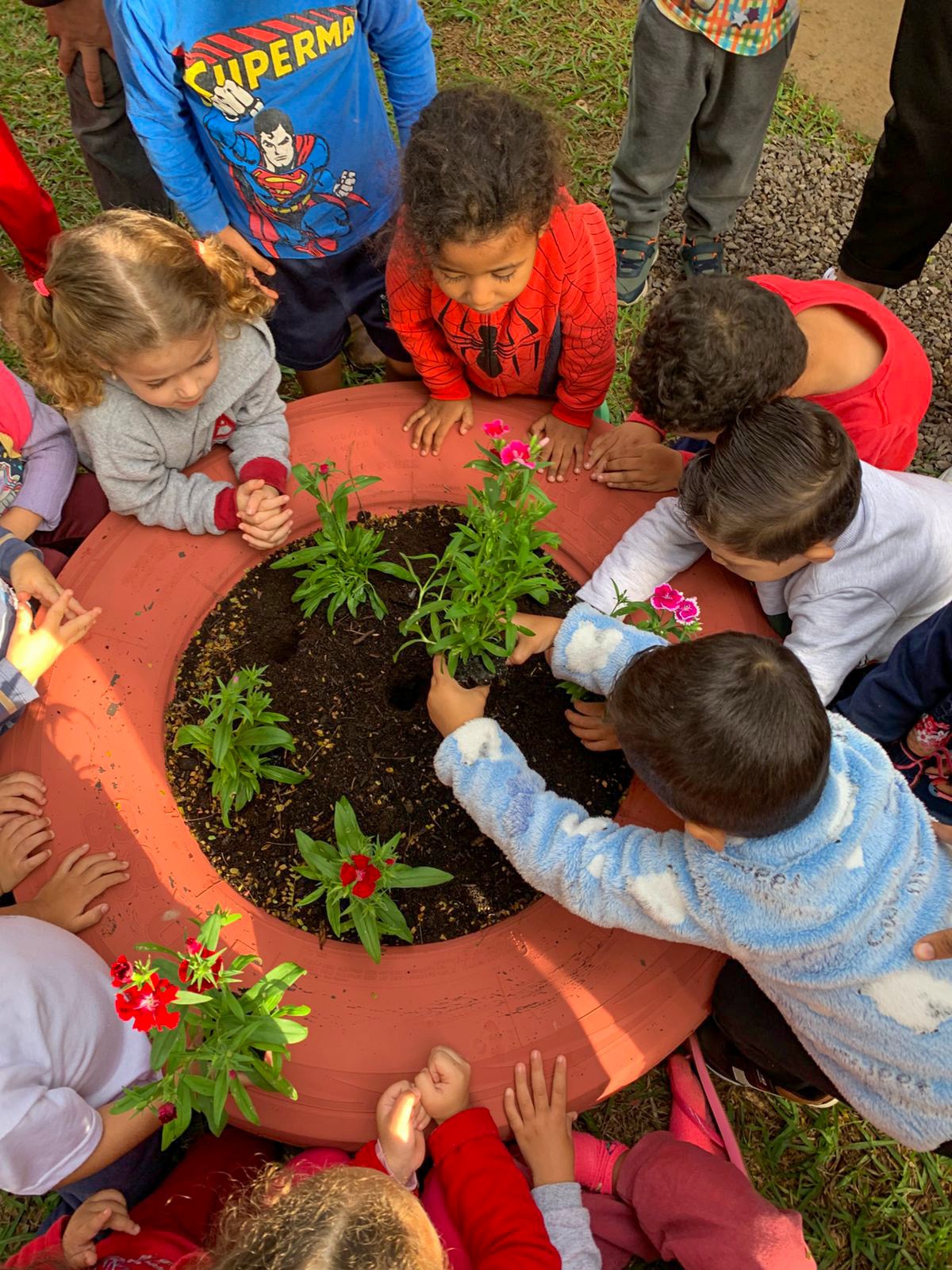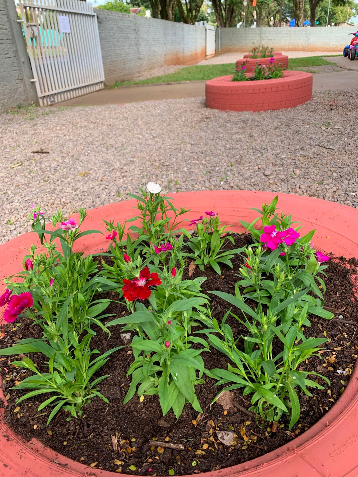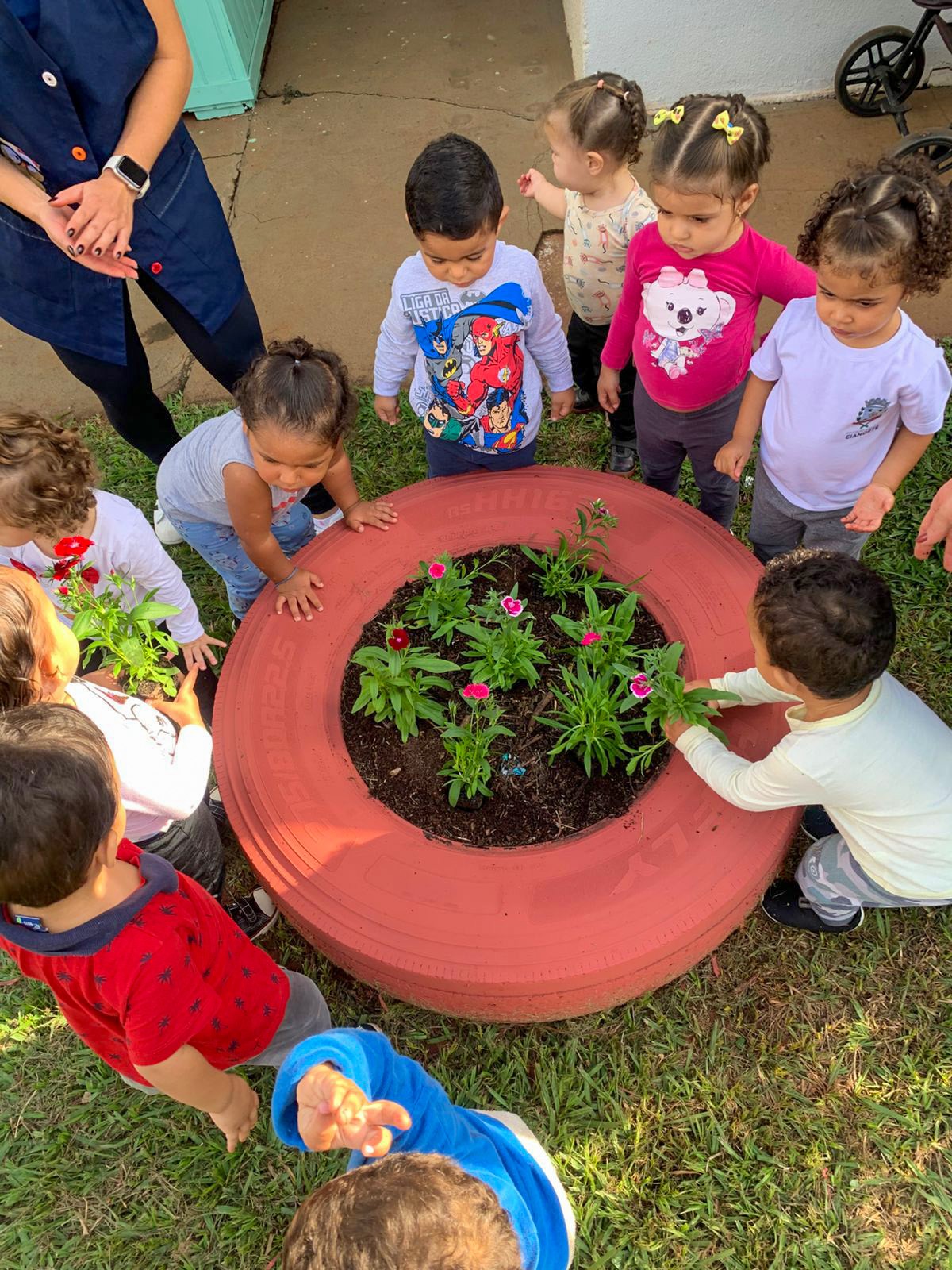 Durante a semana, as seis turmas atendidas pela instituição participaram do plantio de mudas de flores em pneus reciclados. A proposta teve como objetivo incentivar, desde a primeira infância, o cuidado com a natureza e a importância da reciclagem, promovendo atitudes sustentáveis no dia a dia das crianças.