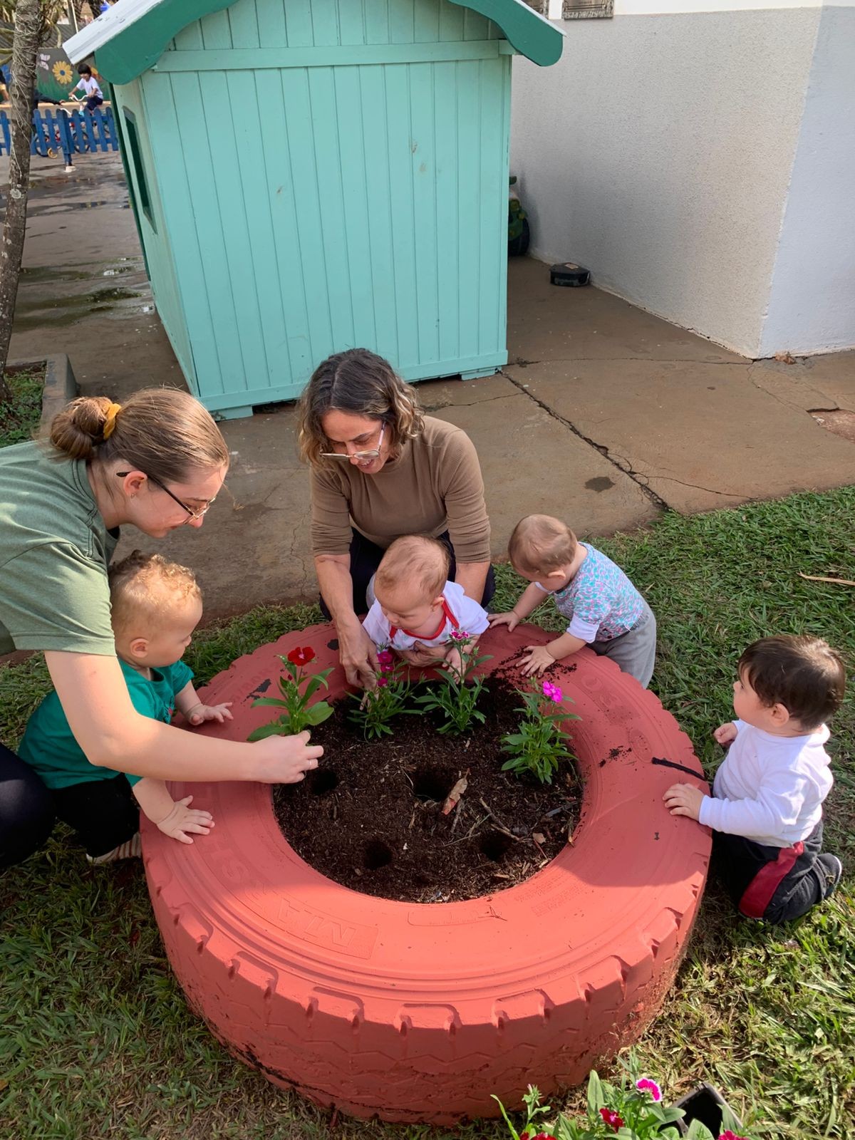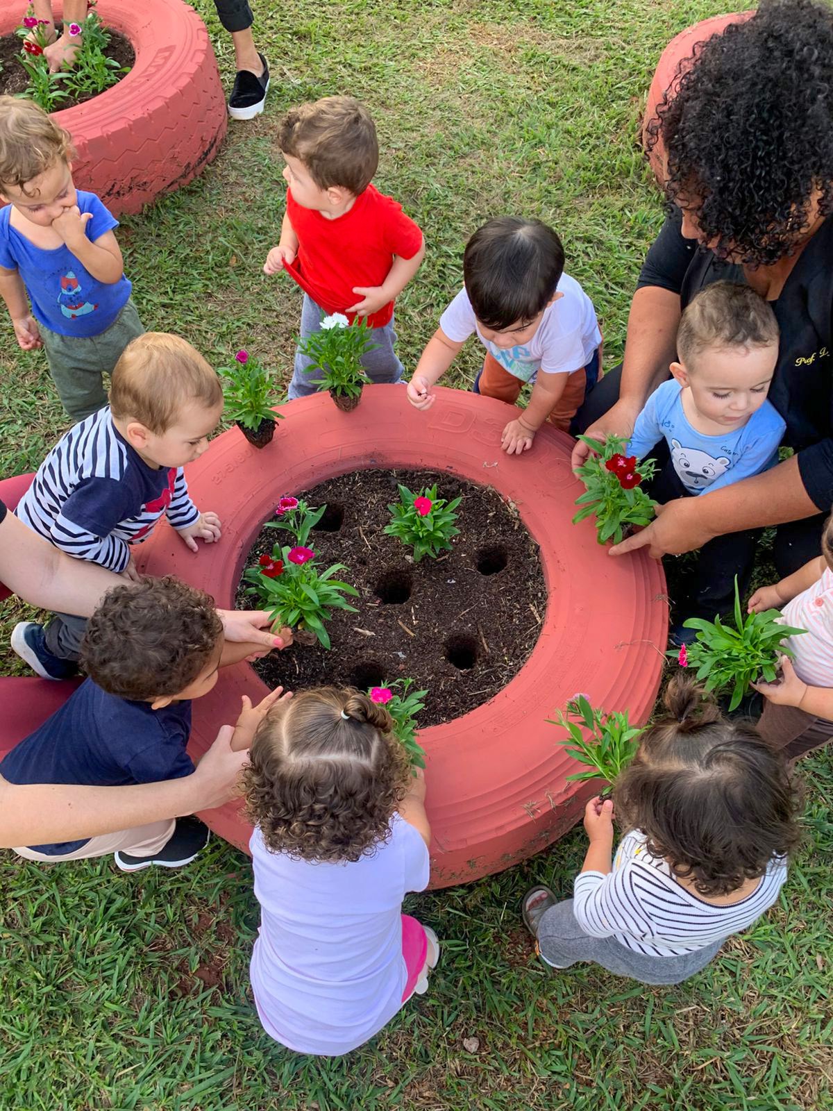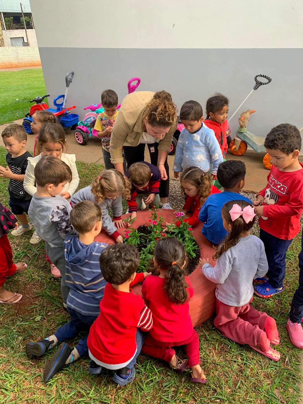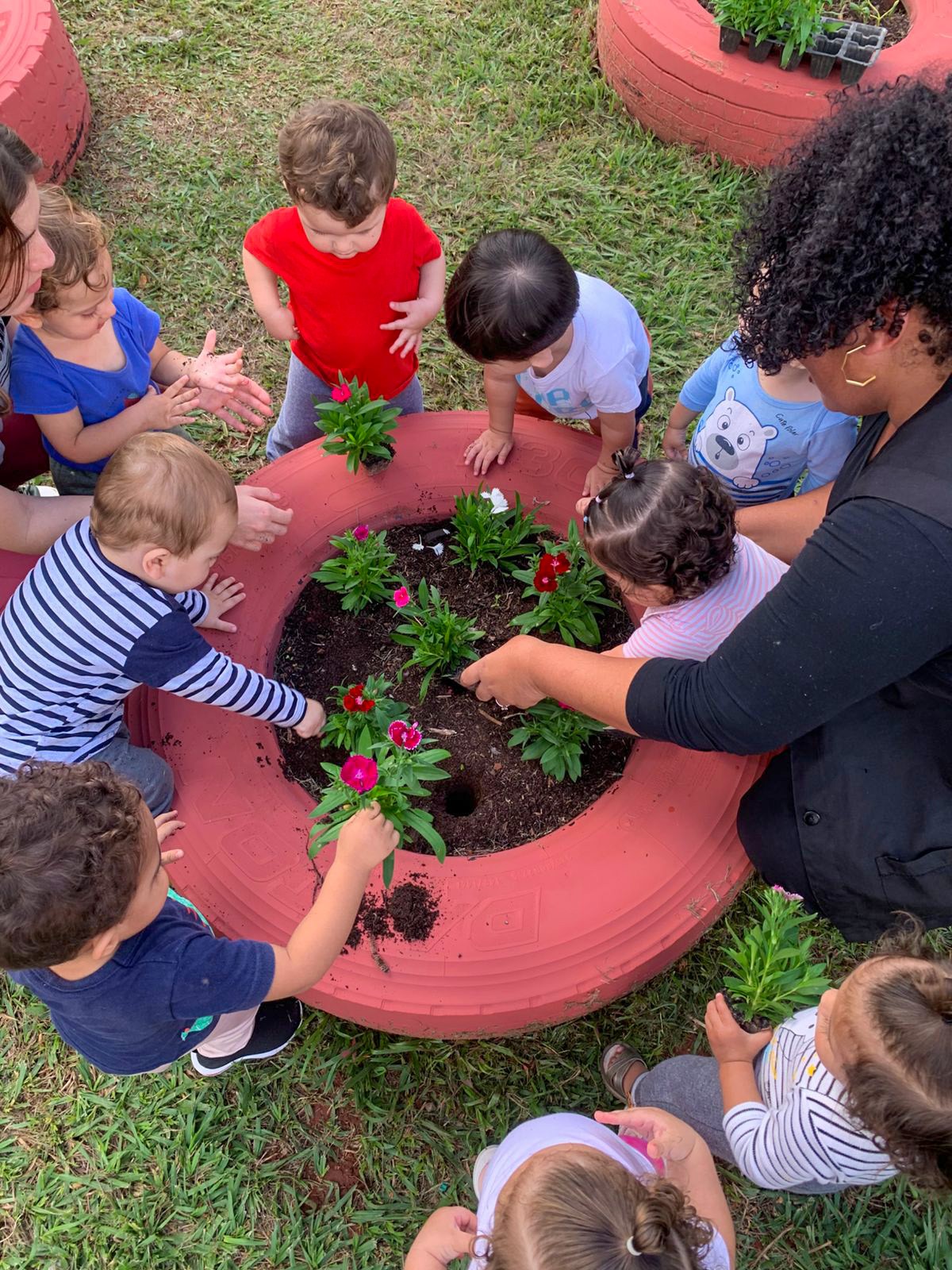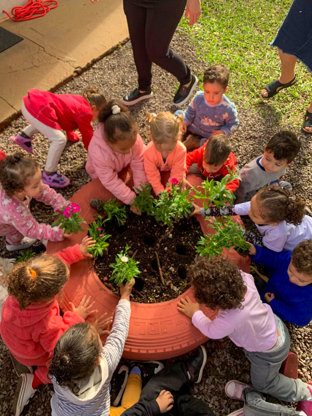 Durante a semana, as seis turmas atendidas pela instituição participaram do plantio de mudas de flores em pneus reciclados. A proposta teve como objetivo incentivar, desde a primeira infância, o cuidado com a natureza e a importância da reciclagem, promovendo atitudes sustentáveis no dia a dia das crianças.