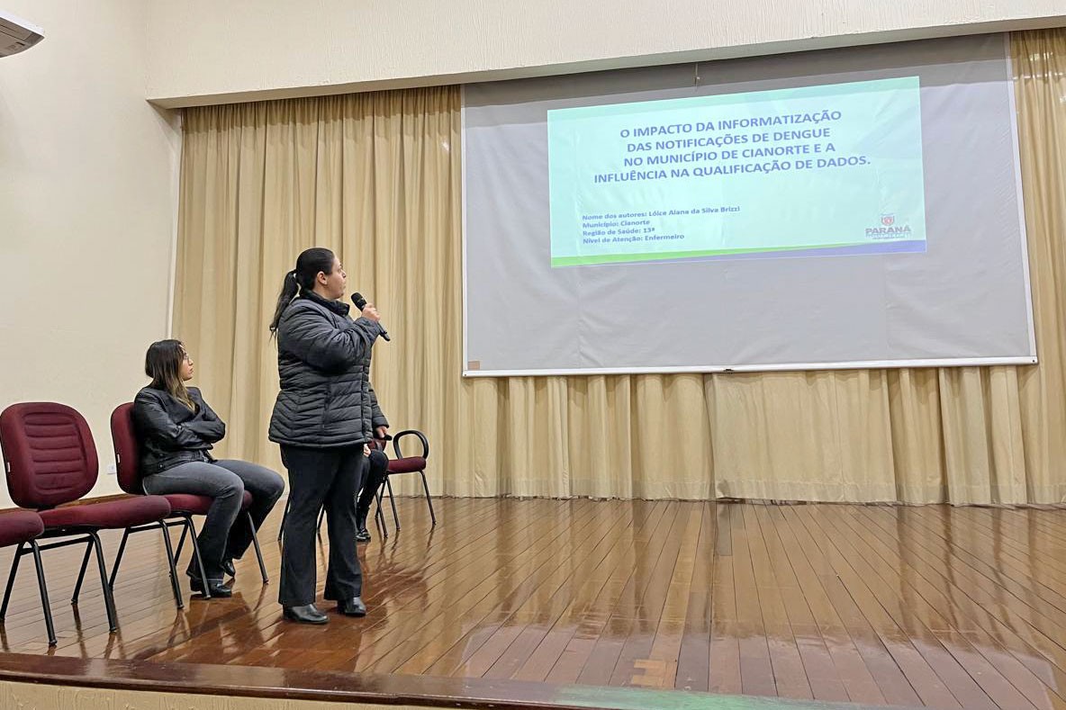 Na Mesa III “Olhar Vigilante voltado à Qualificação do Cuidado”, a supervisora da Vigilância Epidemiológica, Tania Mara de Almeida, falou sobre “O Impacto da Informatização das Notificações de Dengue no Município de Cianorte e a Influência na Qualificação de Dados”, um trabalho desenvolvido pela equipe da Unidade Básica de Saúde (UBS) do Cianortinho, coordenado pela enfermeira Lóice Alana Da Silva Brizzi.