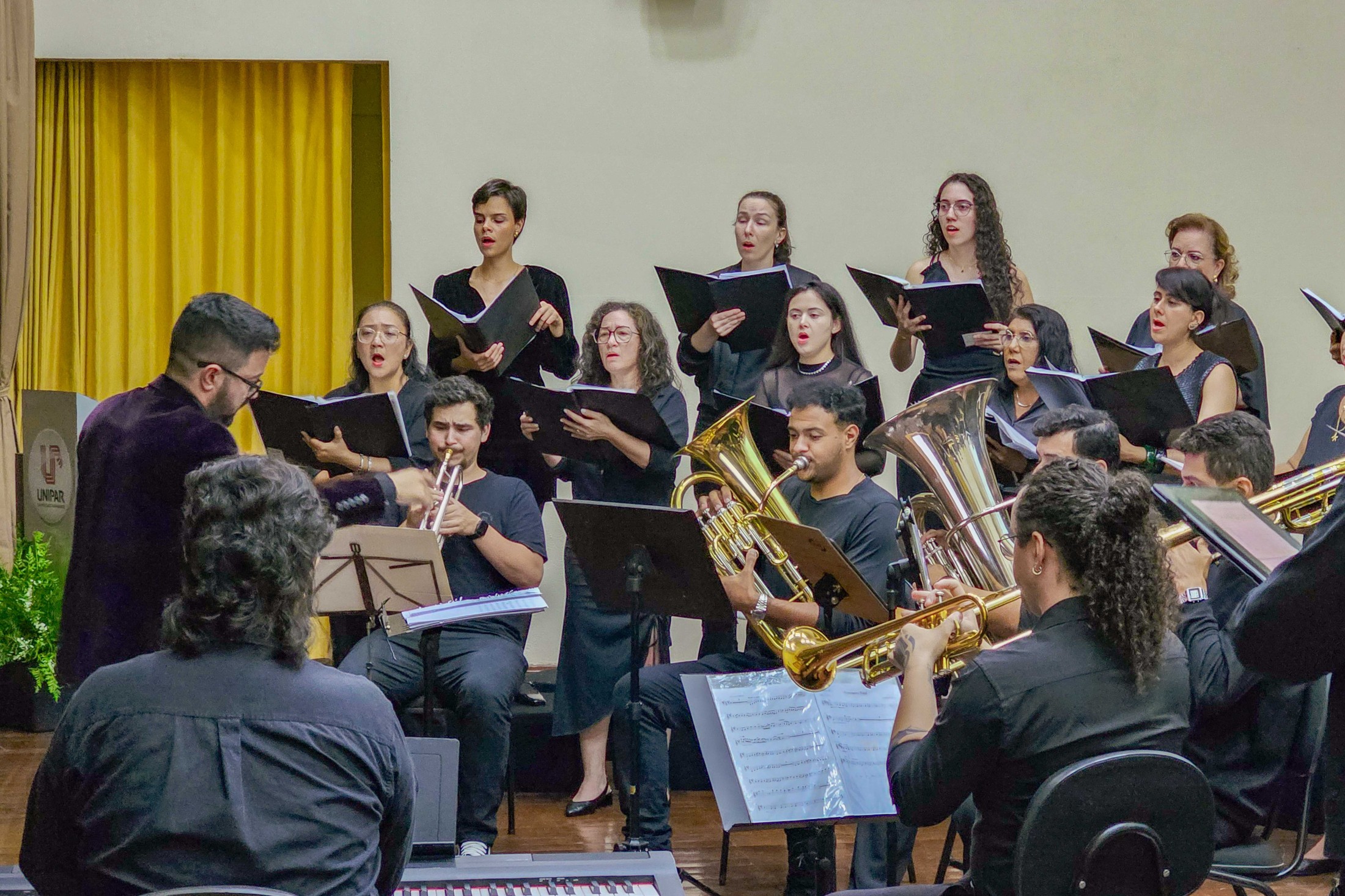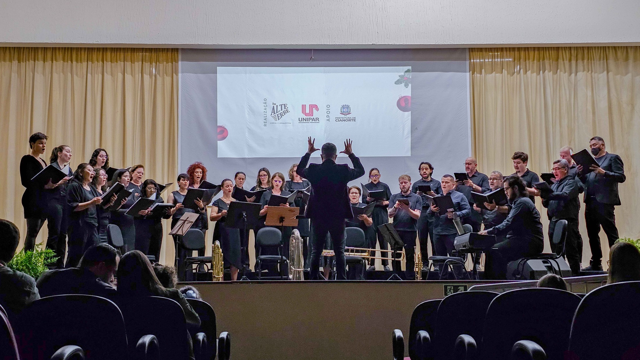 Na última sexta-feira (12), o espírito natalino tomou conta do Teatro Cândido Garcia, no campus da Unipar em Cianorte. O local foi o cenário para o Coral Das Alte Erbe, que realizou o espetáculo “Especial de Natal”, uma iniciativa do grupo e da Universidade, com o apoio da Prefeitura. A apresentação, com entrada gratuita, foi um dos pontos altos da programação “Encantos de Natal”.