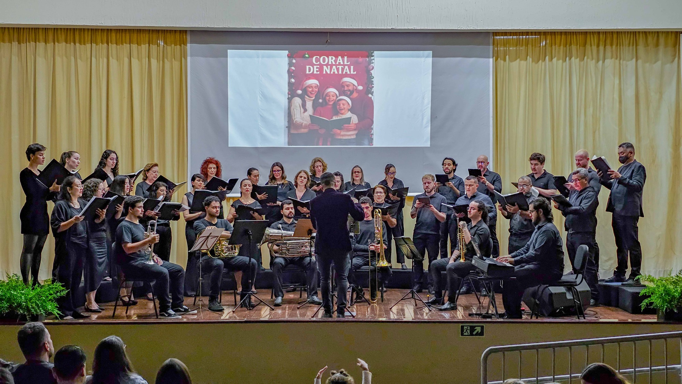 A recepção ficou por conta do diretor do campus, professor Bruno Guilherme de Castro Oliveira. Na sequência, sob a batuta do talentoso maestro chileno, Nicolás González Martínez, o Coral Das Alte Erbe apresentou um repertório especial, proporcionando ao público uma noite de intensa emoção e musicalidade refinada. As harmonias cuidadosamente selecionadas buscaram evocar a beleza, a delicadeza e, sobretudo, o espírito fraterno que marca o período natalino, resultando em uma apresentação de profunda sensibilidade artística.