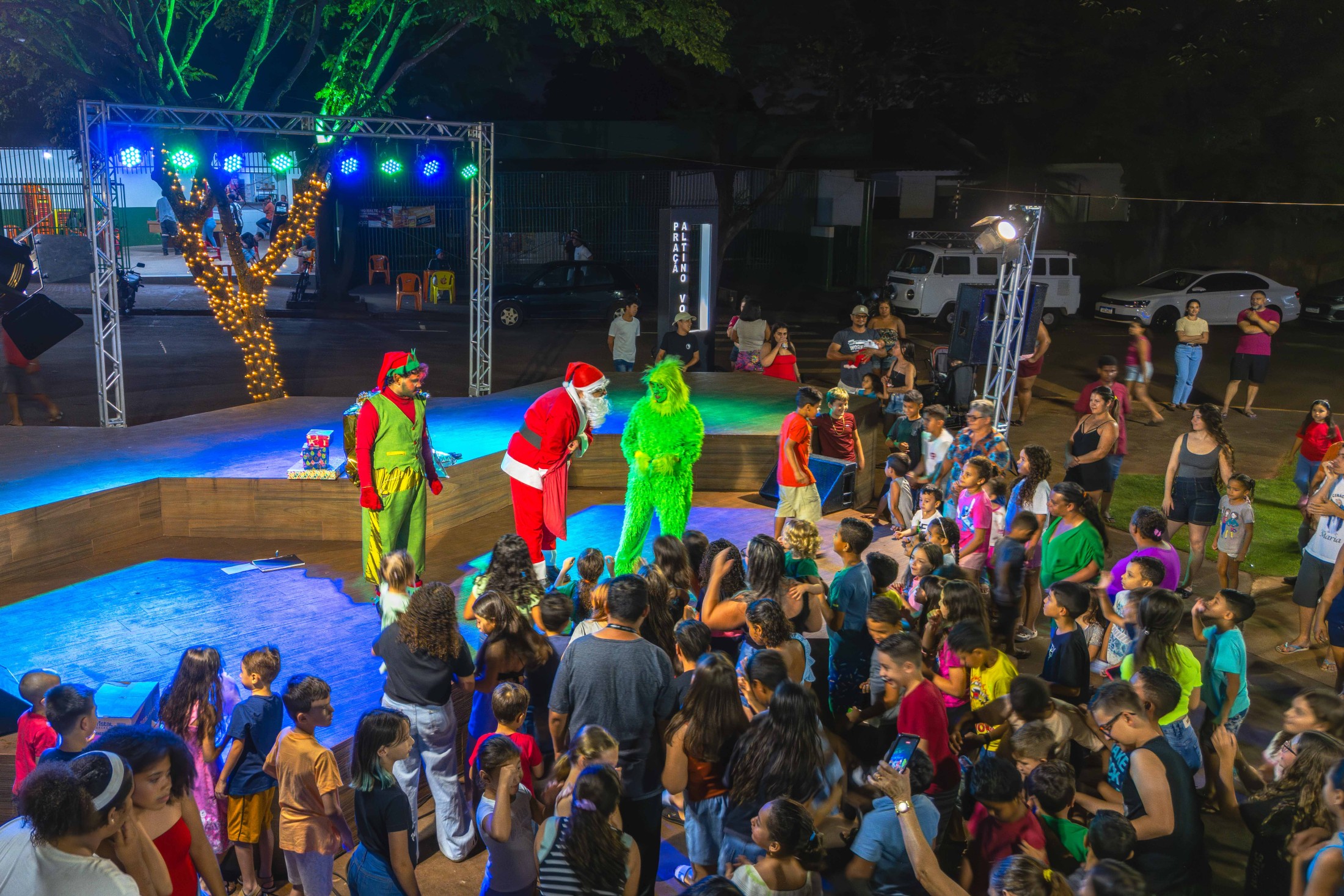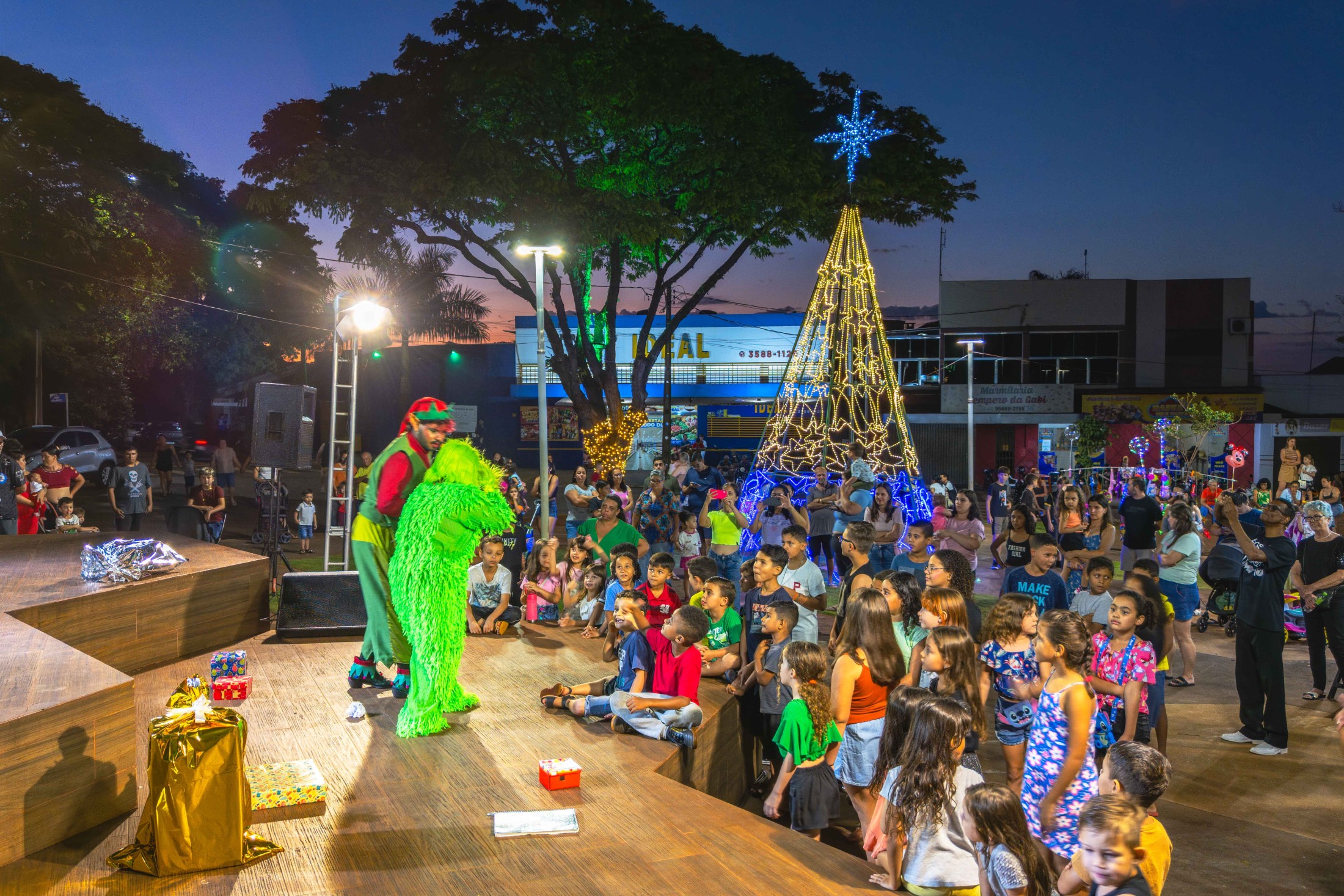 Já o distrito de São Lourenço recebeu a caravana natalina na terça-feira (16). A Praça 7 de Setembro tornou-se o ponto de encontro para os moradores assistirem à releitura do clássico “Pinóquio”, trazida pela CIA de Teatro Eskéte. Além das atrações profissionais, o evento valorizou os talentos da casa. Alunos dos Centros Municipais de Educação Infantil (CMEIs) Criança Esperança e Monteiro Lobato subiram ao palco e emocionaram o público com apresentações preparadas especialmente para a ocasião.