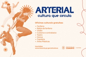 As inscrições são on-line, com acesso pelo site do Município, na página da Secretaria Municipal de Cultura (www.cianorte.pr.gov.br/cultura), clicando na opção “Projeto Arterial”. As vagas são limitadas e serão preenchidas por ordem de cadastro. Os inscritos devem aguardar o contato da Prefeitura para confirmar a matrícula.