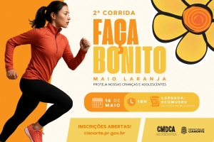 A Prefeitura de Cianorte, por meio da Secretaria Municipal para Mulheres, Crianças, Adolescentes e Pessoas Idosas, em parceria com o Conselho Municipal dos Direitos da Criança e do Adolescente (CMDCA), abriu as inscrições para a 2ª Corrida Faça Bonito. O evento esportivo é uma das principais ações do Maio Laranja no município, campanha nacional dedicada à conscientização e ao combate ao abuso e à exploração sexual de crianças e adolescentes.