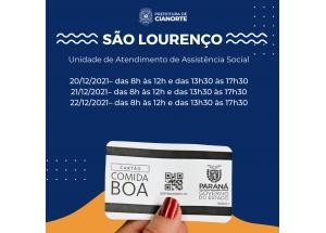 Os beneficiários que não retirarem o cartão nos dias acima, poderão procurar o CRAS mais próximo de sua residência a partir do dia 03 de janeiro de 2022, no horário de atendimento dos equipamentos.