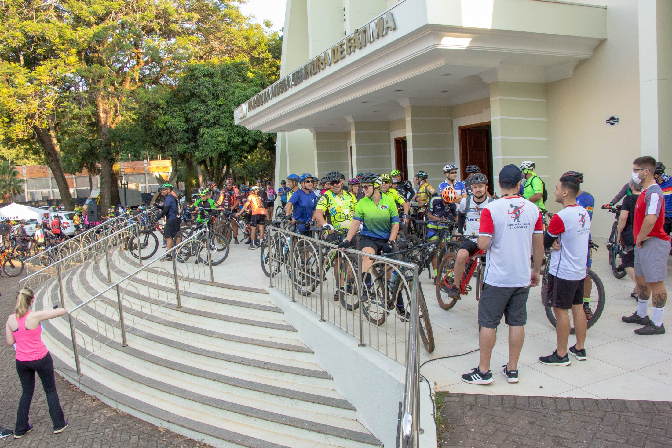 Mais de 300 pessoas participaram do passeio, que faz parte do Projeto Esporte de Aventura e Natureza, da Secretaria Municipal de Esporte e Lazer (SMEL), e contou com o apoio da Coordenadoria de Turismo, Santuário Eucarístico Diocesano, Associação do Deficiente Físico de Cianorte (ADFIC), Unipar, Fundhospar e Diretran. O evento, não competitivo, voltado para contemplação do turismo religioso, também teve caráter solidário: com inscrição gratuita, mediante a doação de alimentos não perecíveis, beneficiou a ADFIC com cerca de 400 kg arrecadados.