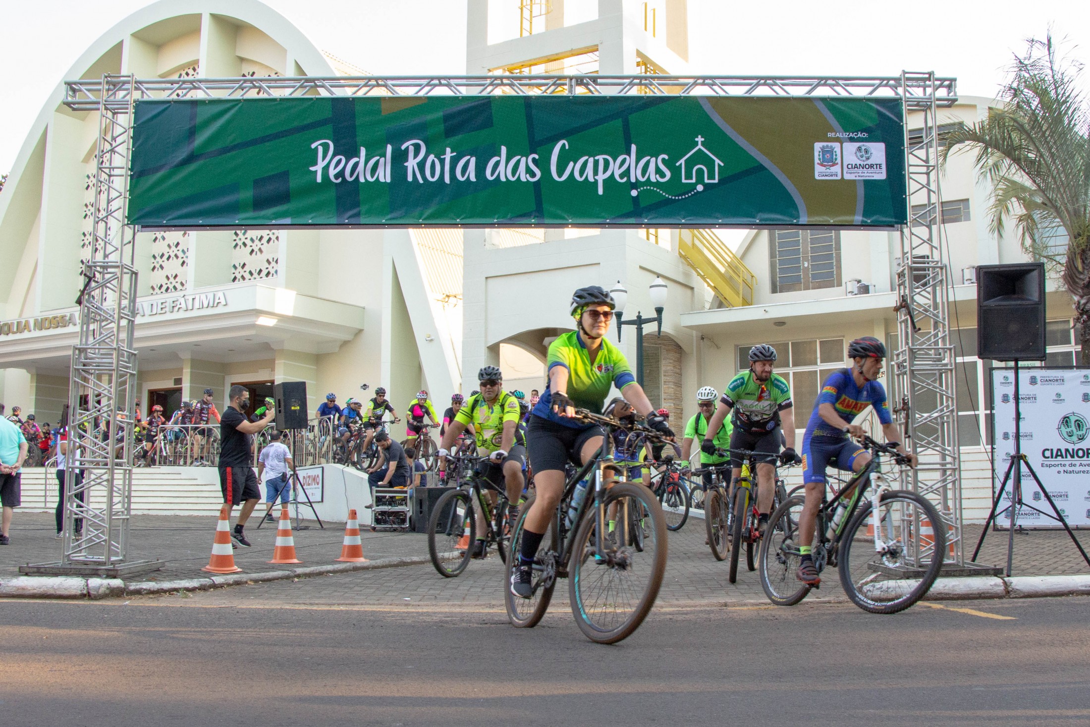 Domingo (20) foi dia de aventura e solidariedade na Capital do Vestuário. Logo pela manhã, a partir das 7h30, o 1º Pedal Rota das Capelas movimentou os cianortenses e visitantes em um trajeto de 35 km, por vias urbanas e rurais, com saída e retorno do Santuário Eucarístico Diocesano (Igreja Matriz), passando pelas capelas de Nossa Senhora de Lourdes, São Luiz Gonzaga, Gruta da Maria Rezadeira, Nossa Senhora Aparecida (Vidigal), Nossa Senhora das Graças e São Francisco de Assis.