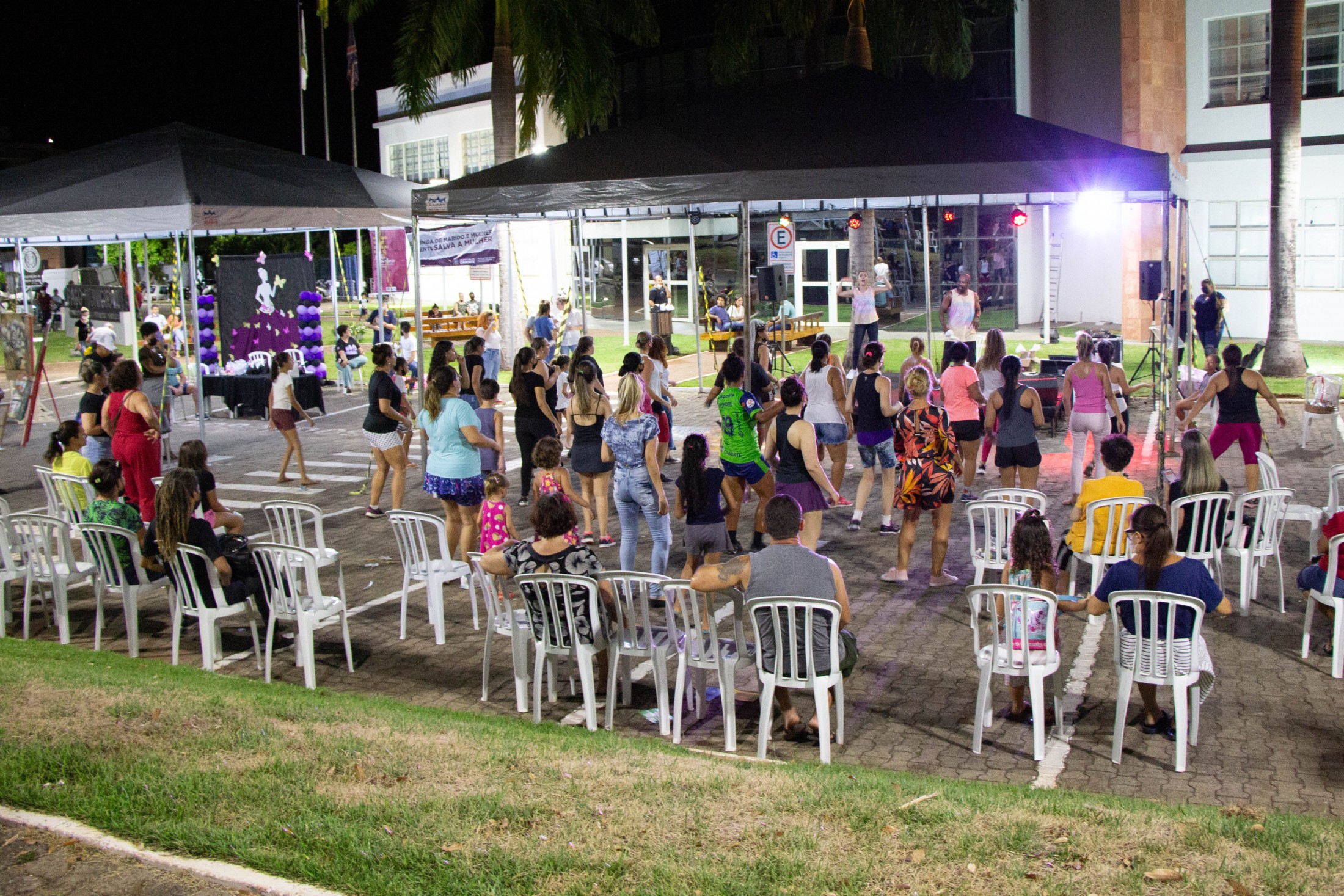 O Dia Internacional da Mulher, celebrado na última terça-feira (08), contou, pela primeira vez, em Cianorte, com uma comemoração especial em frente ao Paço Municipal. Do final da tarde até a noite, no “Happy Hour Delas”, o público feminino pôde acompanhar desfiles e apresentações musicais, artísticas e teatrais; participar de sorteios de brindes; levar mudas de árvores nativas para casa; aproveitar serviços estéticos gratuitos; aprender sobre compostagem e tipos de violência doméstica; tirar dúvidas sobre questões jurídicas; dançar; se alongar e ainda aproveitar as barracas que comercializaram itens artesanais, comidas e bebidas.