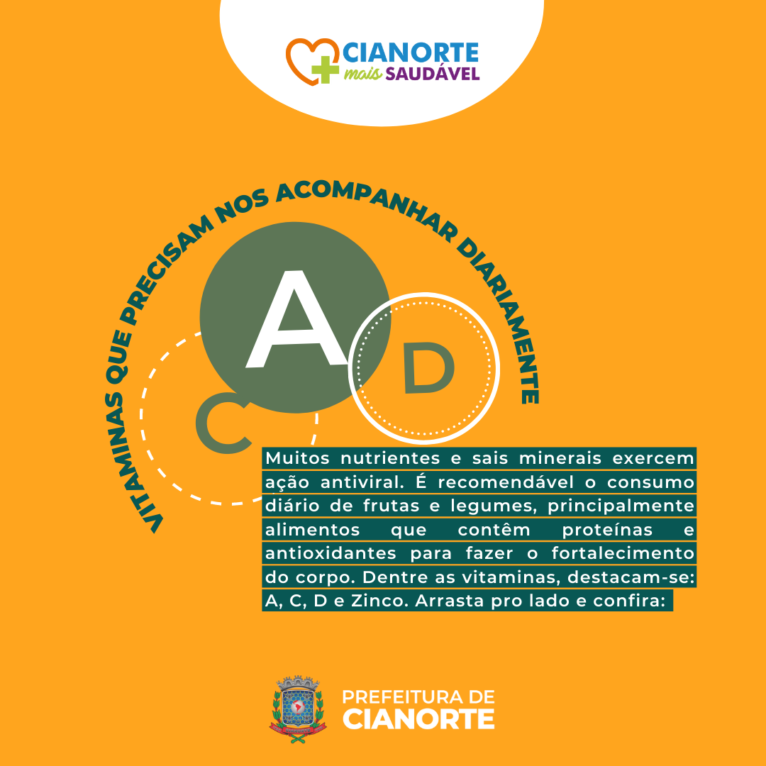 Com publicação mensal, a iniciativa do Plano Municipal de Segurança Alimentar e Nutricional que instrui a população, o Projeto Cianorte Mais Saudável, apresenta em março alimentos que fortalecem a imunidade. Em tempos de Coronavírus, manter a saúde em dia e a proteção em alta é essencial para o combate desta e de outras doenças.