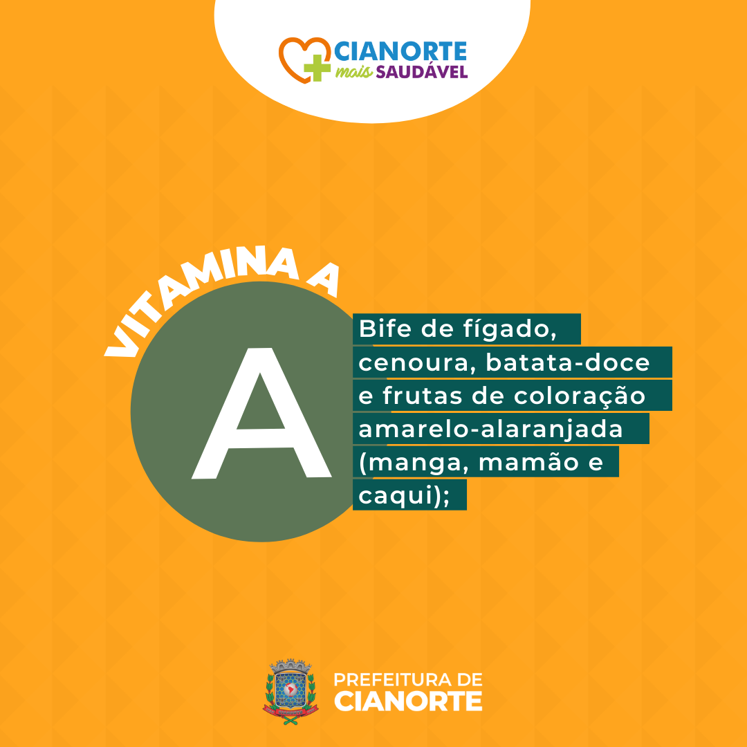 Vitamina A: bife de fígado, cenoura, batata-doce e frutas de coloração amarelo-alaranjada (manga, mamão e caqui);