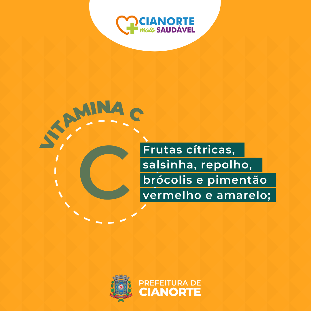 Vitamina C: frutas cítricas, salsinha, repolho, brócolis e pimentão vermelho e amarelo;