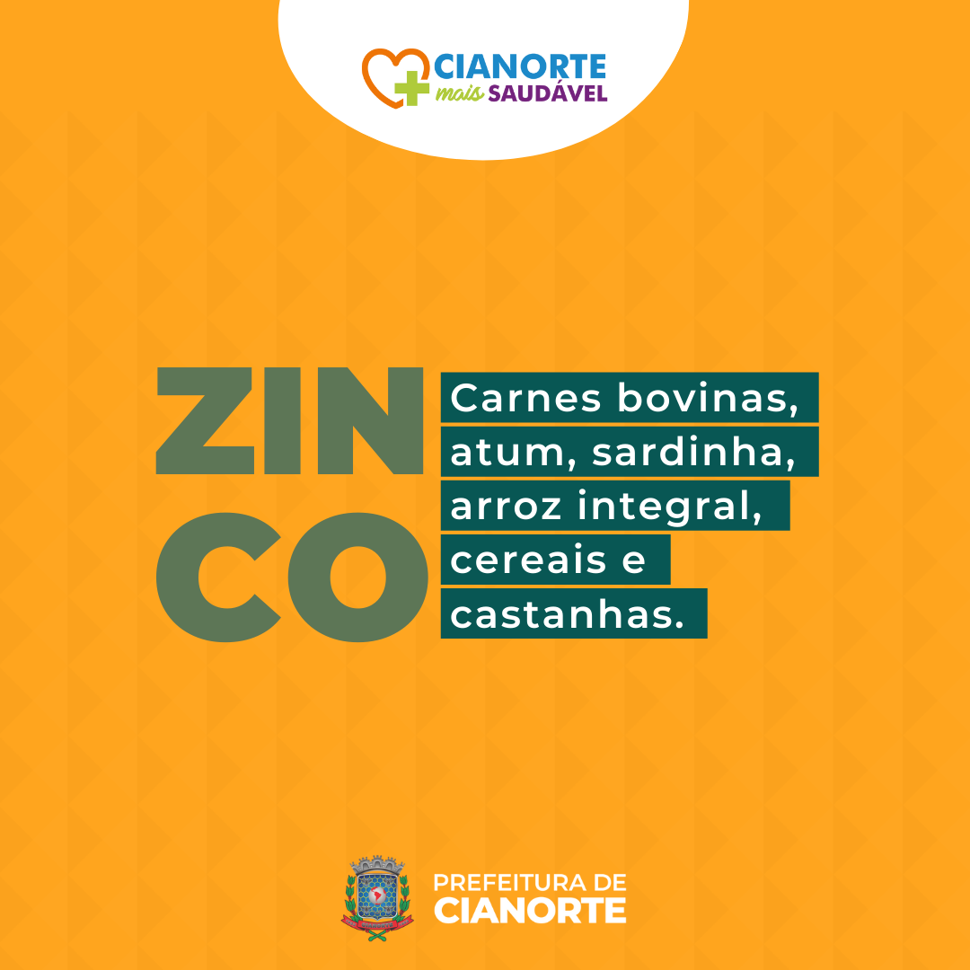 Zinco: carnes bovinas, atum, sardinha, arroz integral, cereais e castanhas.