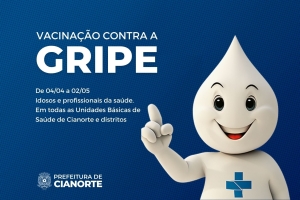 A Campanha Nacional de Vacinação contra a Influenza teve início nesta segunda-feira (04). Em Cianorte, assim como nos distritos de São Lourenço e Vidigal, a imunização será realizada em todas as Unidades Básicas de Saúde (UBSs), de segunda a sexta-feira, no horário de expediente, das 7h30 às 11h30 e das 13h às 17h.