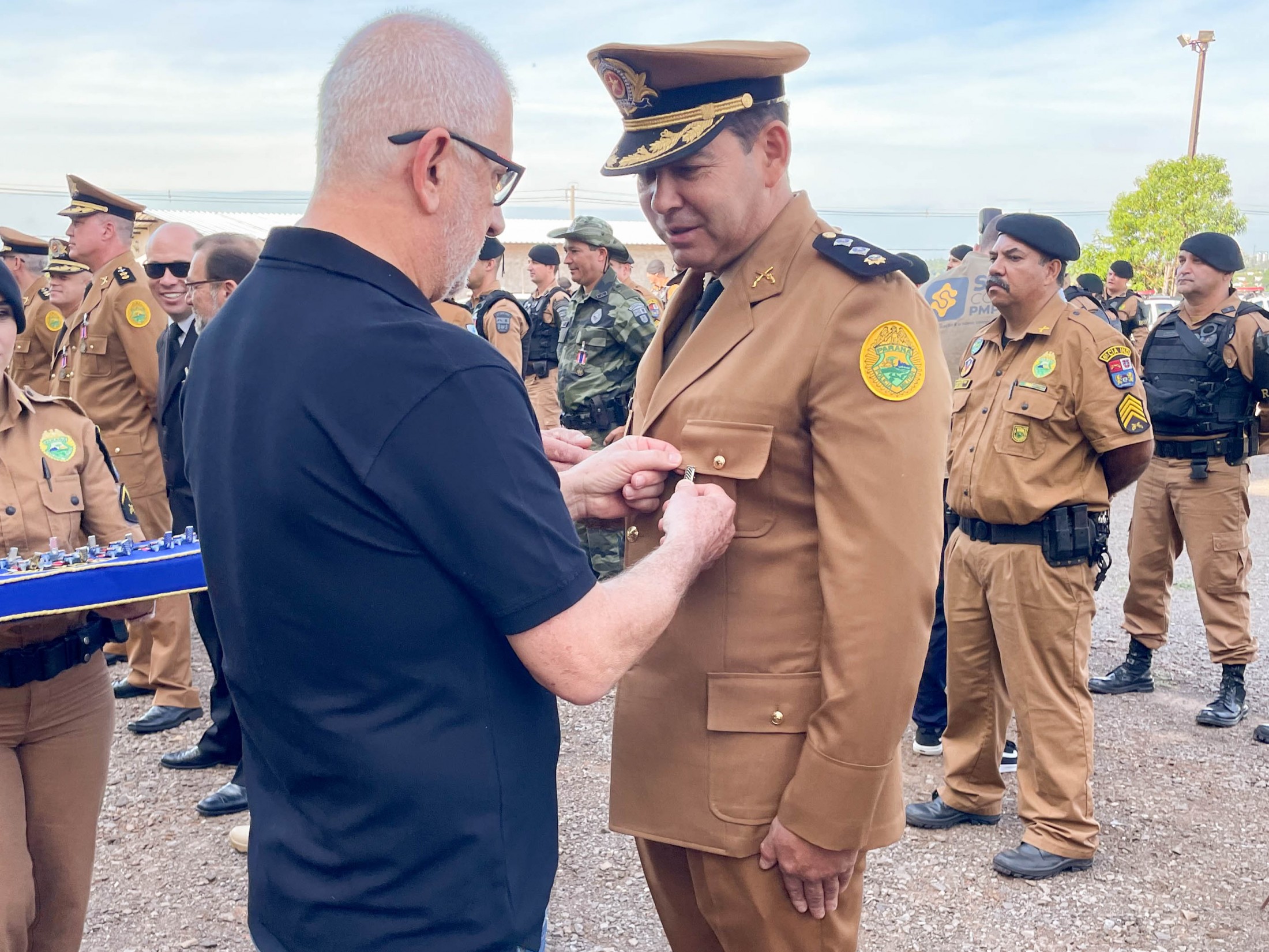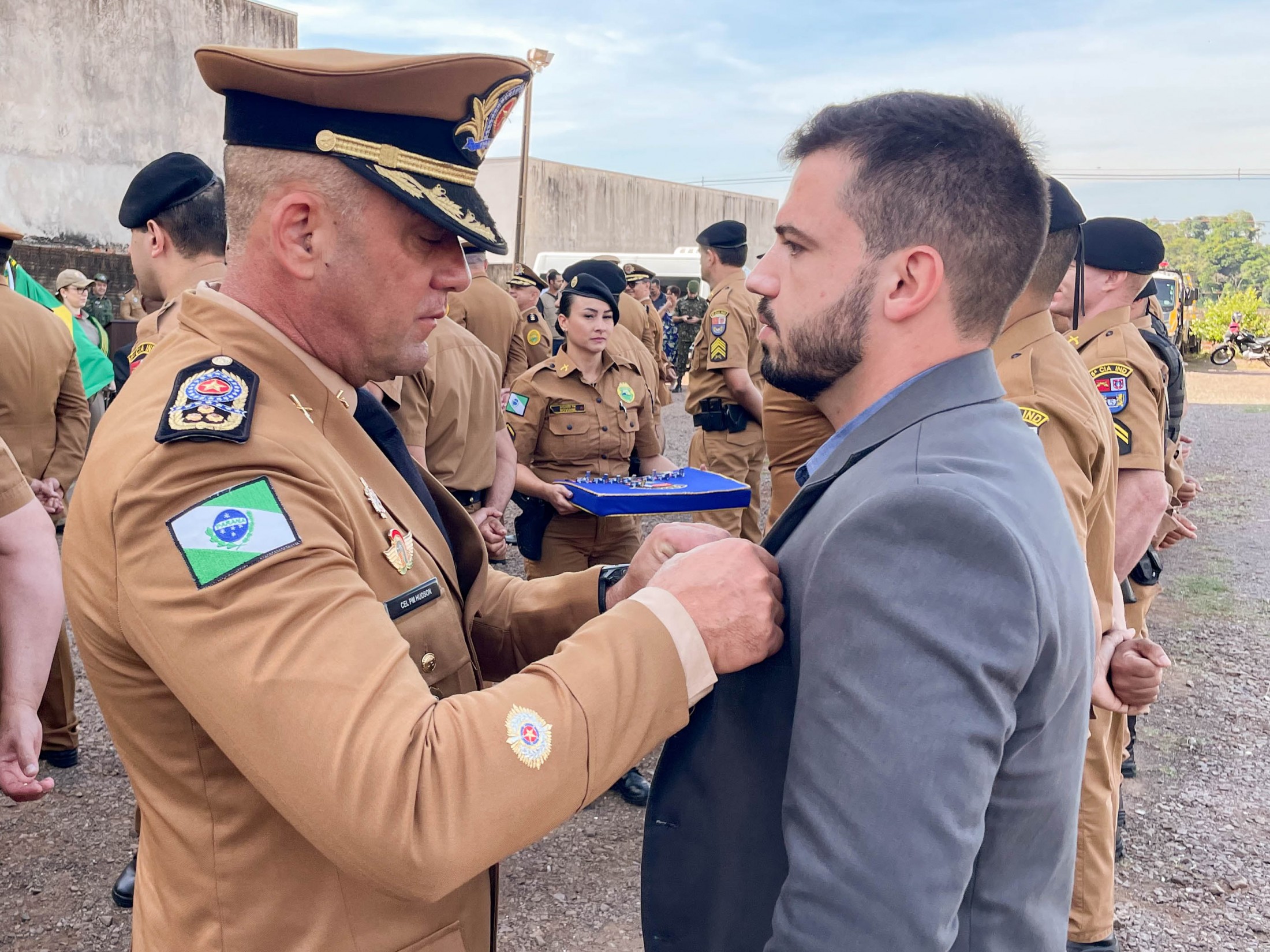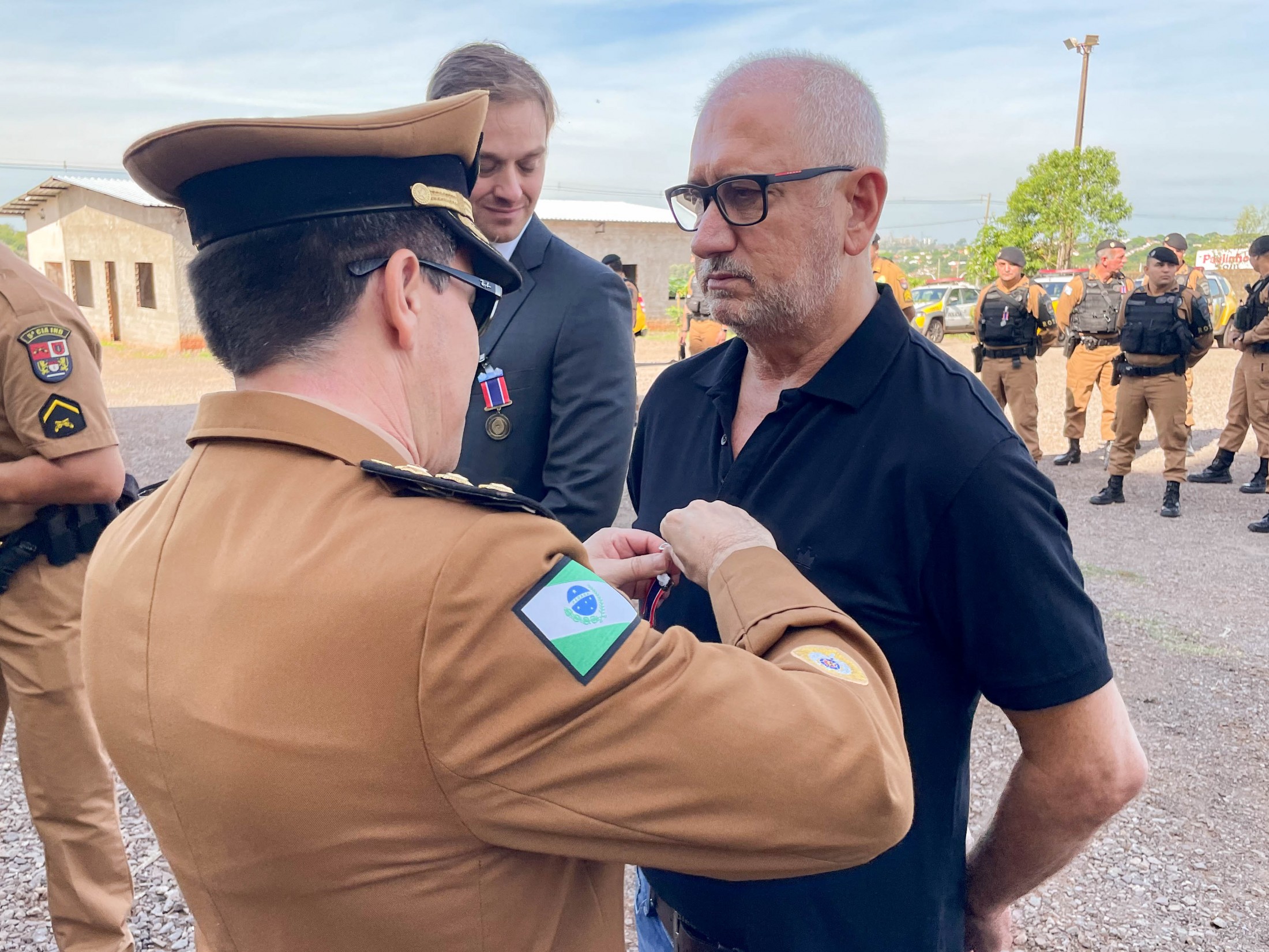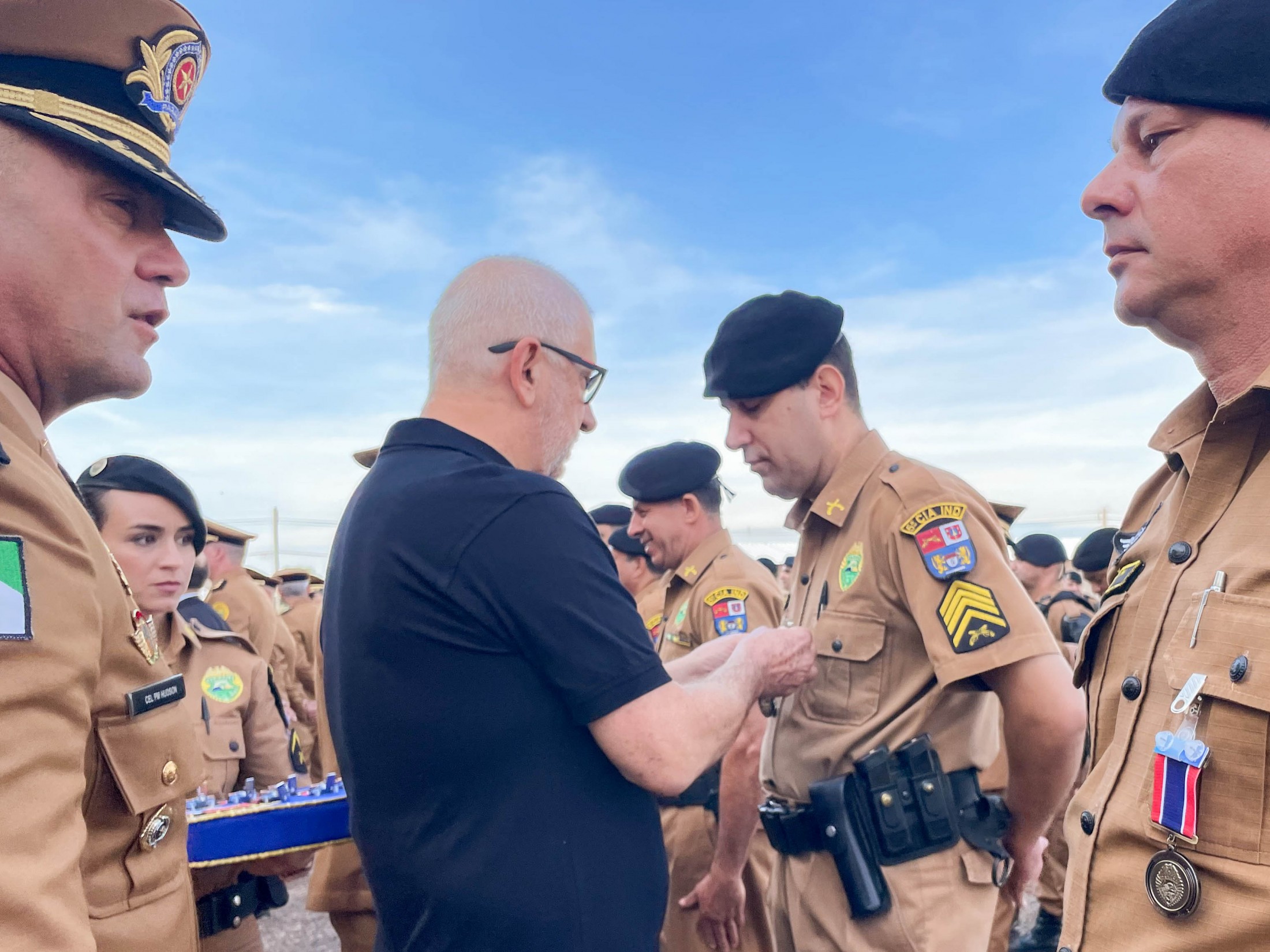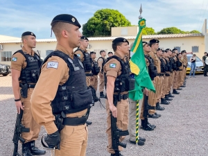 Na oportunidade, o prefeito Marco Franzato, acompanhado pelo comandante-geral da Polícia Militar do Paraná, Coronel Hudson Leôncio Teixeira, e pelo secretário municipal de Defesa Social, Tenente-Coronel Elias Ariel de Souza, entre outras autoridades, foram homenageados com a medalha “Tenente-Coronel Joel Pinheiro”. A honraria foi criada para condecorar militares, civis e entidades públicas ou privadas pelos relevantes serviços prestados à 5ª CIPM. O prefeito aproveitou o momento para reforçar o pedido para transformar a unidade em batalhão.