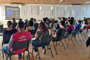 Na tarde dessa quarta-feira (27), os profissionais que compõem a Rede de Assistência Social contaram com uma capacitação sobre povos e questões indígenas, ministrada por Gilza Ferreira de Felipe Pereira, assistente social, mestre e doutoranda em Serviço Social e Política Social (UEL), pertencente à etnia Kaingang, da terra indígena São Jerônimo.