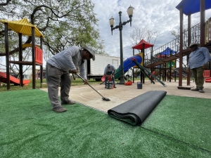 O Parque Infantil Isabelle Magalhães Pina, localizado na Praça Maisa Vilela de Andrade in Baldino (próximo à Feira do Produtor), está recebendo melhorias. A Prefeitura de Cianorte, por meio da Secretaria de Obras e Serviços Públicos, está promovendo, desde a segunda-feira (25), a instalação de 300 m² de grama sintética ao redor de alguns brinquedos. A previsão é de que o trabalho seja concluído até a próxima sexta-feira (06 de maio). Até lá, o parque está interditado para garantir a segurança dos usuários, em especial das crianças, sendo o acesso ao público permitido apenas no sábado (30 de abril) e domingo (1º de maio).