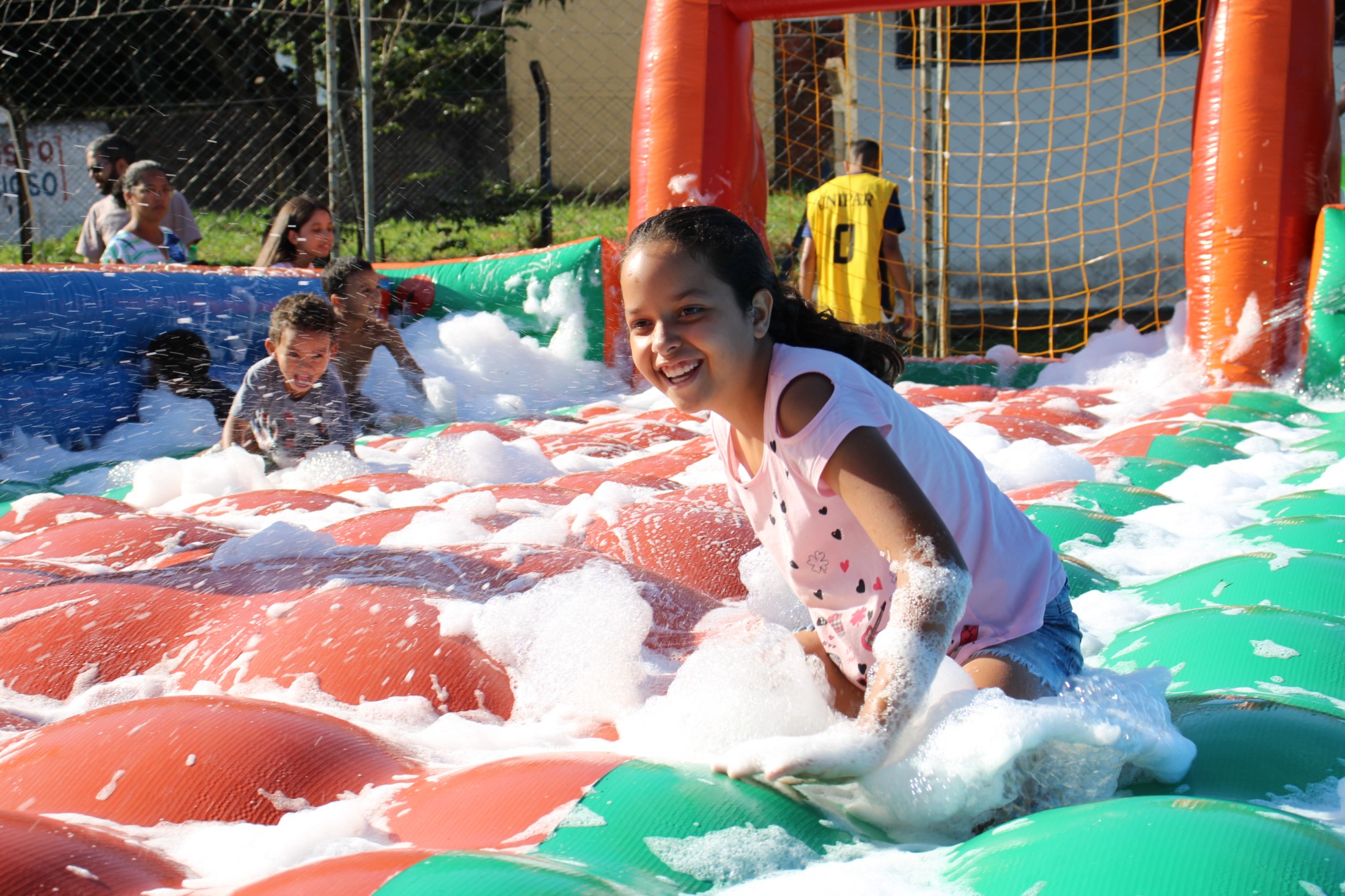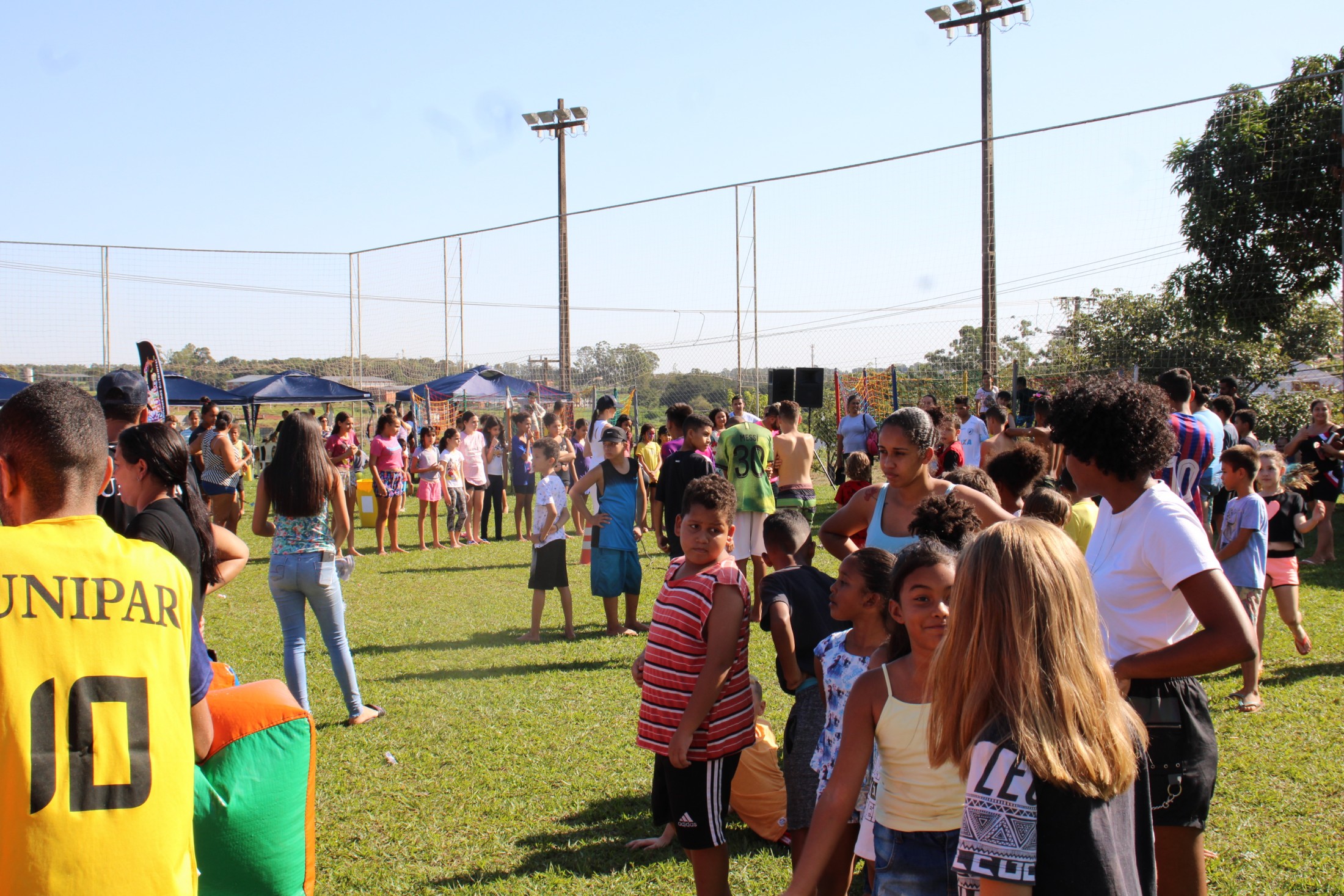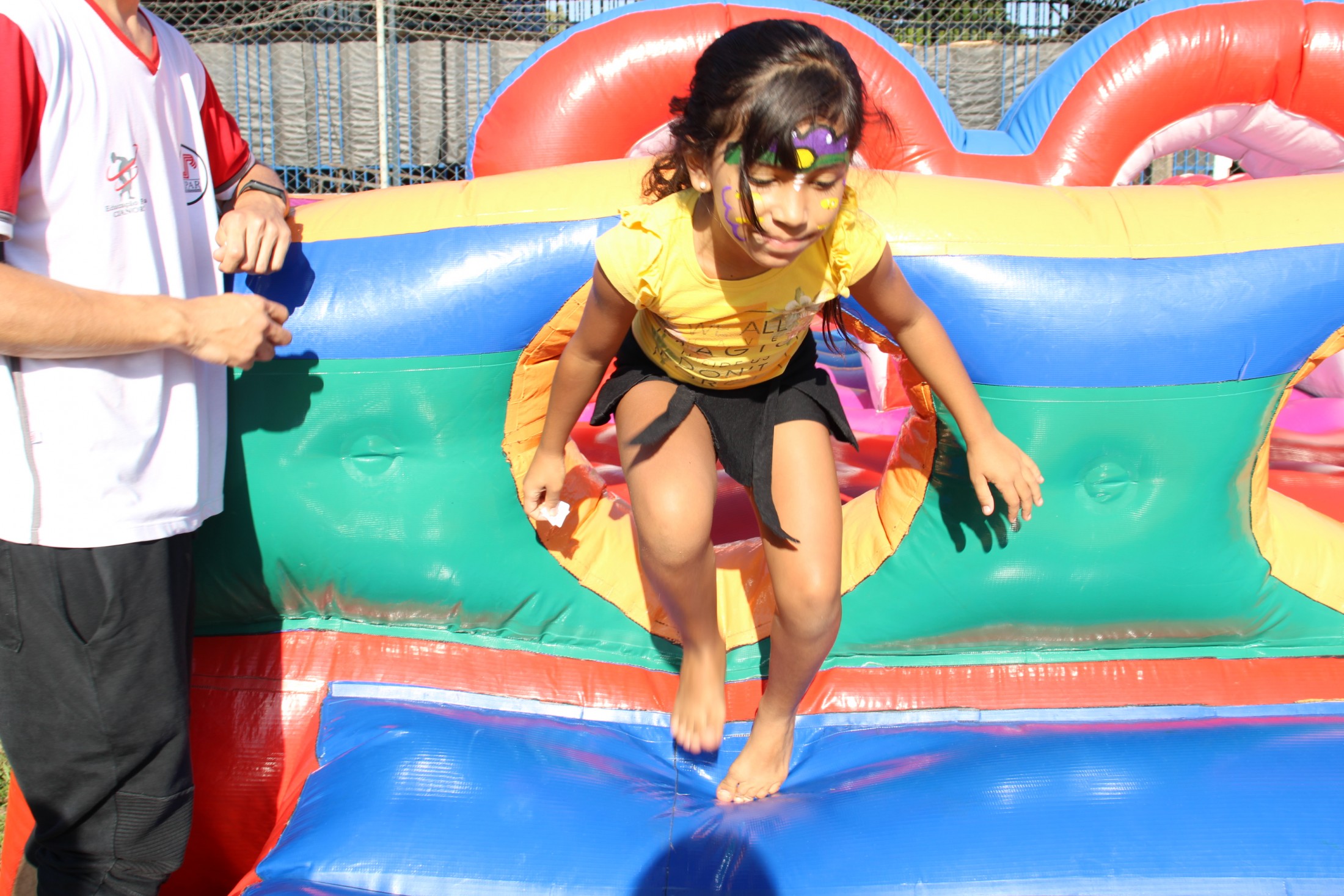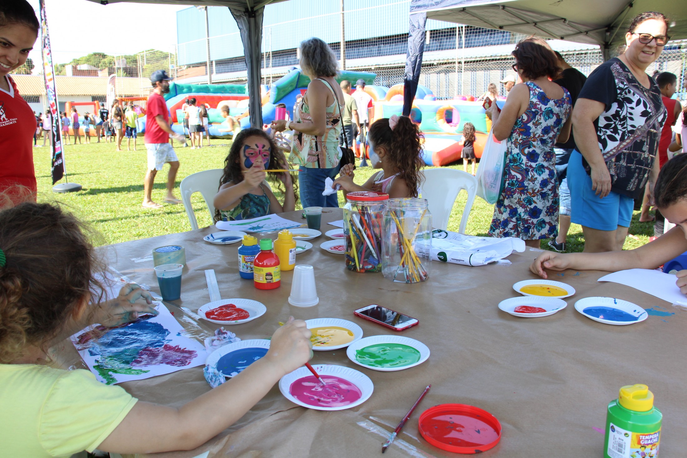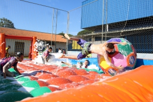 Na tarde do último sábado (30), o projeto da Secretaria Municipal de Esporte e Lazer que leva ações recreativas aos bairros e distritos de Cianorte movimentou as comunidades próximas ao Conjunto Ovídio Luiz Franzoni, na Zona 07. Mais de 300 crianças passaram pela estrutura da Rua de Lazer, montada no campo do ginásio, com brinquedos infláveis, camas elásticas, circuitos de gincana, pintura facial, atividades com tinta, giz de cera, lápis de cor e massinhas de modelar, entre outras. A ocasião distribuiu cerca de três mil doces.