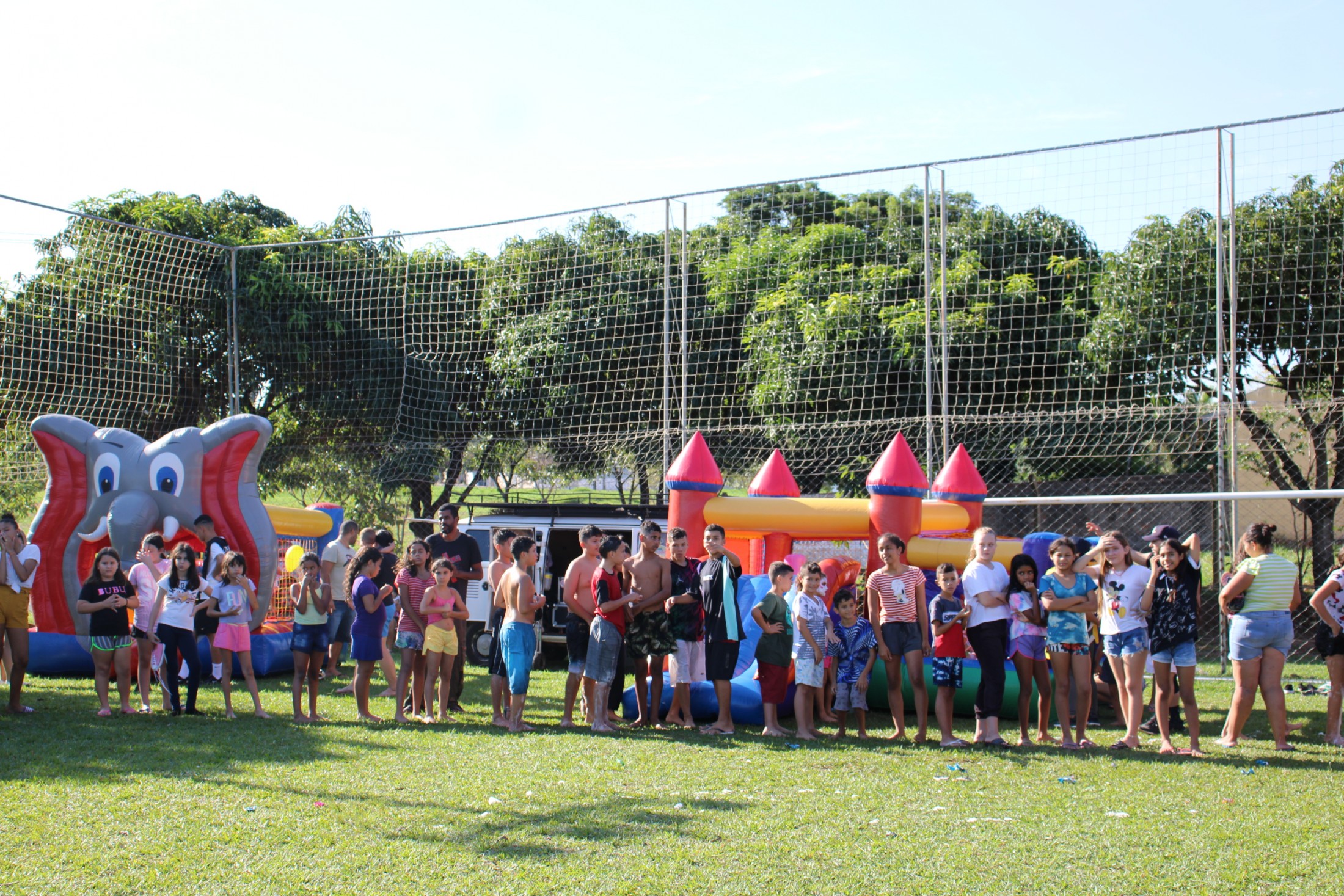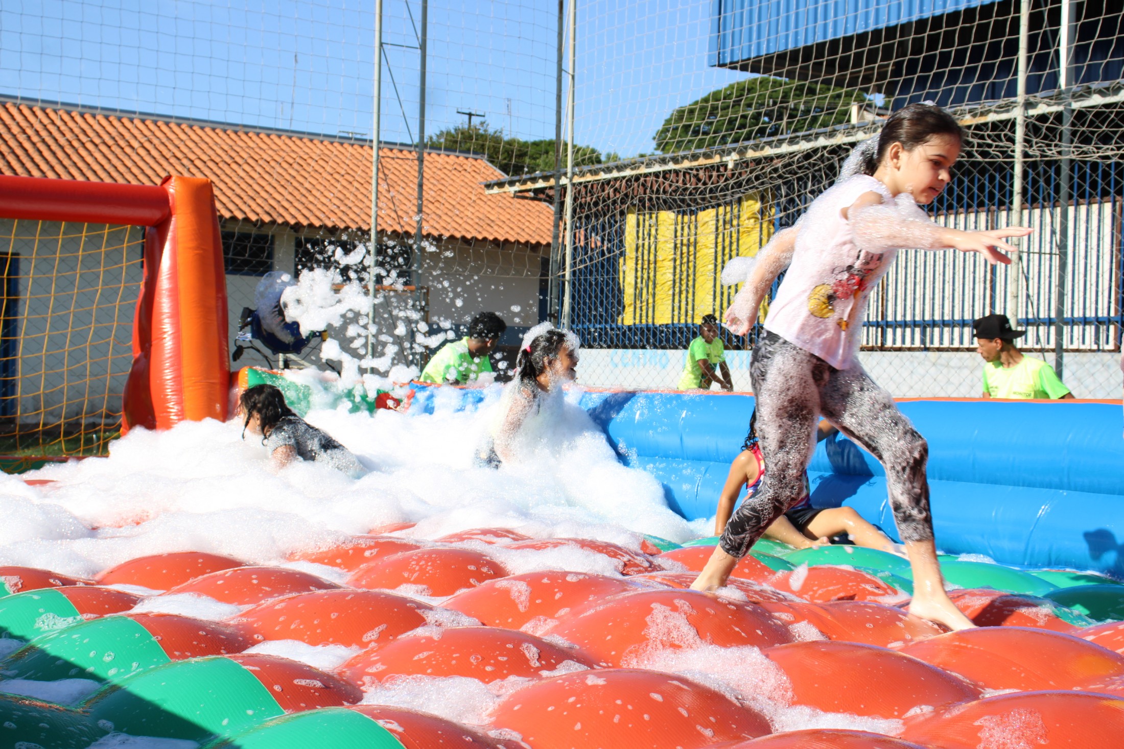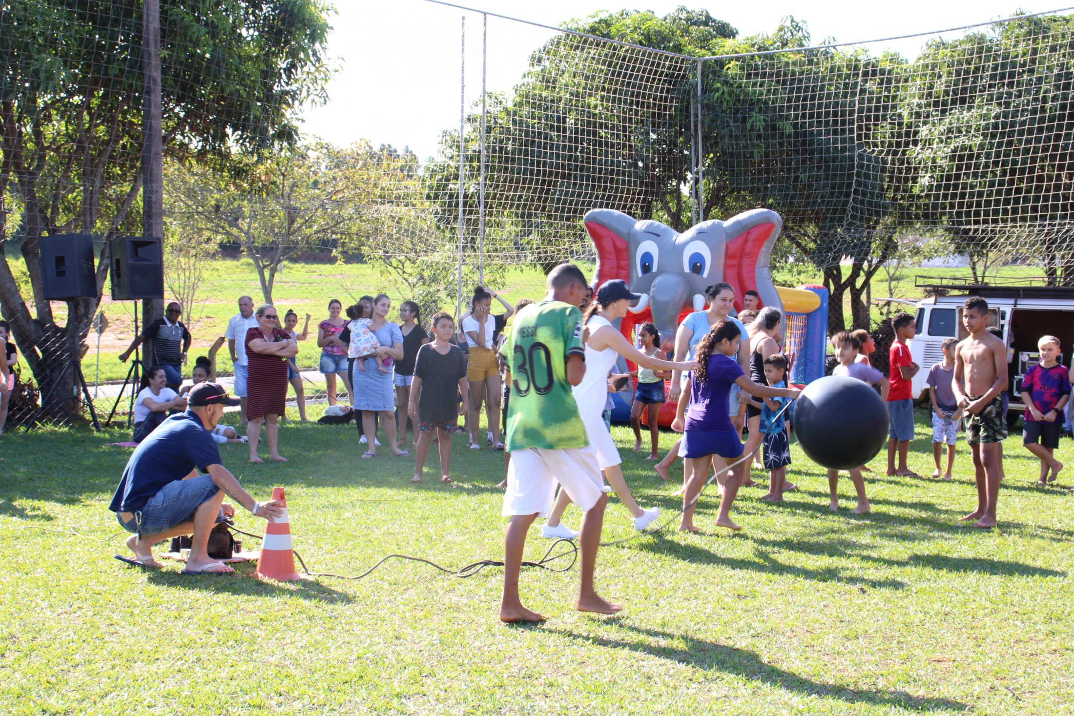 Na tarde do último sábado (30), o projeto da Secretaria Municipal de Esporte e Lazer que leva ações recreativas aos bairros e distritos de Cianorte movimentou as comunidades próximas ao Conjunto Ovídio Luiz Franzoni, na Zona 07. Mais de 300 crianças passaram pela estrutura da Rua de Lazer, montada no campo do ginásio, com brinquedos infláveis, camas elásticas, circuitos de gincana, pintura facial, atividades com tinta, giz de cera, lápis de cor e massinhas de modelar, entre outras. A ocasião distribuiu cerca de três mil doces.