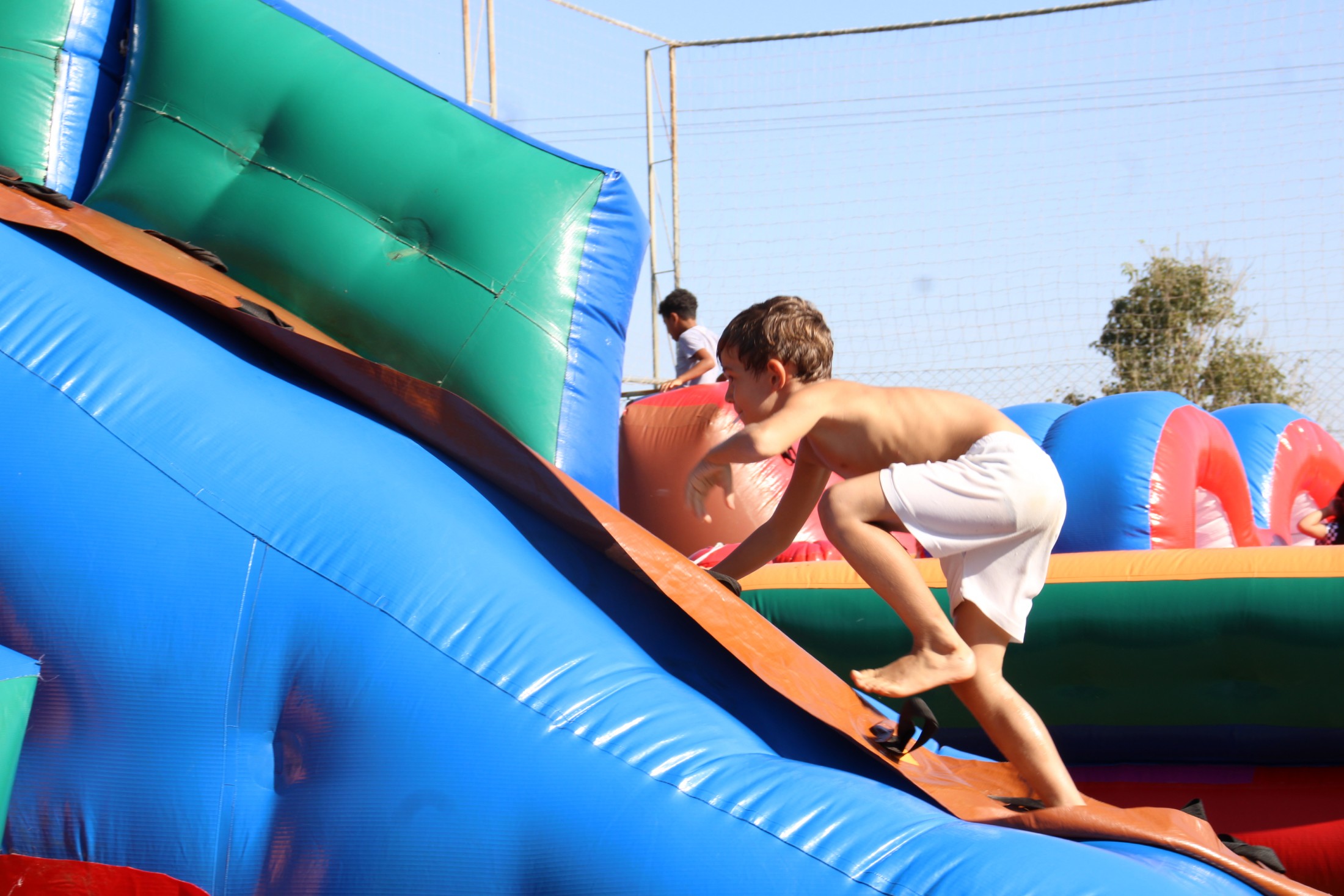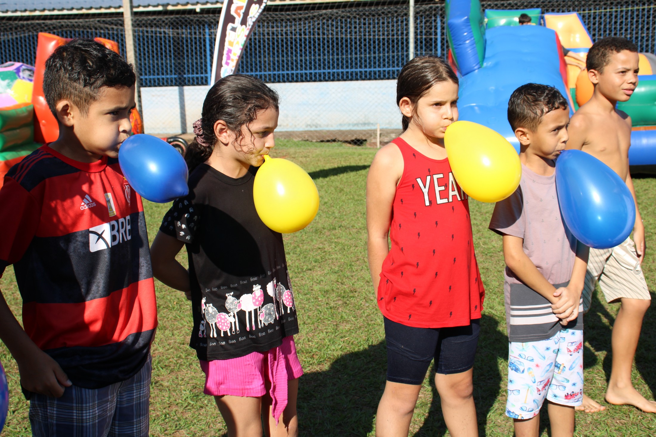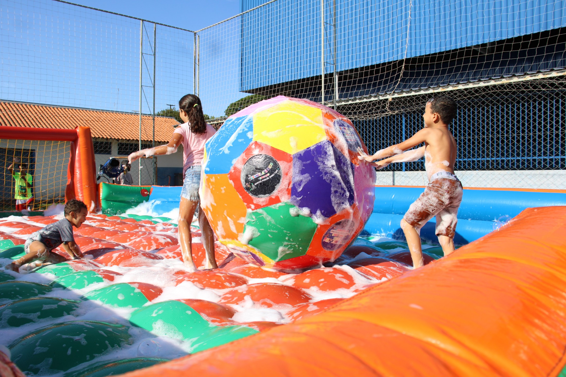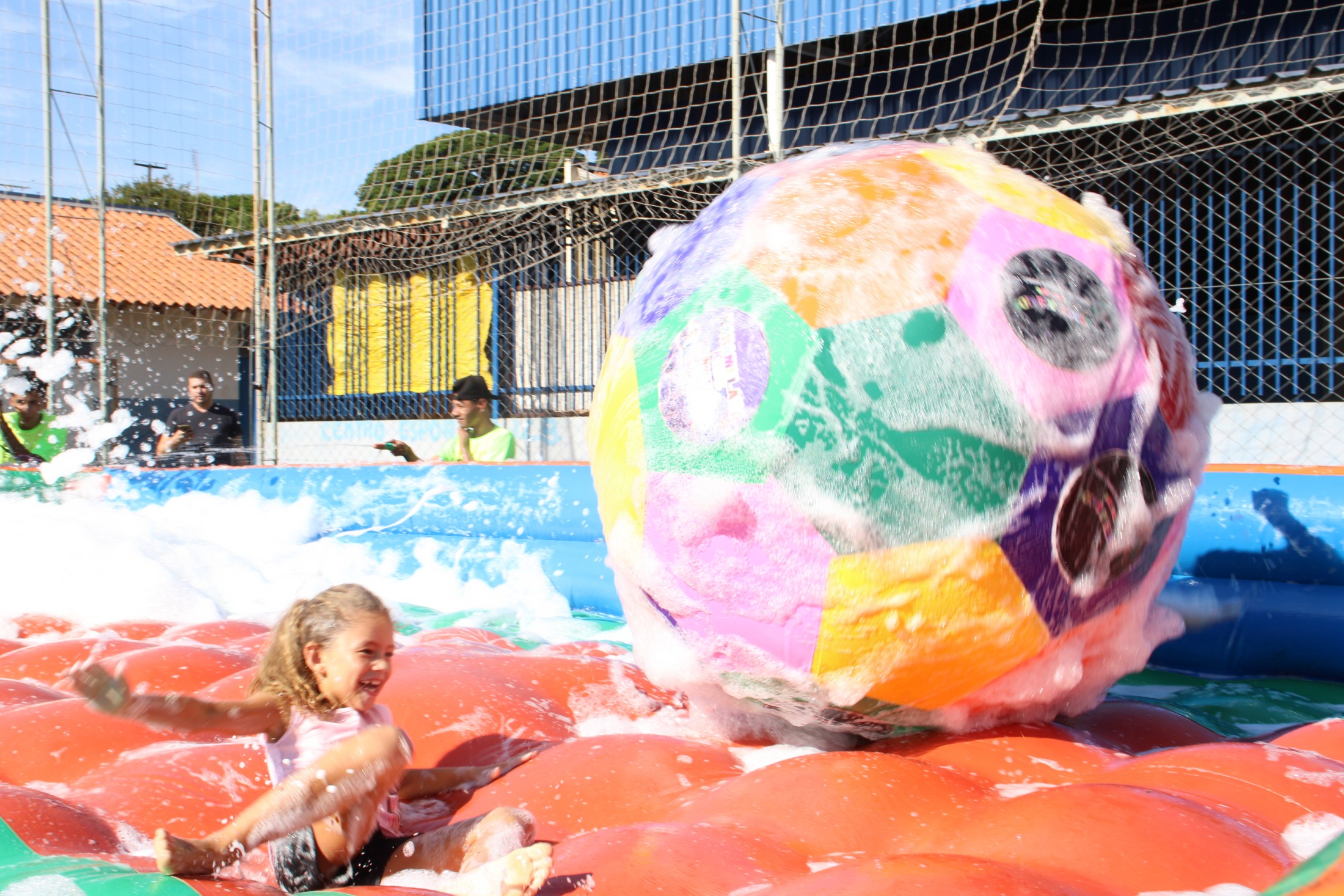 Na tarde do último sábado (30), o projeto da Secretaria Municipal de Esporte e Lazer que leva ações recreativas aos bairros e distritos de Cianorte movimentou as comunidades próximas ao Conjunto Ovídio Luiz Franzoni, na Zona 07. Mais de 300 crianças passaram pela estrutura da Rua de Lazer, montada no campo do ginásio, com brinquedos infláveis, camas elásticas, circuitos de gincana, pintura facial, atividades com tinta, giz de cera, lápis de cor e massinhas de modelar, entre outras. A ocasião distribuiu cerca de três mil doces.