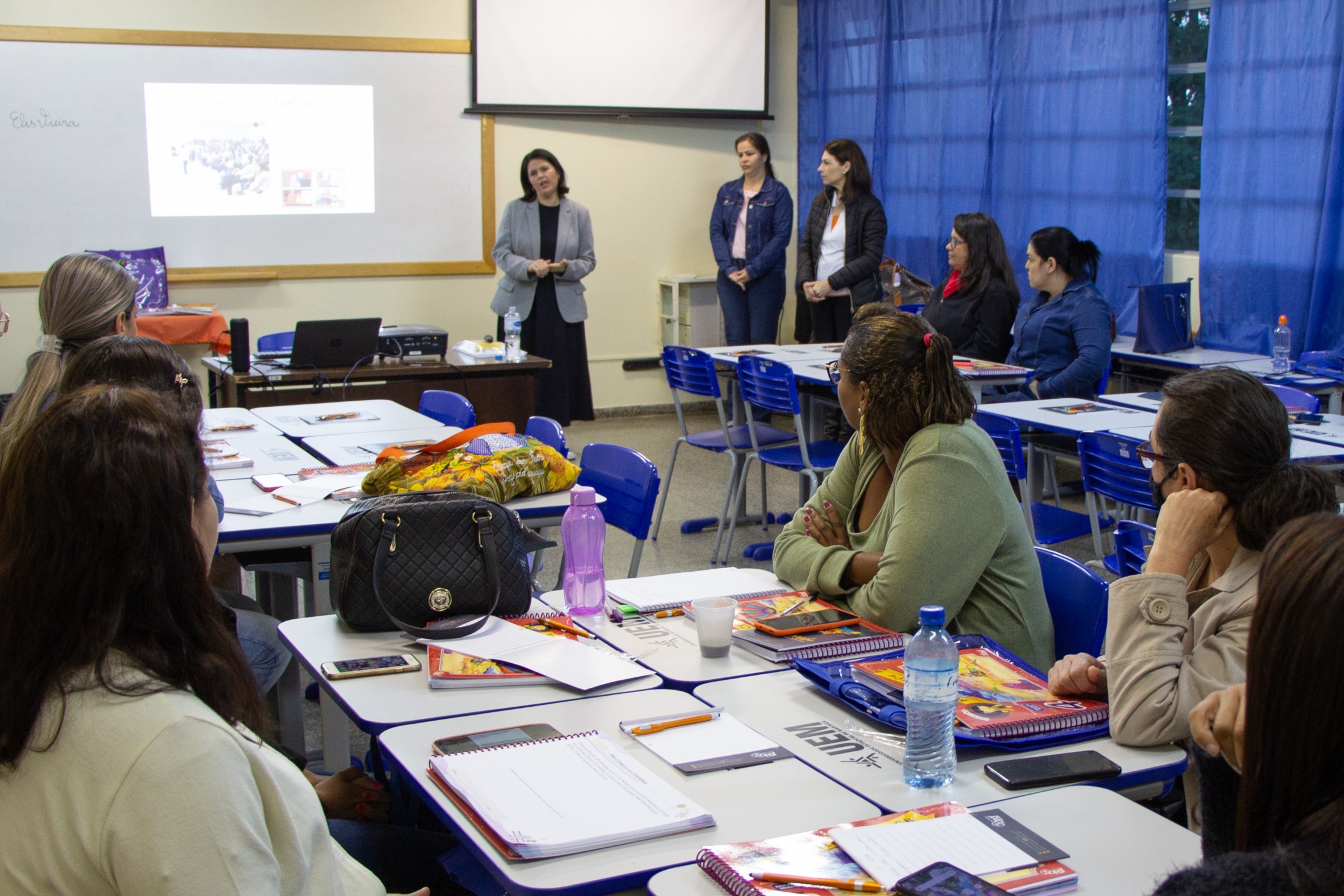 A secretária municipal de Educação, professora Kelly Cristine Werdenberg Rodrigues, acompanhada pela coordenadora educacional e pedagógica da Educação Infantil, Juliana Ouverney Silva, explicou sobre a aquisição. “Esses materiais contribuem de forma significativa no dia a dia de professores e alunos em sala de aula, enriquecendo, ainda mais, o aprendizado por meio da apropriação de práticas educativas adequadas às necessidades das crianças”, comentou. Na oportunidade, os profissionais puderam tirar dúvidas junto à secretária sobre assuntos do cotidiano das escolas.
