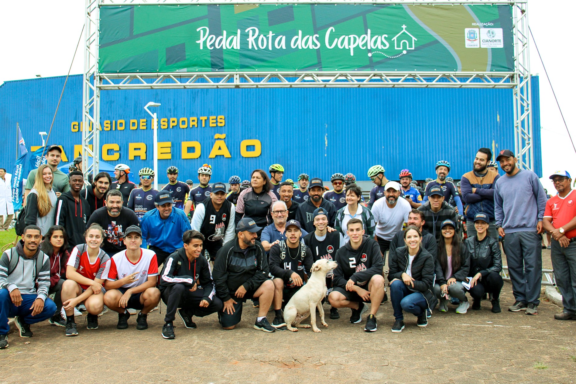 Promovido pela Prefeitura, por meio da Secretaria Municipal de Esporte e Lazer (SMEL), com o Projeto Esporte de Aventura e Natureza, em parceria com a Secretaria de Saúde, Coordenadoria de Turismo, Diretran, Polícia Militar, Fundhospar e Unipar, o 2º Pedal Rota das Capelas reuniu 200 participantes, no último domingo (29). O evento, que une ciclismo e turismo religioso, também integrou a programação do Maio Amarelo, mês voltado à conscientização no trânsito.