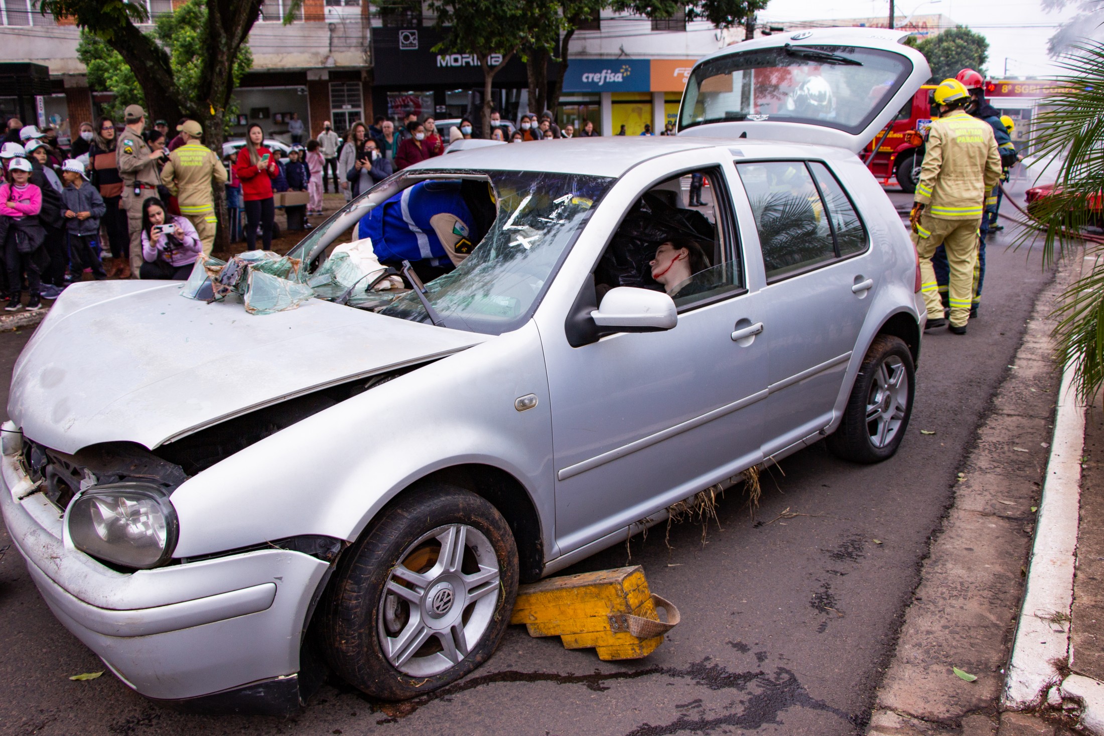 “Nossa intenção é chamar a atenção da população para a importância de se ter uma conduta responsável no trânsito, evitando acidentes, bem como demonstrar como acionar o resgate e como é o trabalho do Corpo de Bombeiros, Samu e Polícia Militar nessas situações. Simulamos um acidente provocado por um veículo que trafegava na contramão pela Avenida Paraná, colidindo contra um carro e uma moto, deixando cinco vítimas feridas, dentre elas, quatro em estado grave”, explicou o 1º Tenente Fabiano, do Corpo de Bombeiros.