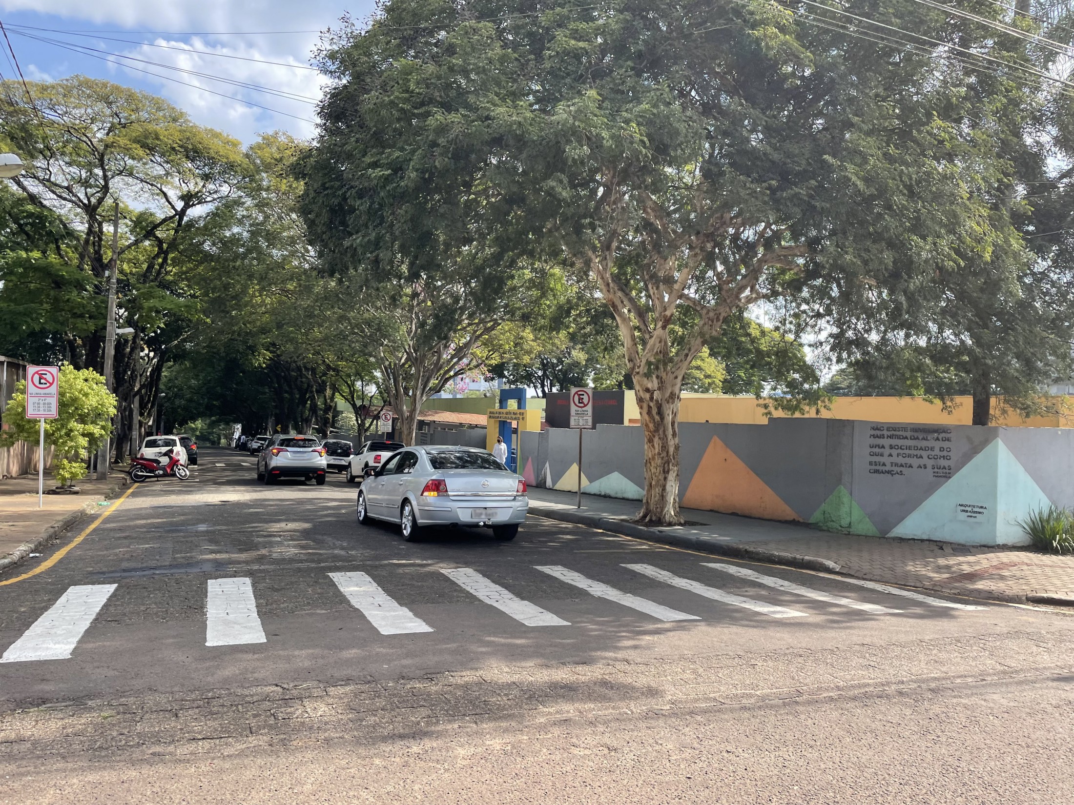 A Rua Dom Pedro I recebeu, na última semana, adequações para a melhoria do tráfego de carros e, principalmente, dos ônibus escolares. Foram retiradas algumas vagas de estacionamento da lateral da via, com o intuito de possibilitar a manobra dos ônibus, que agora conseguem acessar a frente da Escola Municipal Cecília Sato, oferecendo mais segurança aos alunos, que não precisam mais dar volta na quadra para subir ou descer do veículo. Além das adaptações, foram pintadas as esquinas, reforçando a proibição de estacionamento, de acordo com o Código Brasileiro de Trânsito.