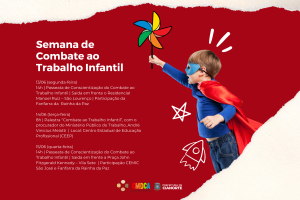 Atendendo à Lei Municipal 5.259/2021, que institui no Calendário Oficial de Eventos, a Prefeitura, por meio das secretarias municipais de Políticas Públicas para Mulheres, Crianças e Adolescentes e de Assistência Social, promove a Semana de Conscientização do Combate ao Trabalho Infantil, de 13 a 15 de junho. Com uma programação especial, a ação conta com palestras, passeatas e apresentações, e tem por objetivo de levar à população informações essenciais para erradicar esse ofício ilegal.