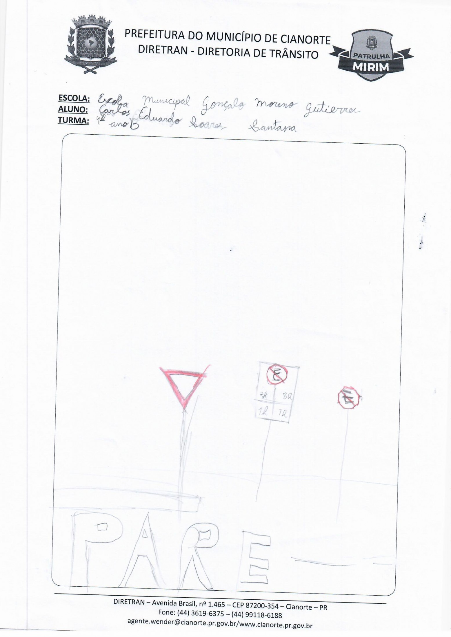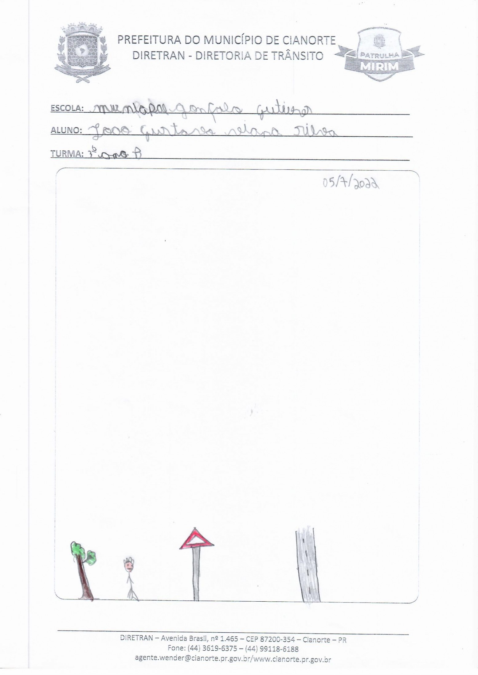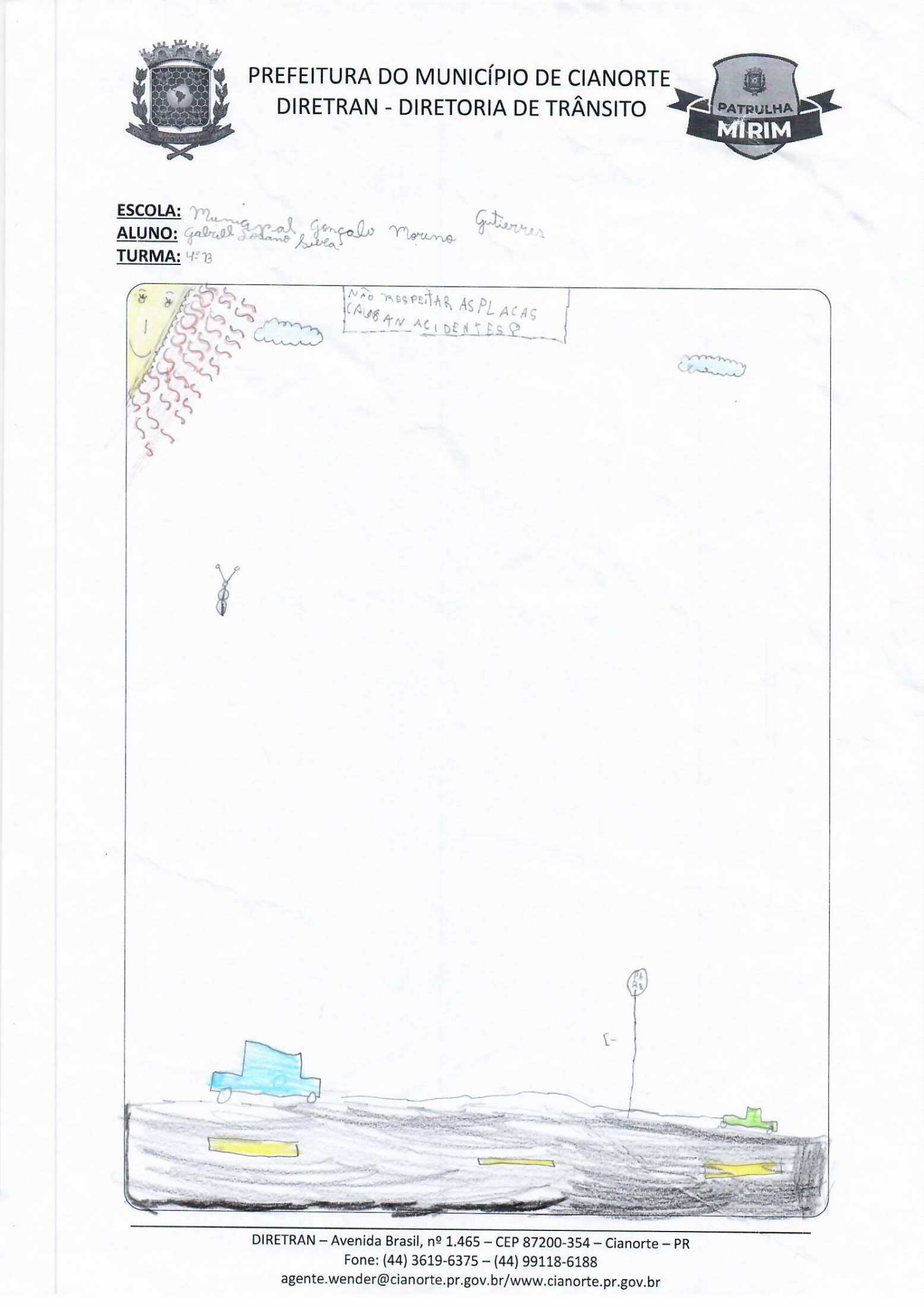 Na última terça-feira (05), a equipe esteve na Escola Municipal Gonçalo Moreno Gutierres. No 3º ano, os alunos realizaram uma prática em que, acompanhados dos agentes, conheceram a sinalização de trânsito próxima à escola. Já no 4º ano, os estudantes entregaram as atividades da última visita e debateram questões. Ao final, todos tiveram a oportunidade de ilustrar o tema, marcando a conclusão do primeiro semestre.