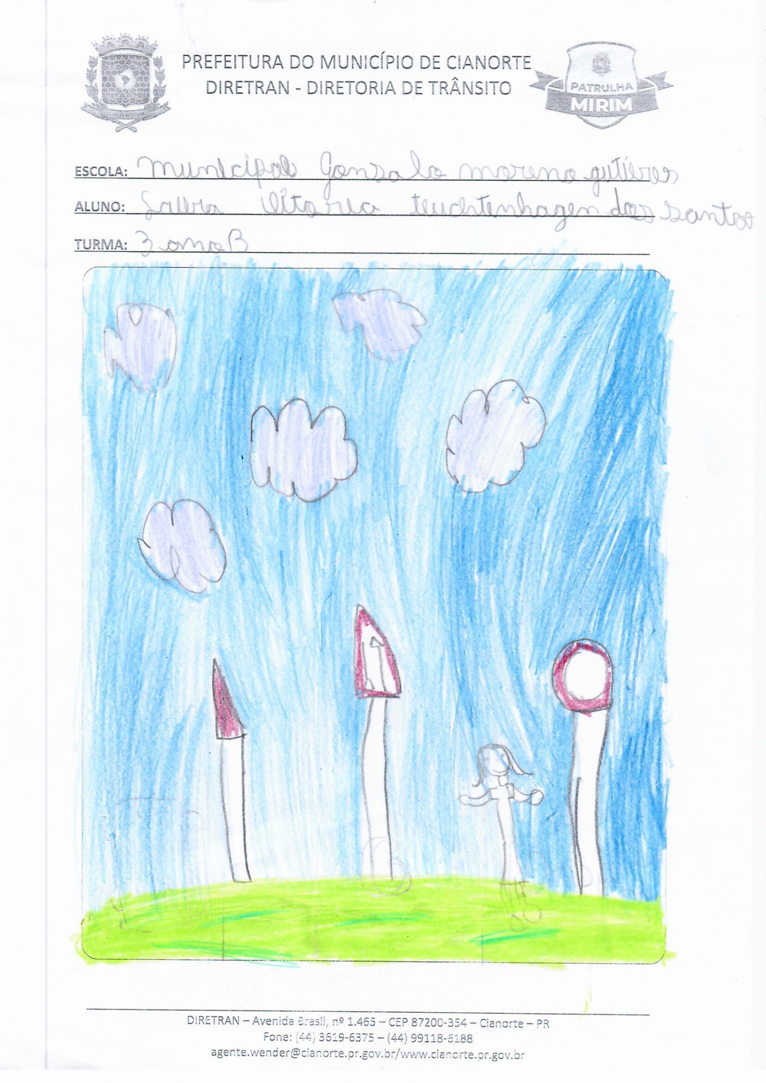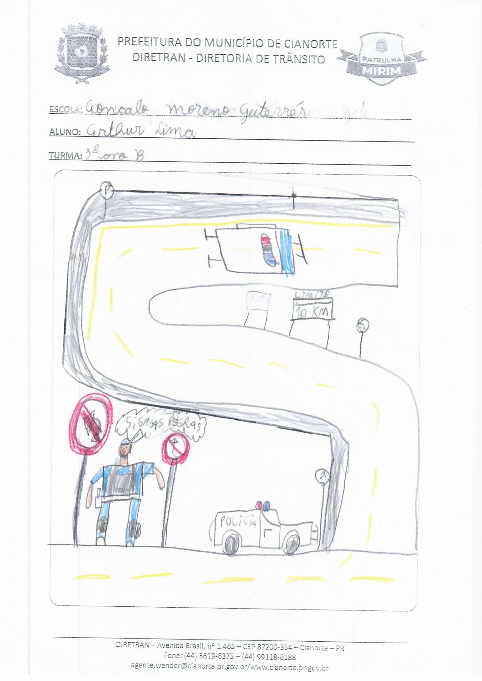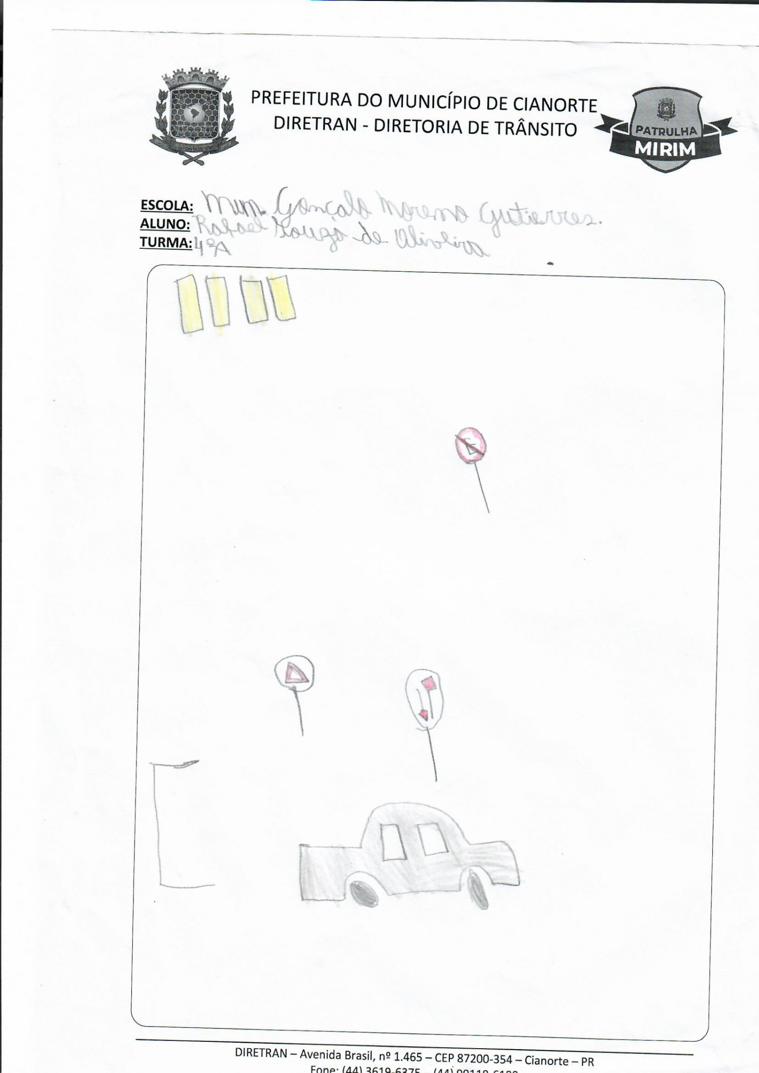 Na última terça-feira (05), a equipe esteve na Escola Municipal Gonçalo Moreno Gutierres. No 3º ano, os alunos realizaram uma prática em que, acompanhados dos agentes, conheceram a sinalização de trânsito próxima à escola. Já no 4º ano, os estudantes entregaram as atividades da última visita e debateram questões. Ao final, todos tiveram a oportunidade de ilustrar o tema, marcando a conclusão do primeiro semestre.